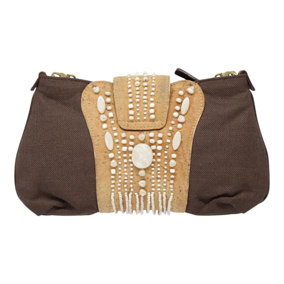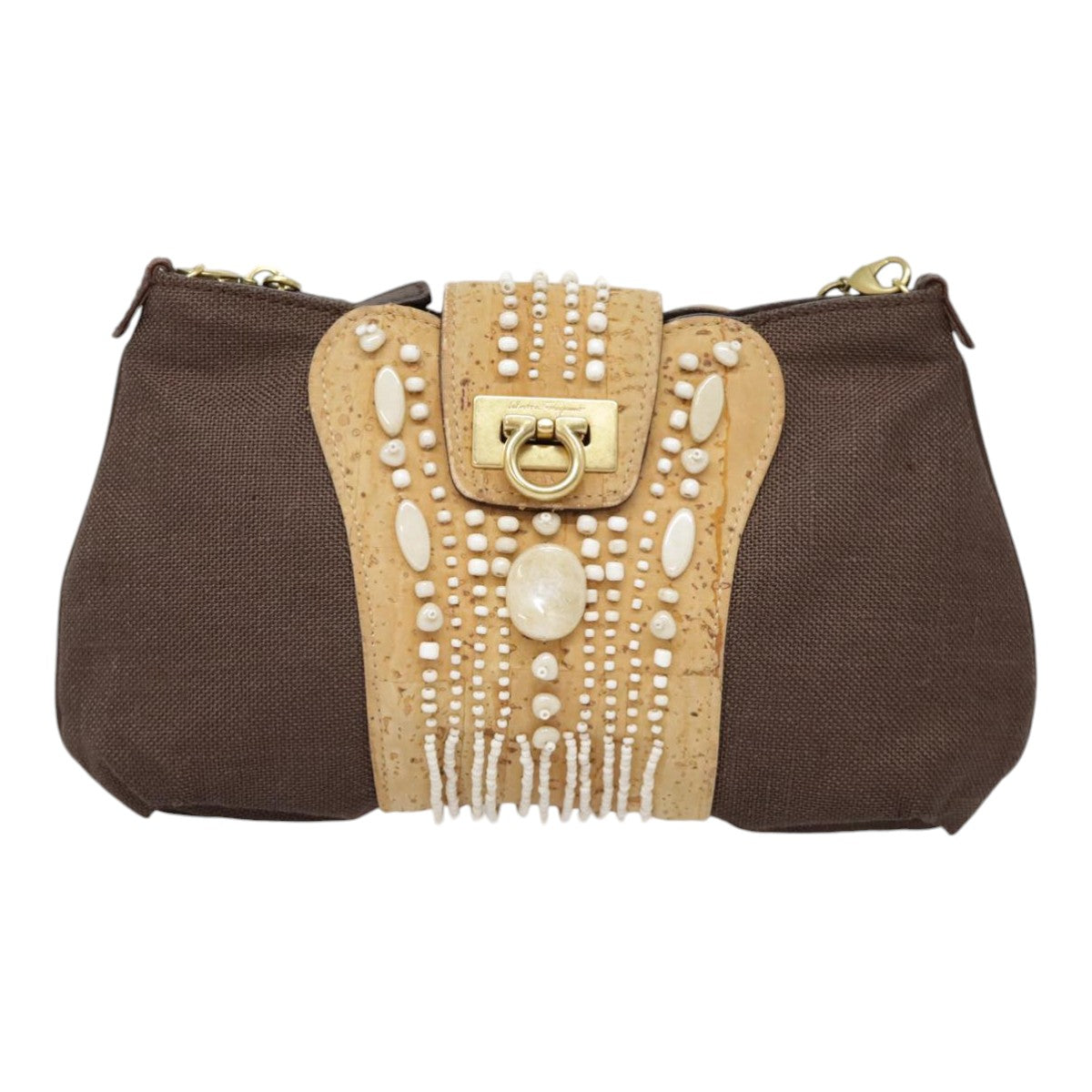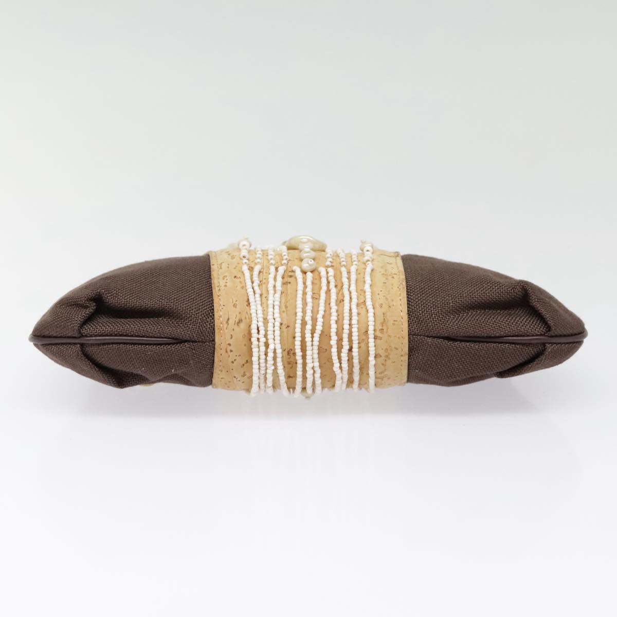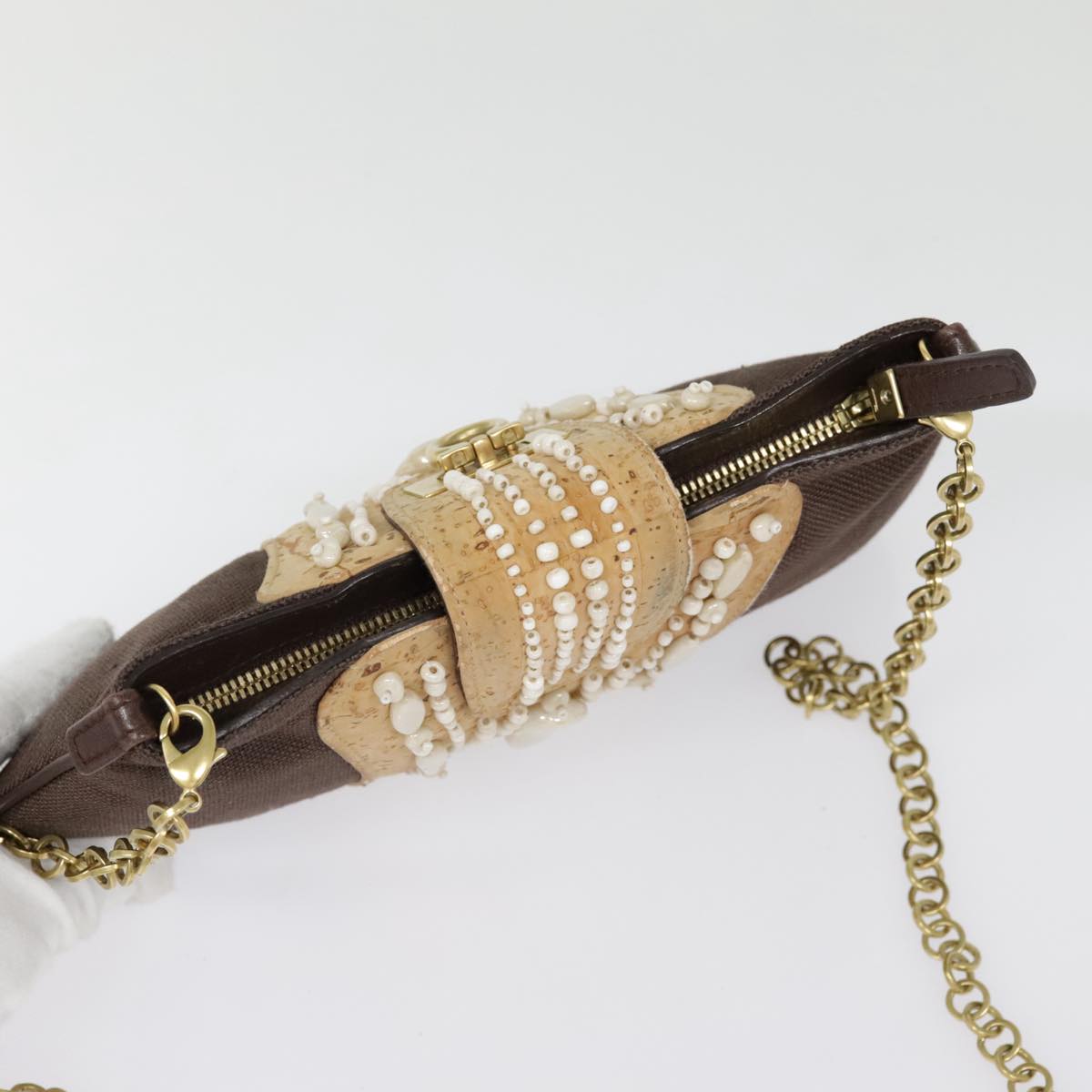 Salvatore Ferragamo Gancini Shoulder Bag Nylon Leather Brown Gold Auth 91386V