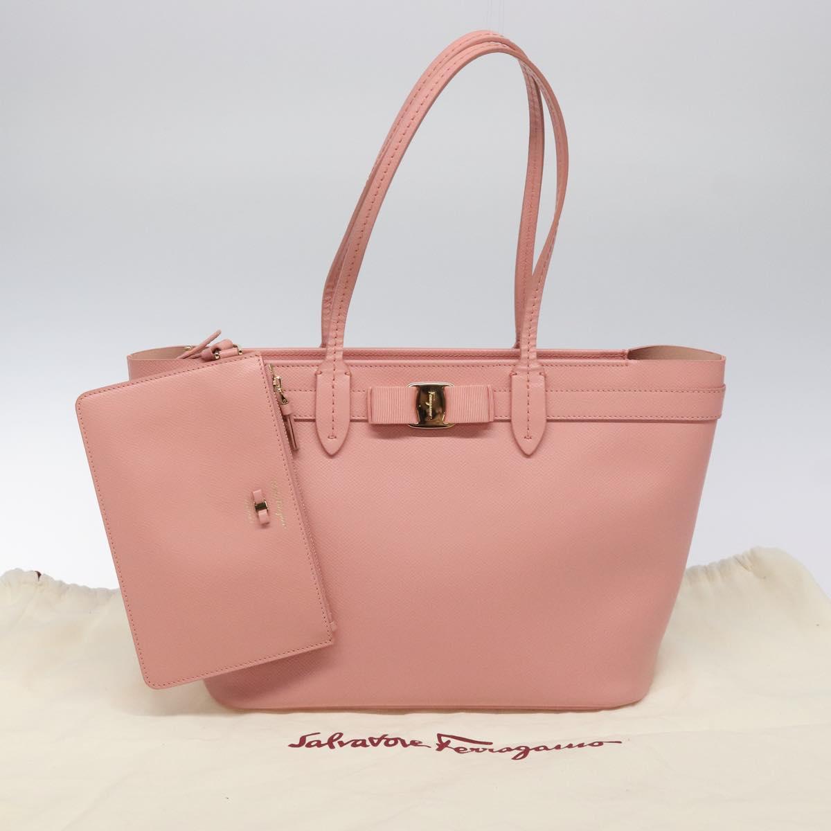 Salvatore Ferragamo Shoulder Bag Leather Pink Gold Auth MX166V