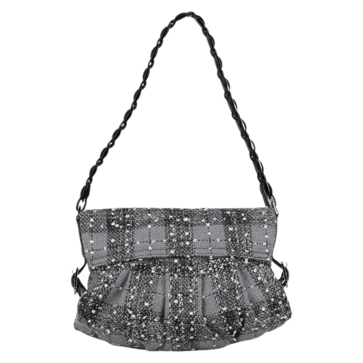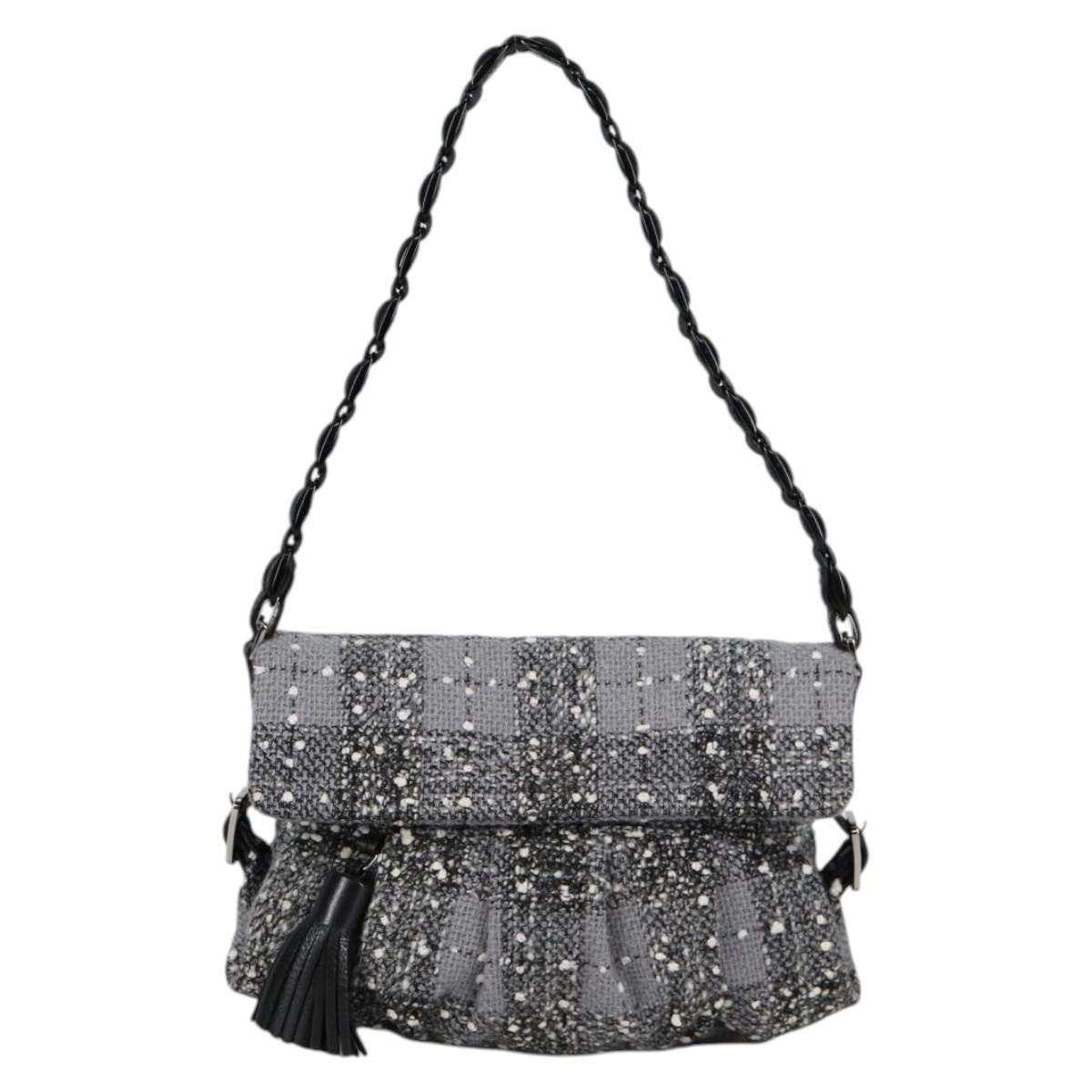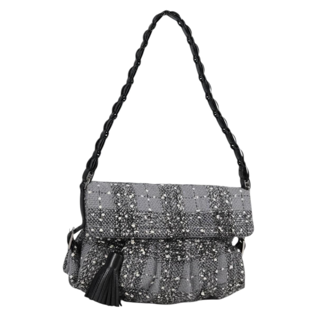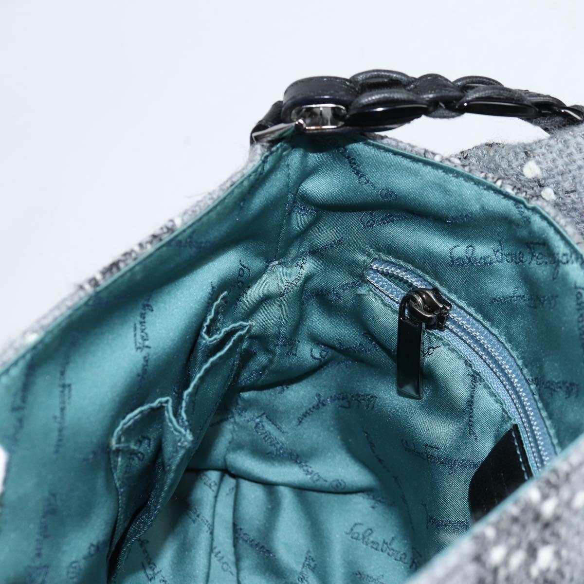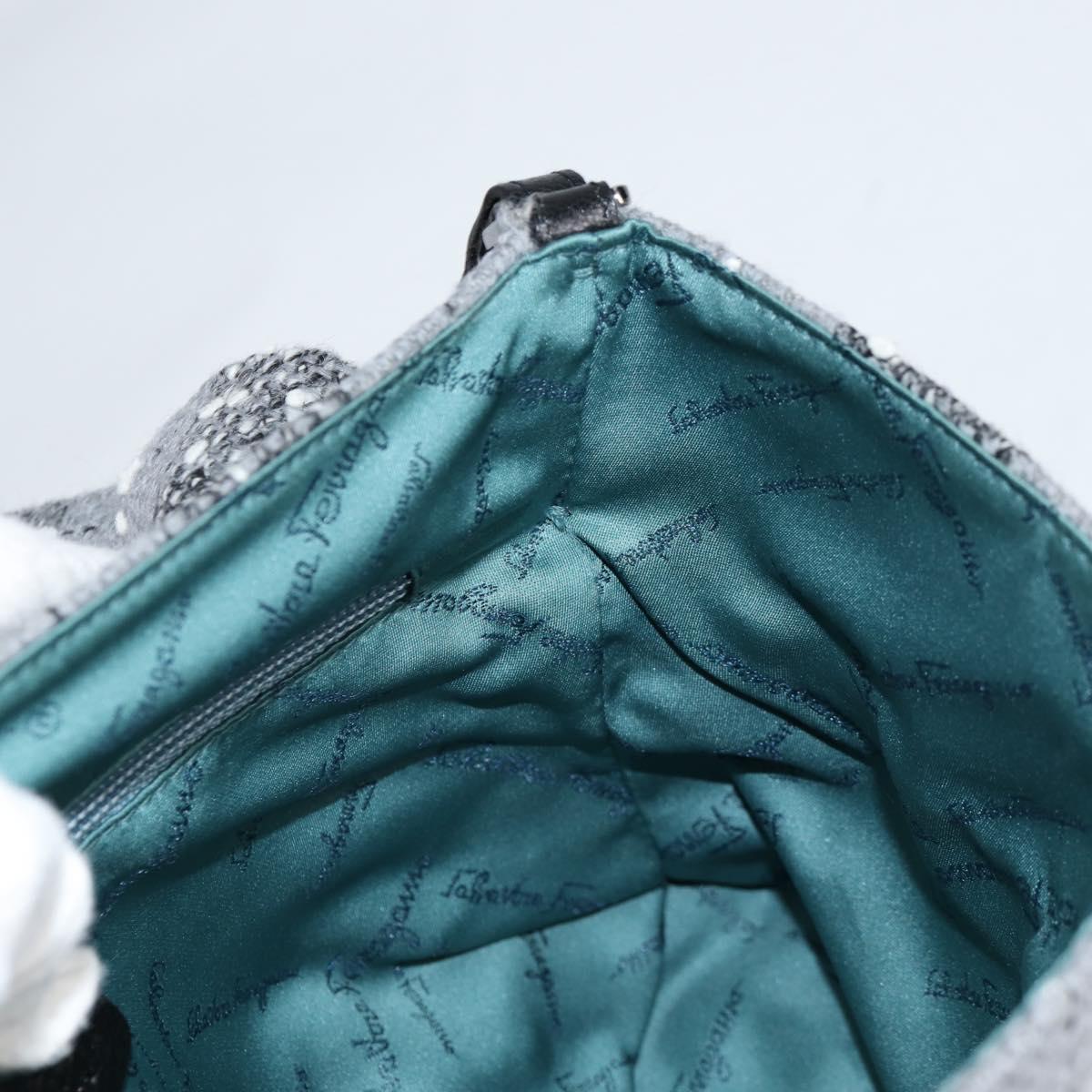 Salvatore Ferragamo Shoulder Bag Wool Gray Silver Auth BA5563V