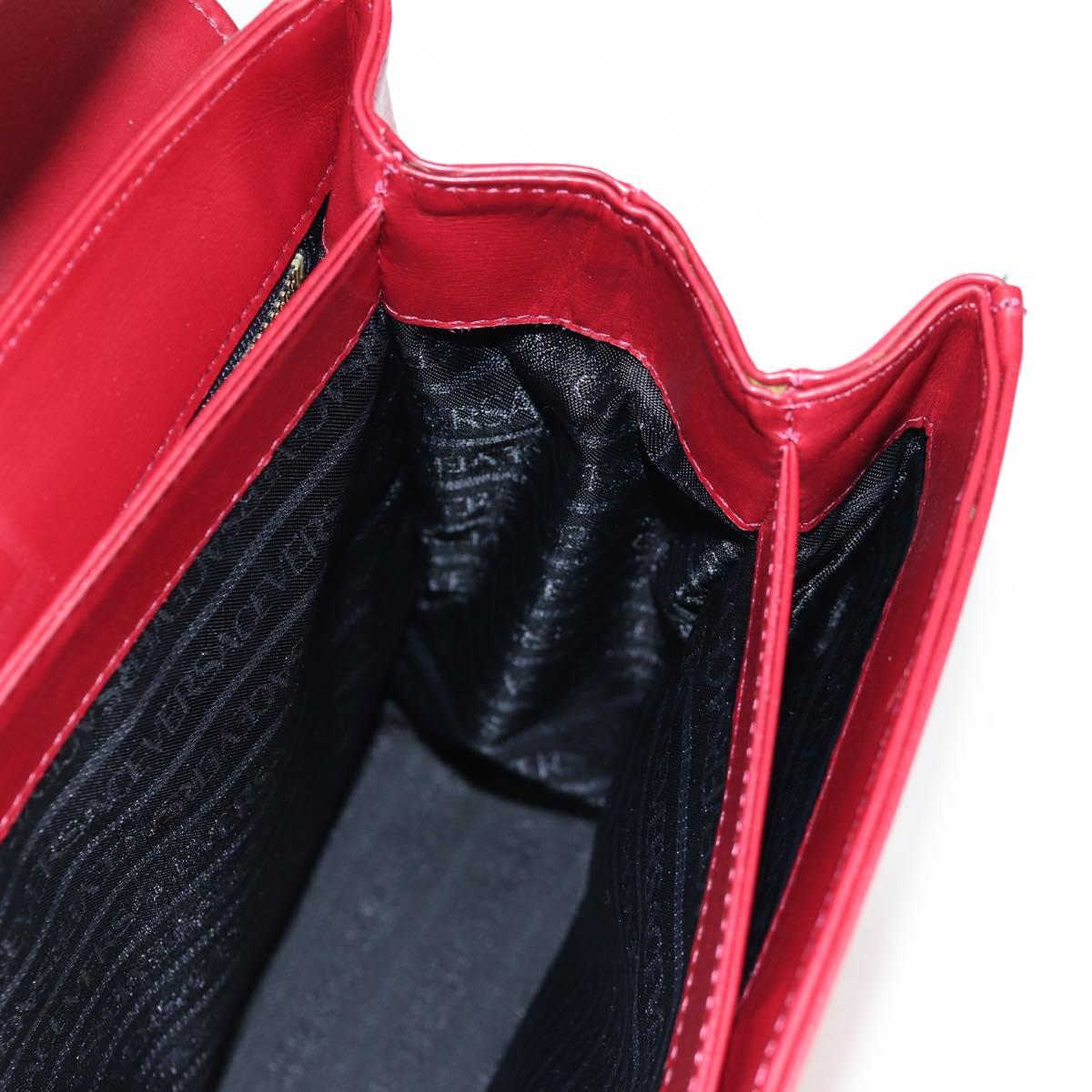 VERSACE Hand Bag Leather Red Gold Auth ac3851V