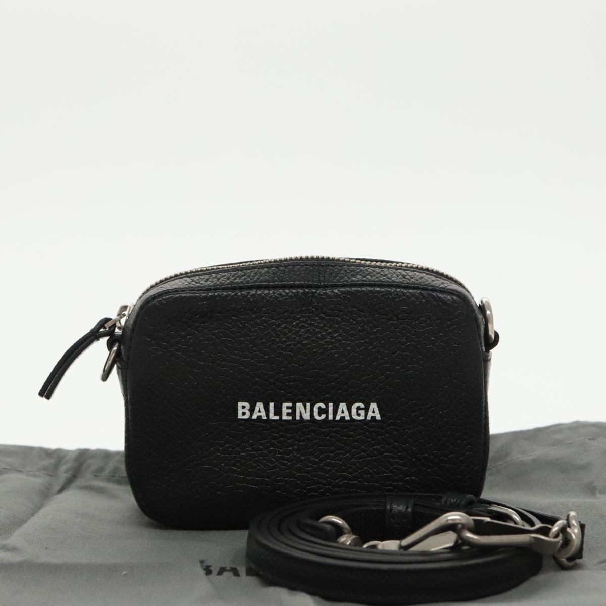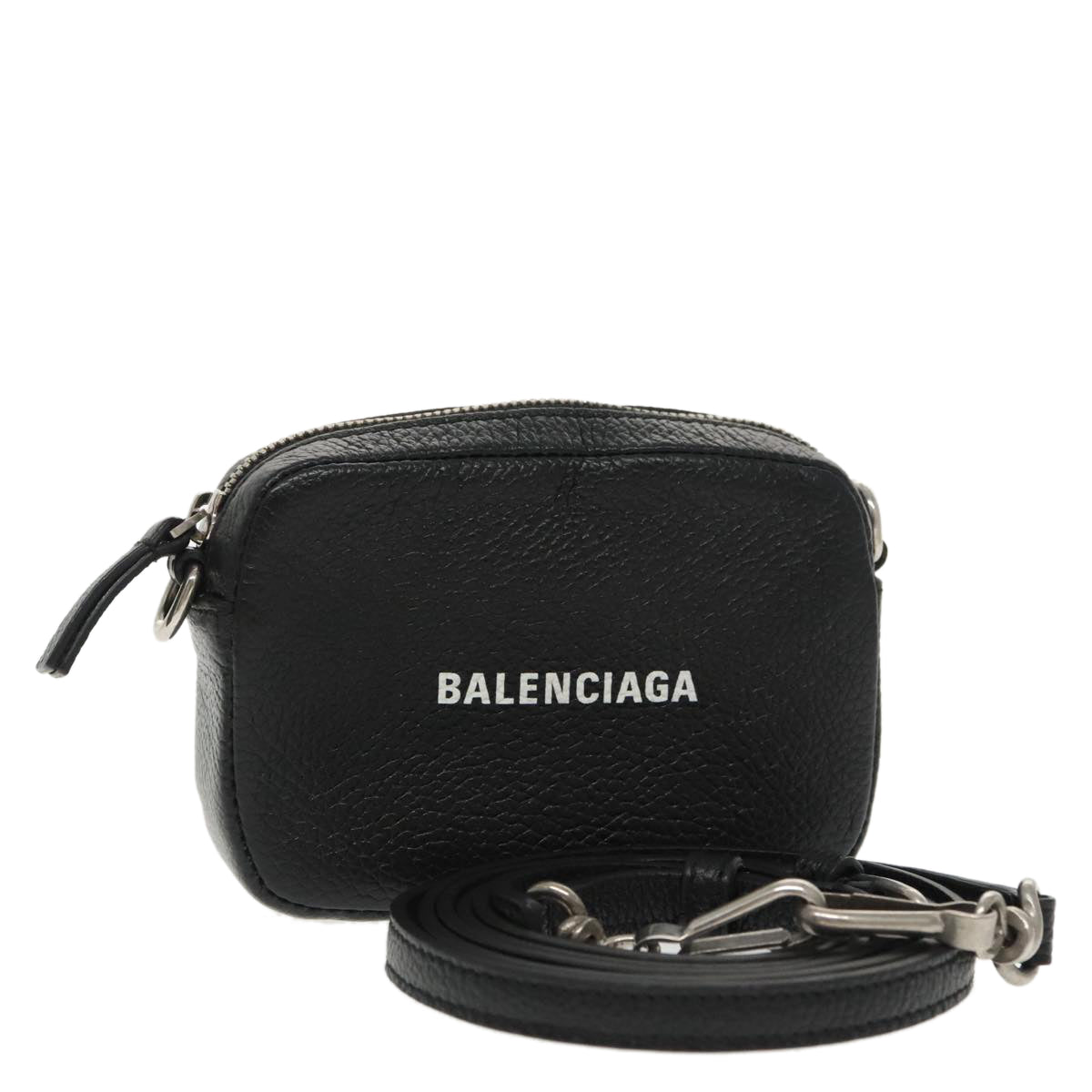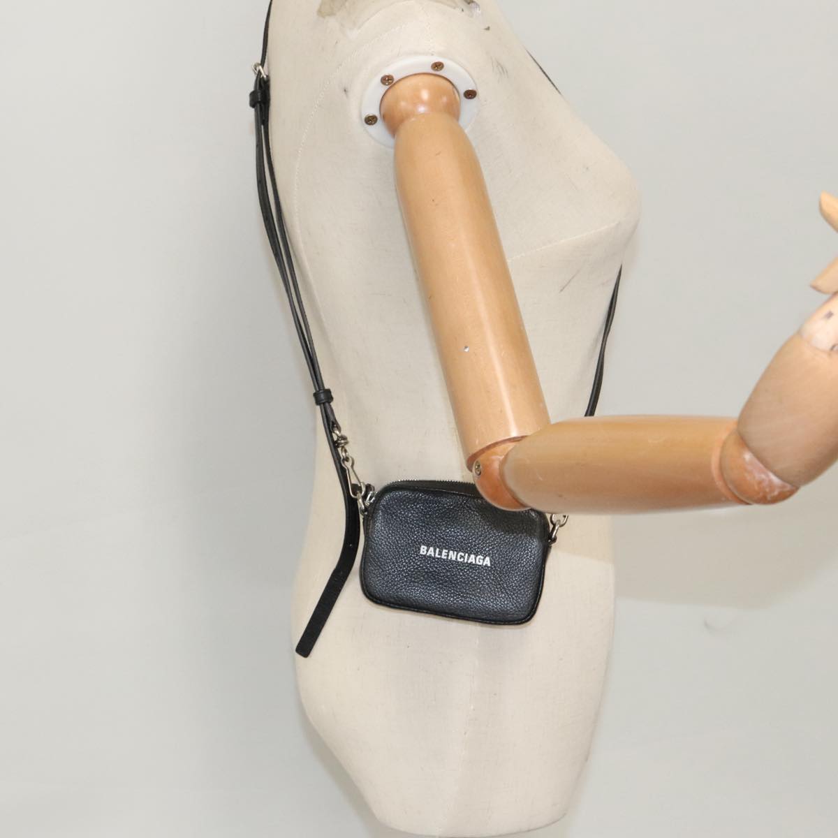 BALENCIAGA Cash Mini Shoulder Bag Leather Black Silver 640539 Auth bs19961V