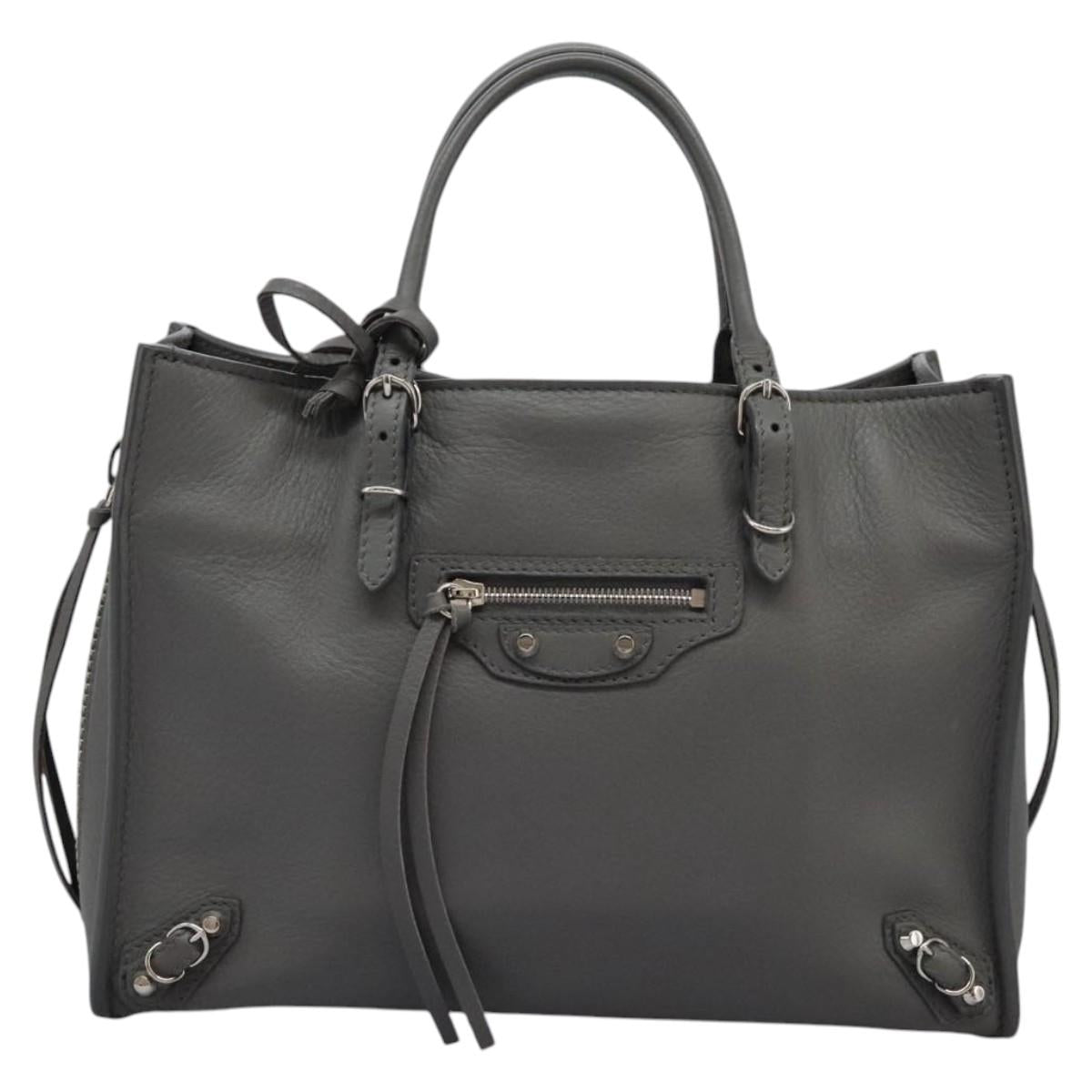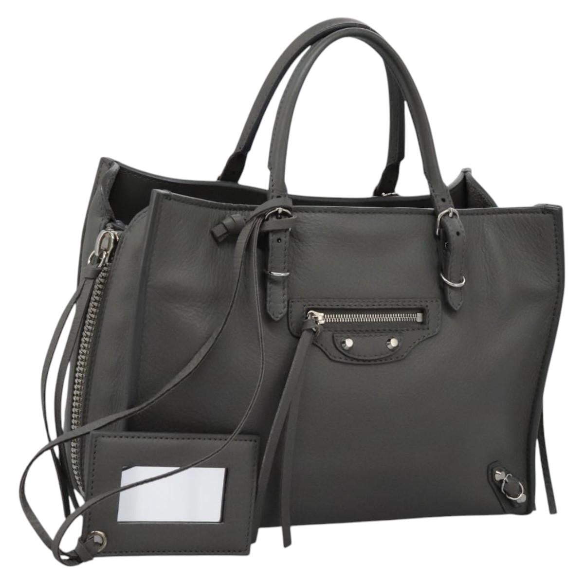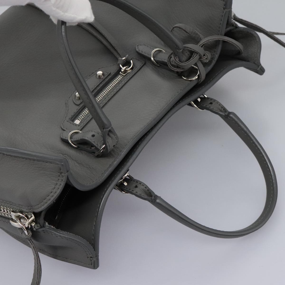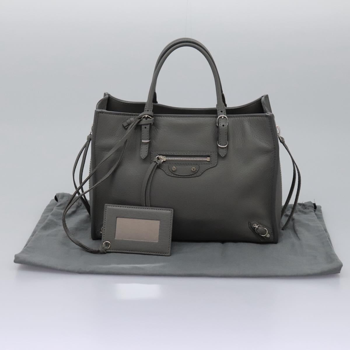 BALENCIAGA Paper Mini Hand Bag Leather Gray 370926 Auth PP323AM