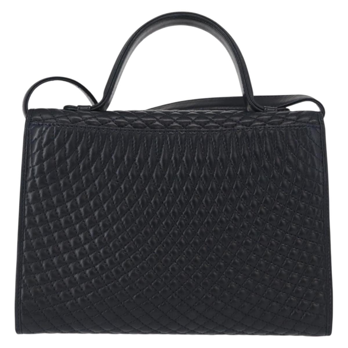 BALLY Hand Bag Leather 2way Navy Gold Auth 162765