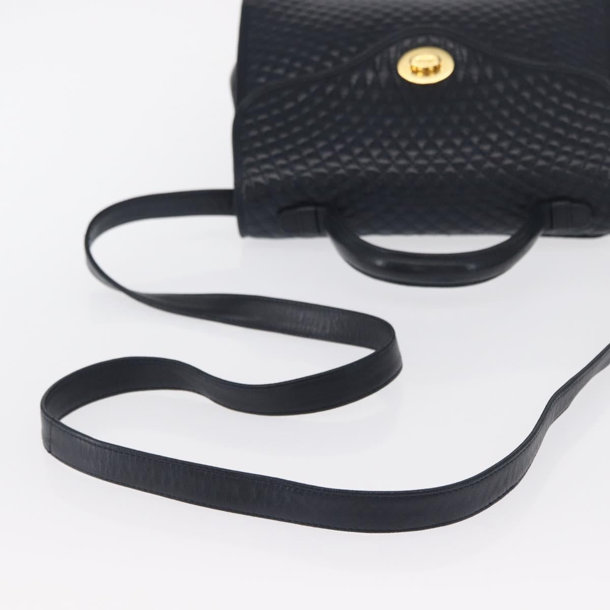 BALLY Shoulder Bag Leather 2way Navy Gold Auth 156489