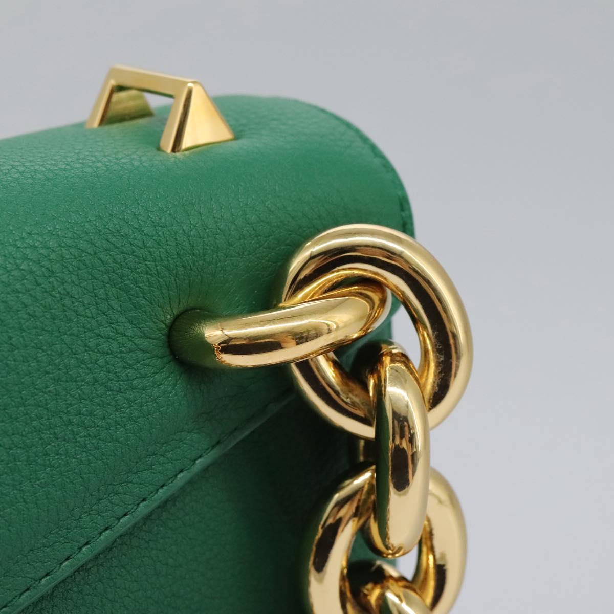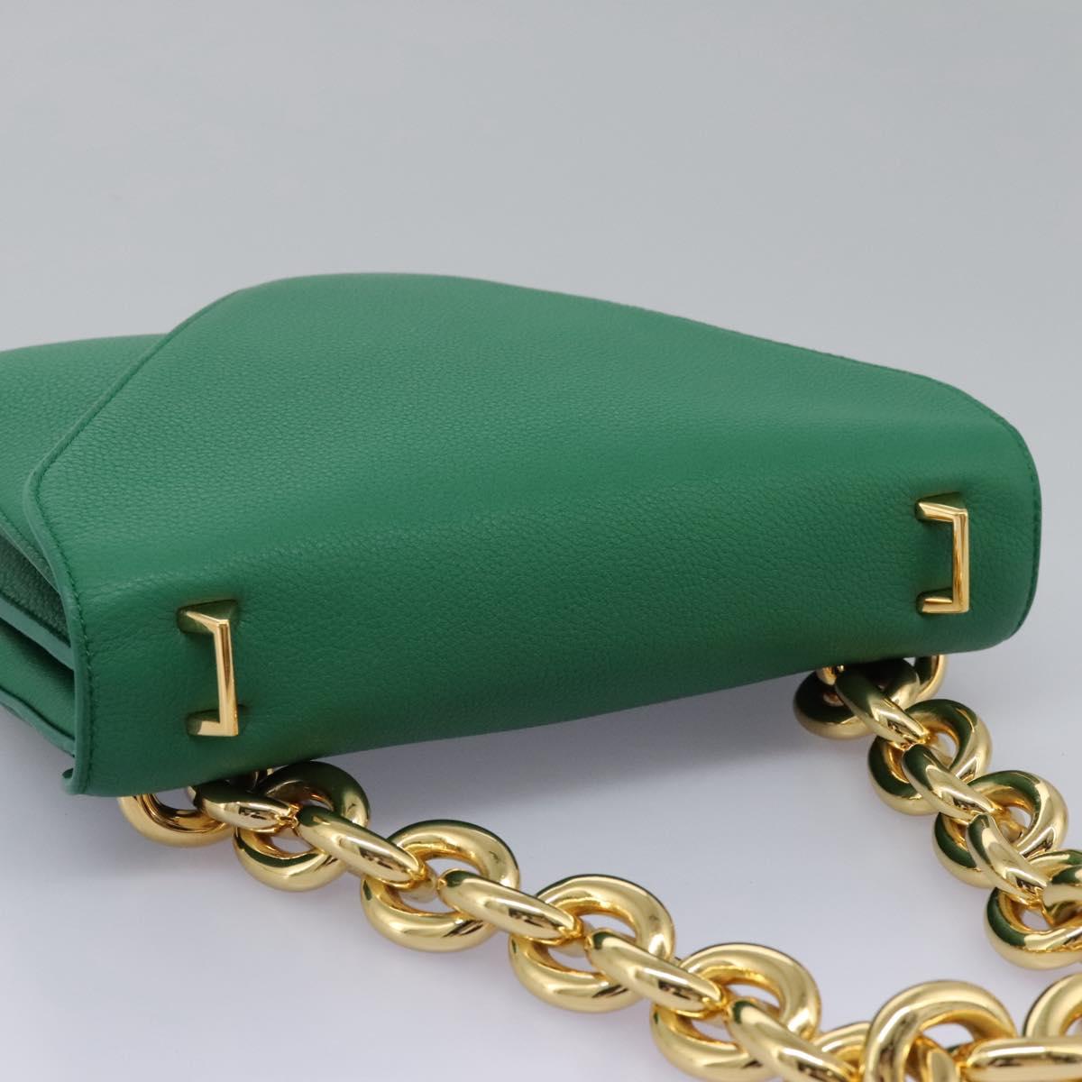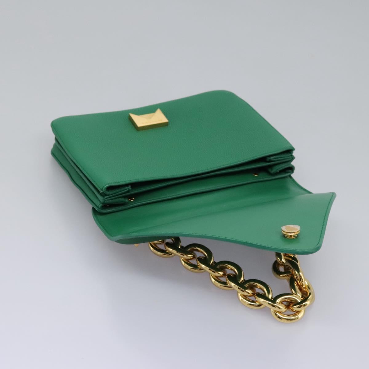 BOTTEGA VENETA Chain Hand Bag Leather 2way Gold Green Auth PP350AV