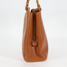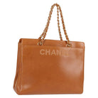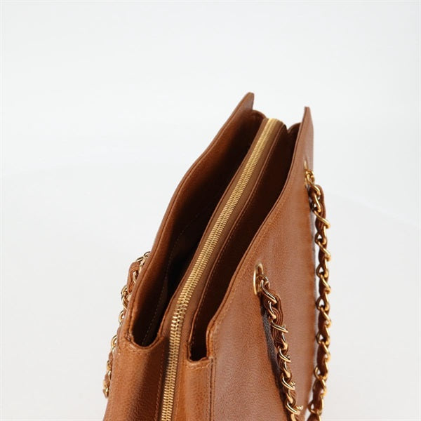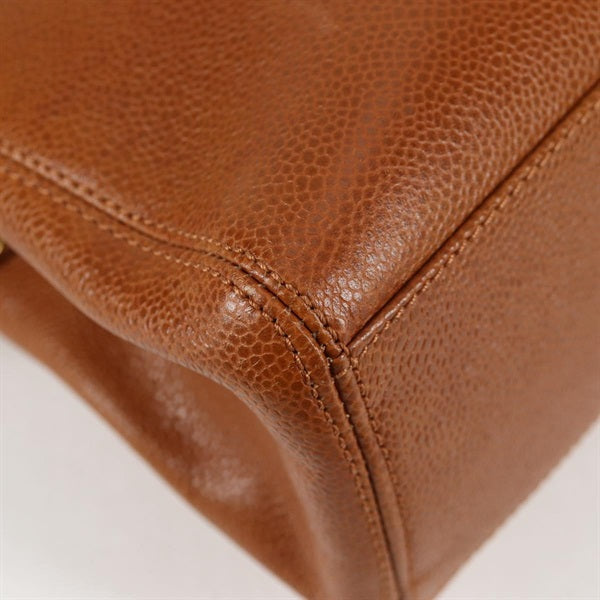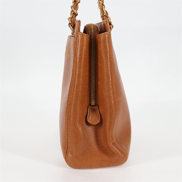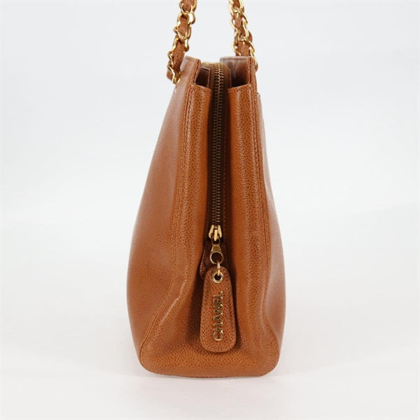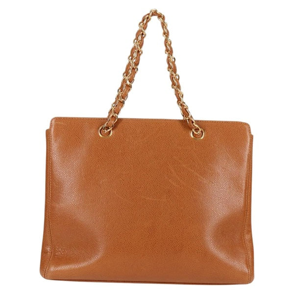 CHANEL Logo Chain Tote 1998 Hand Bag Camel Gold Caviar Skin Auth