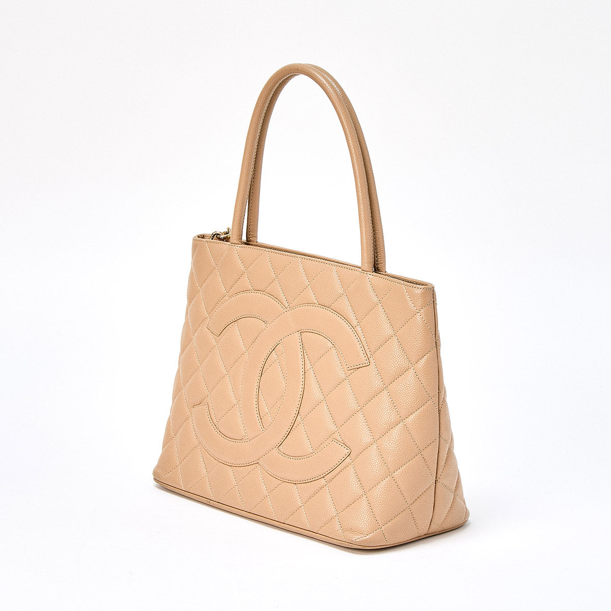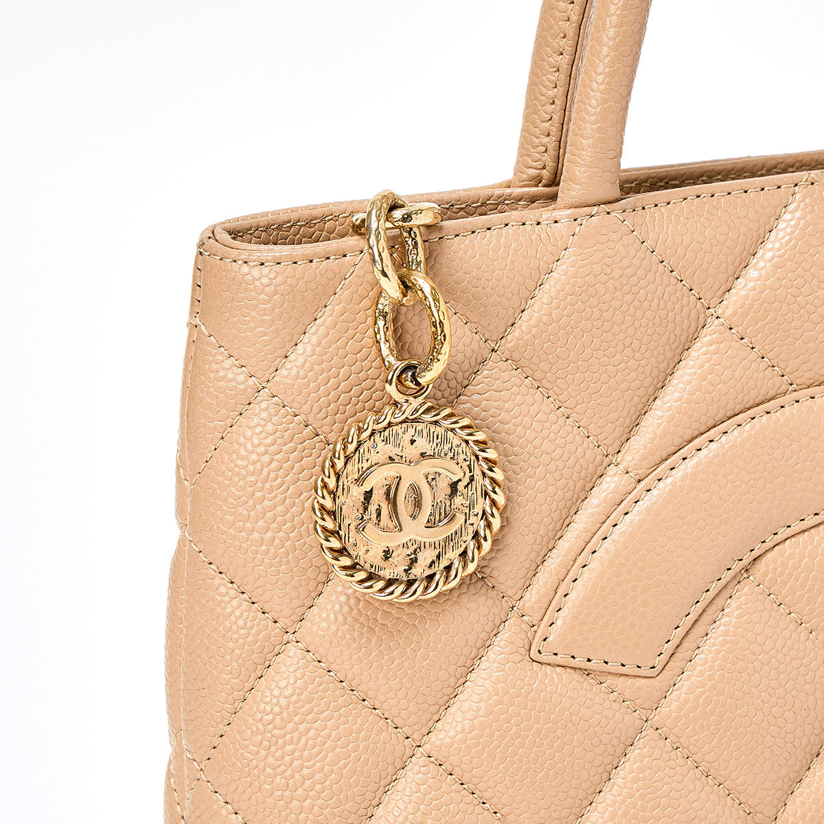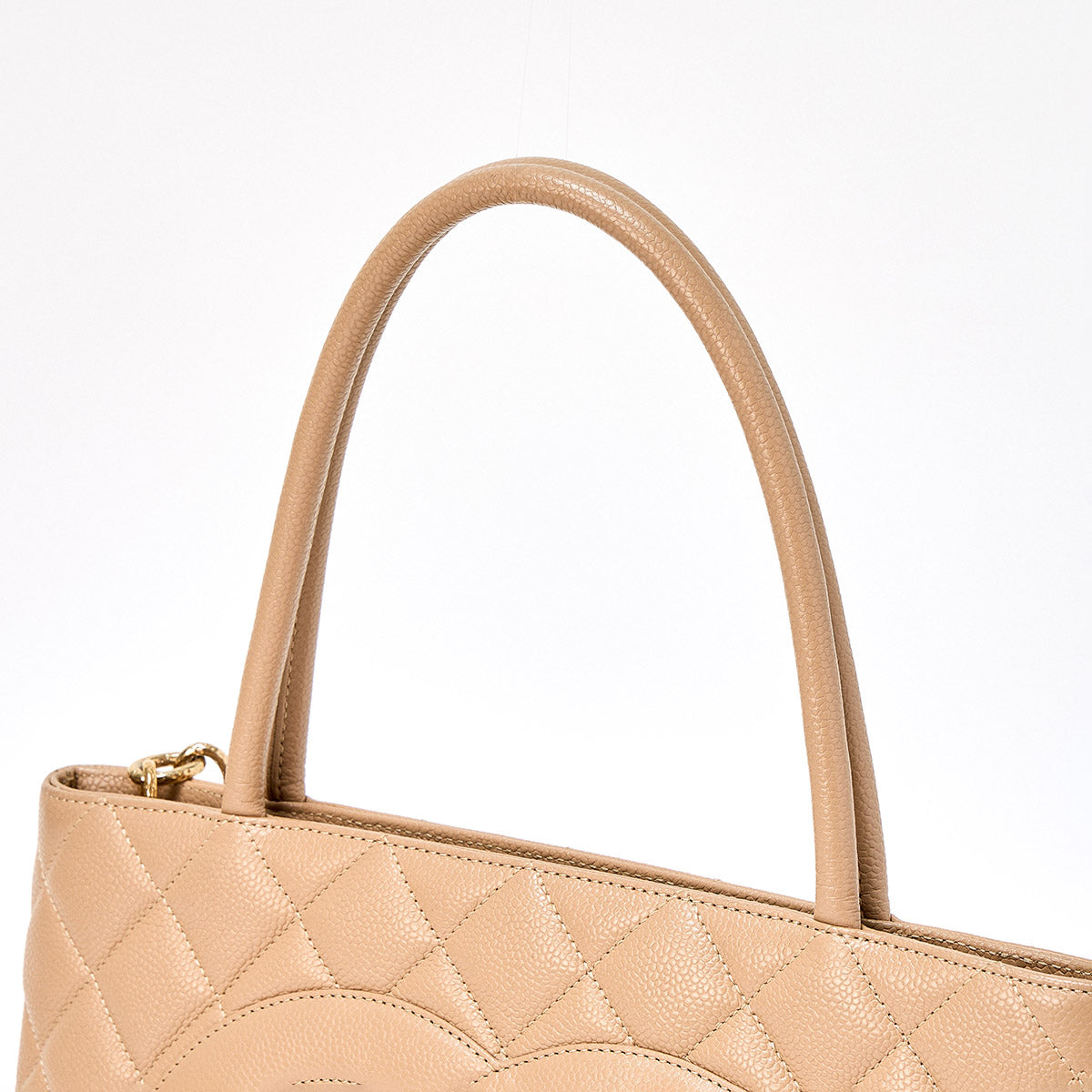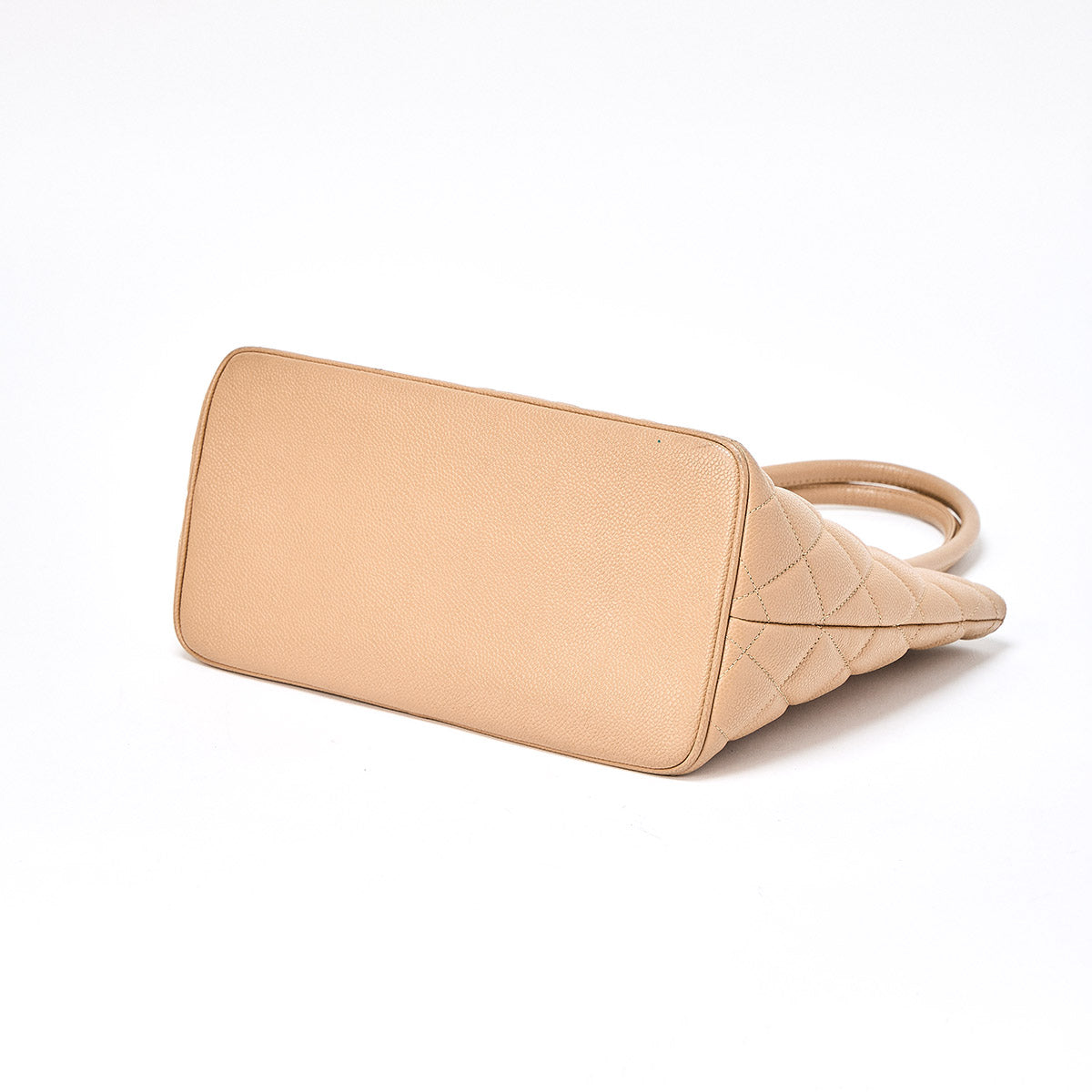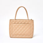 CHANEL Matelasse Reissue 2002 Tote Bag Beige Gold Caviar Skin Auth