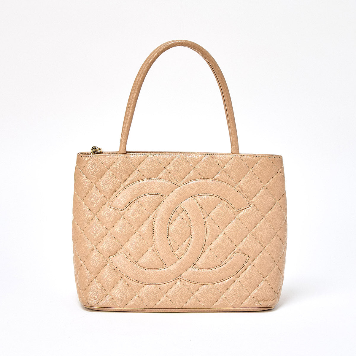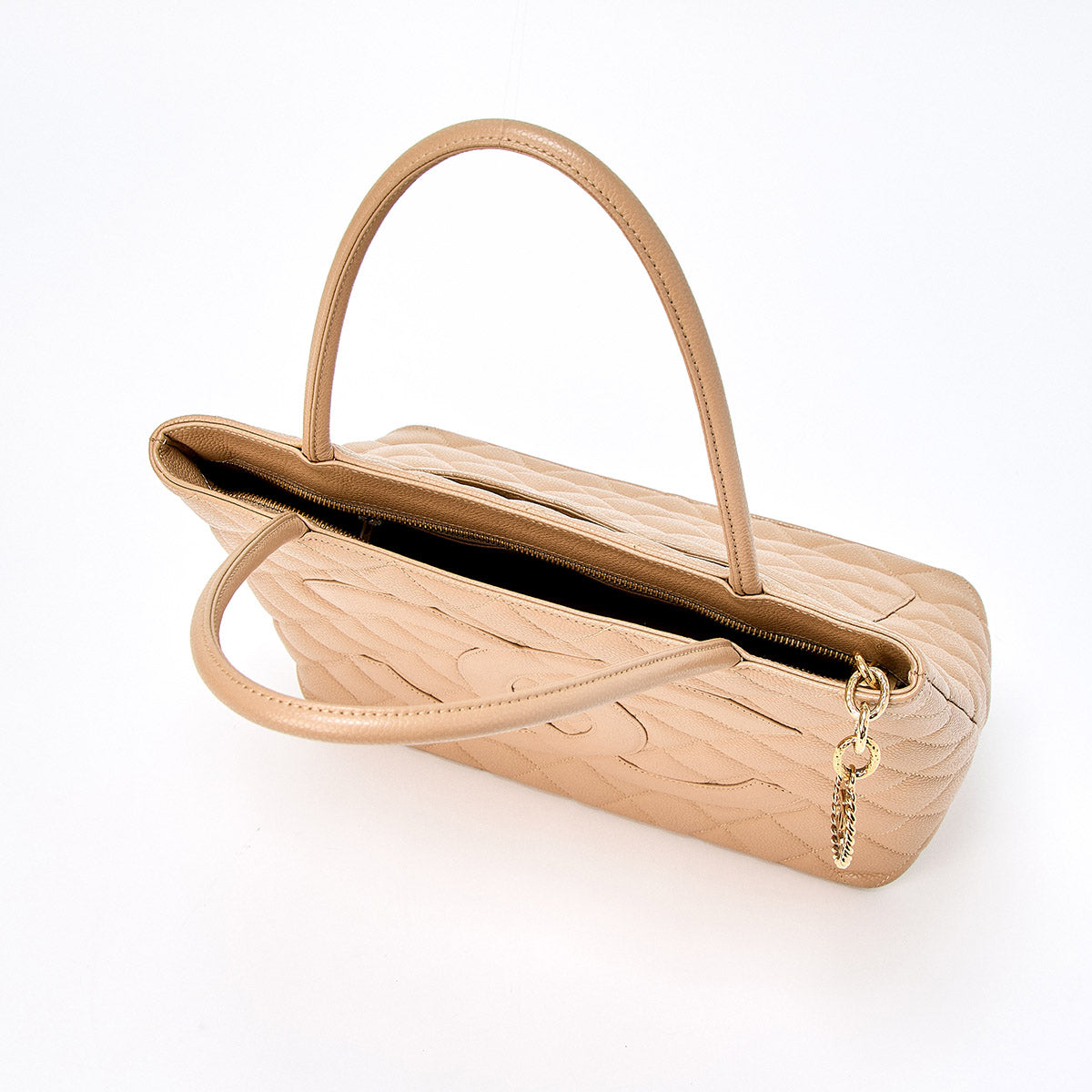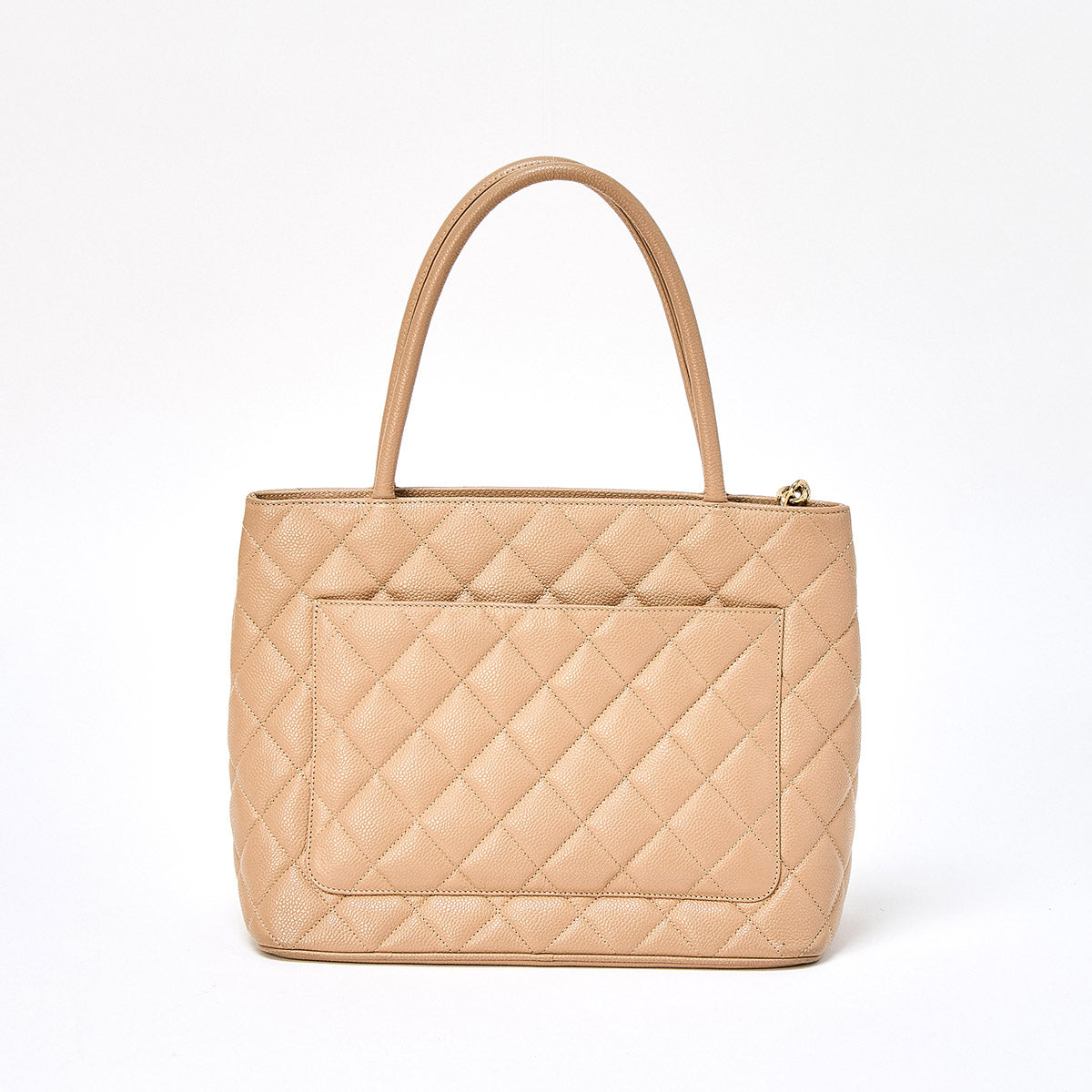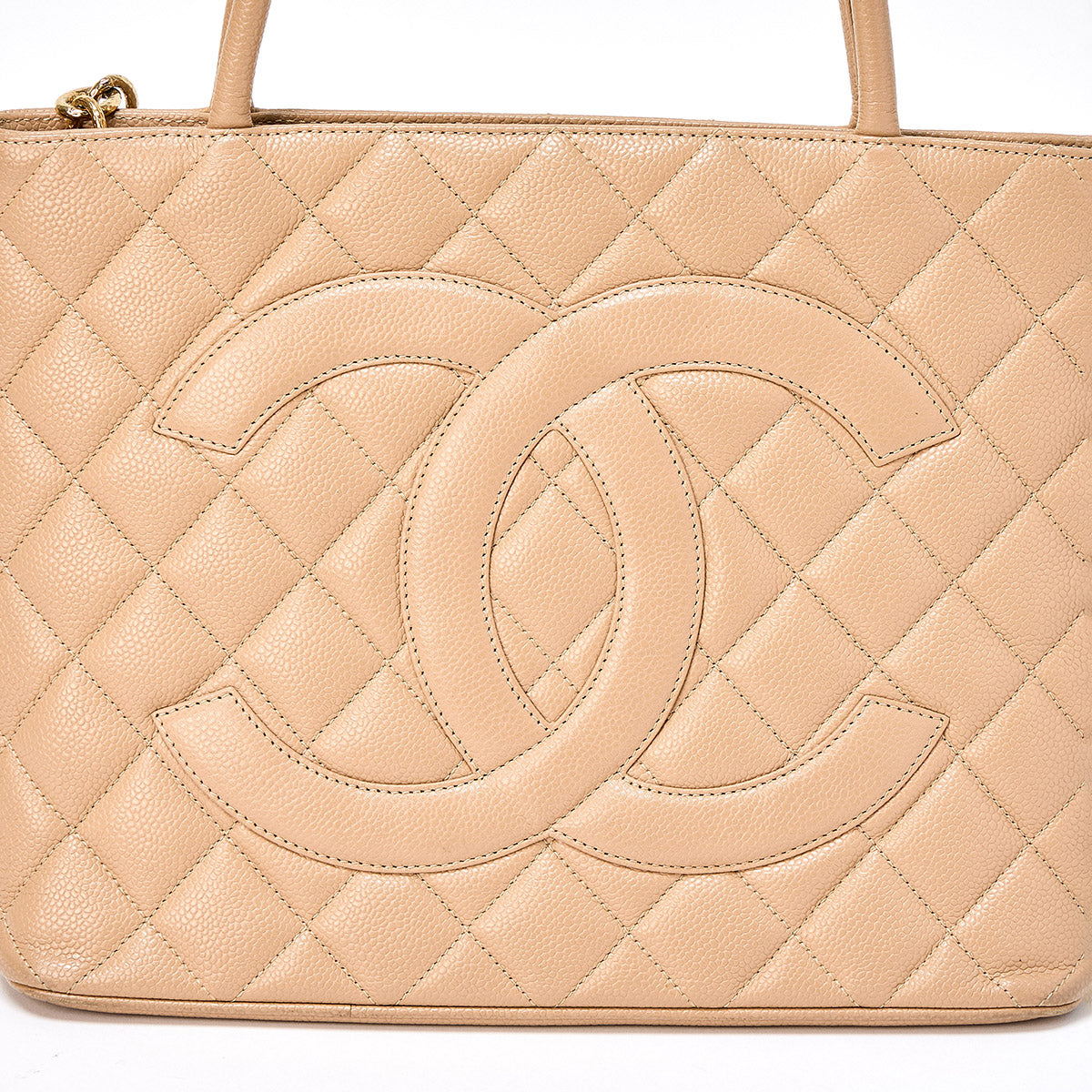 CHANEL Matelasse Reissue 2002 Tote Bag Beige Gold Caviar Skin Auth