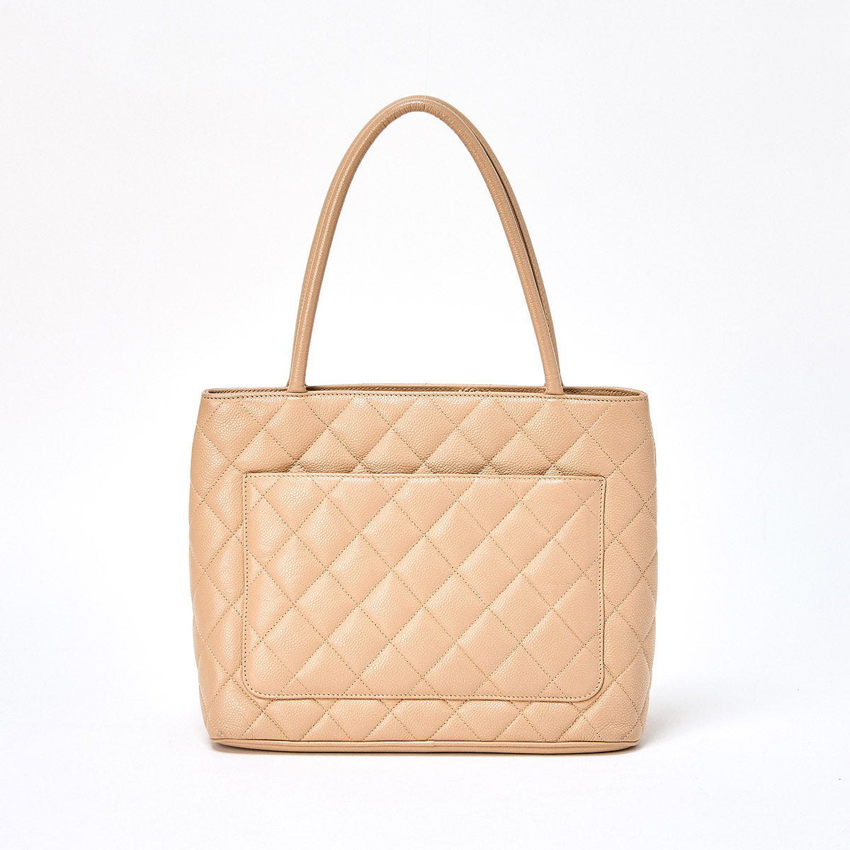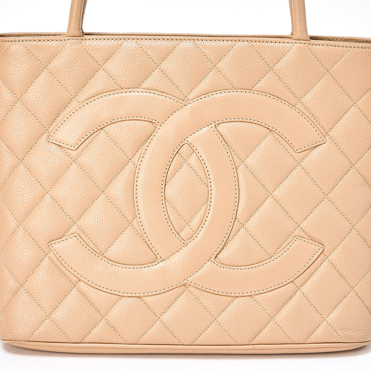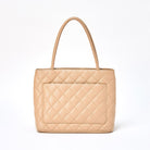 CHANEL Matelasse Reissue 2005 Tote Bag Beige Gold Caviar Skin Auth