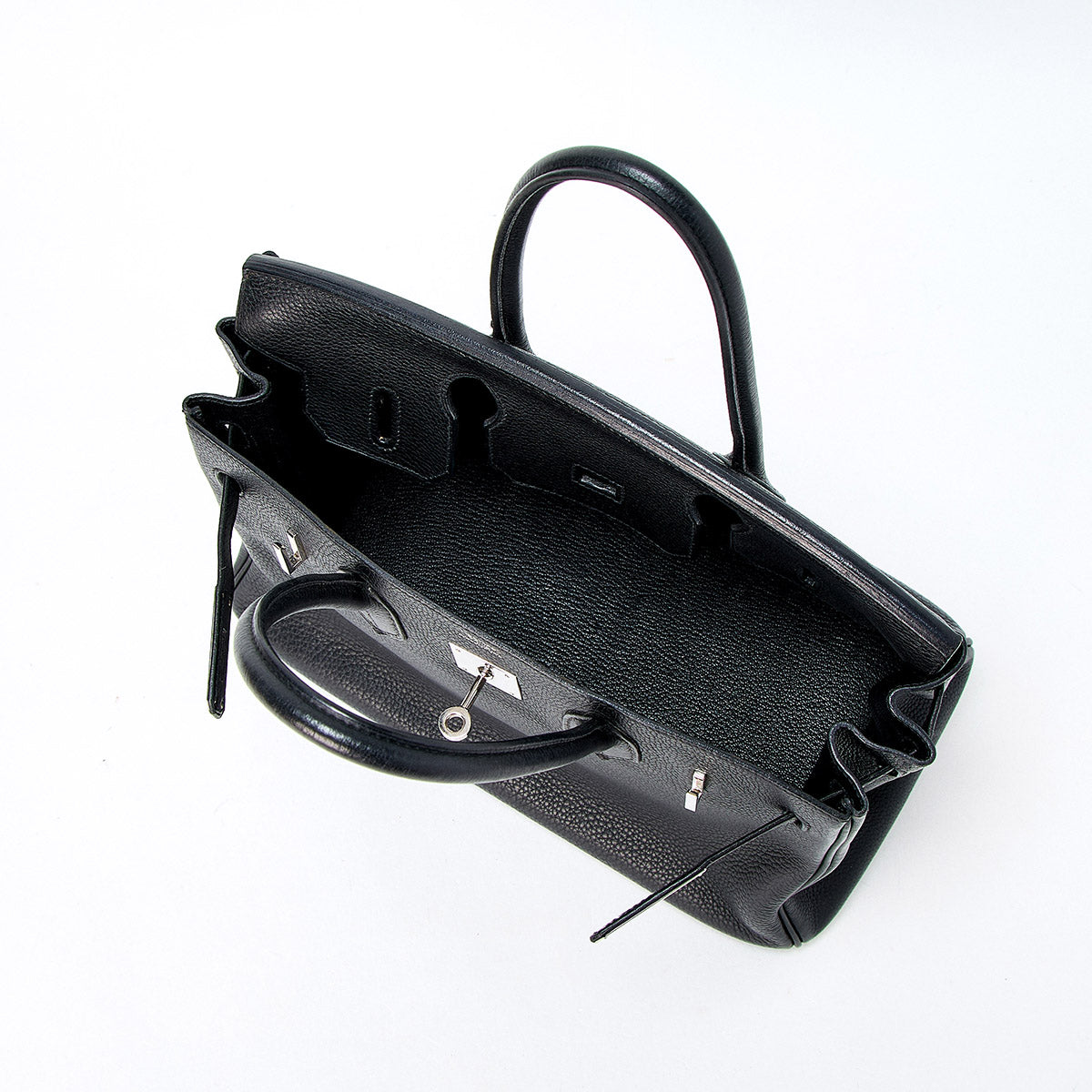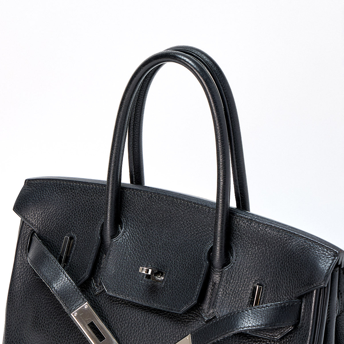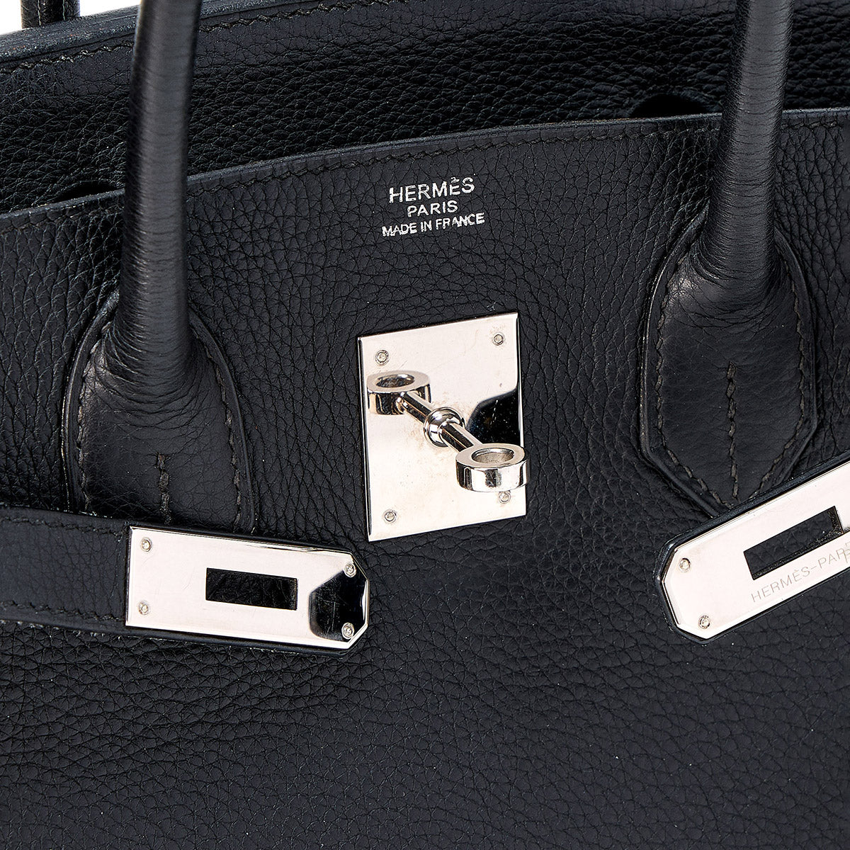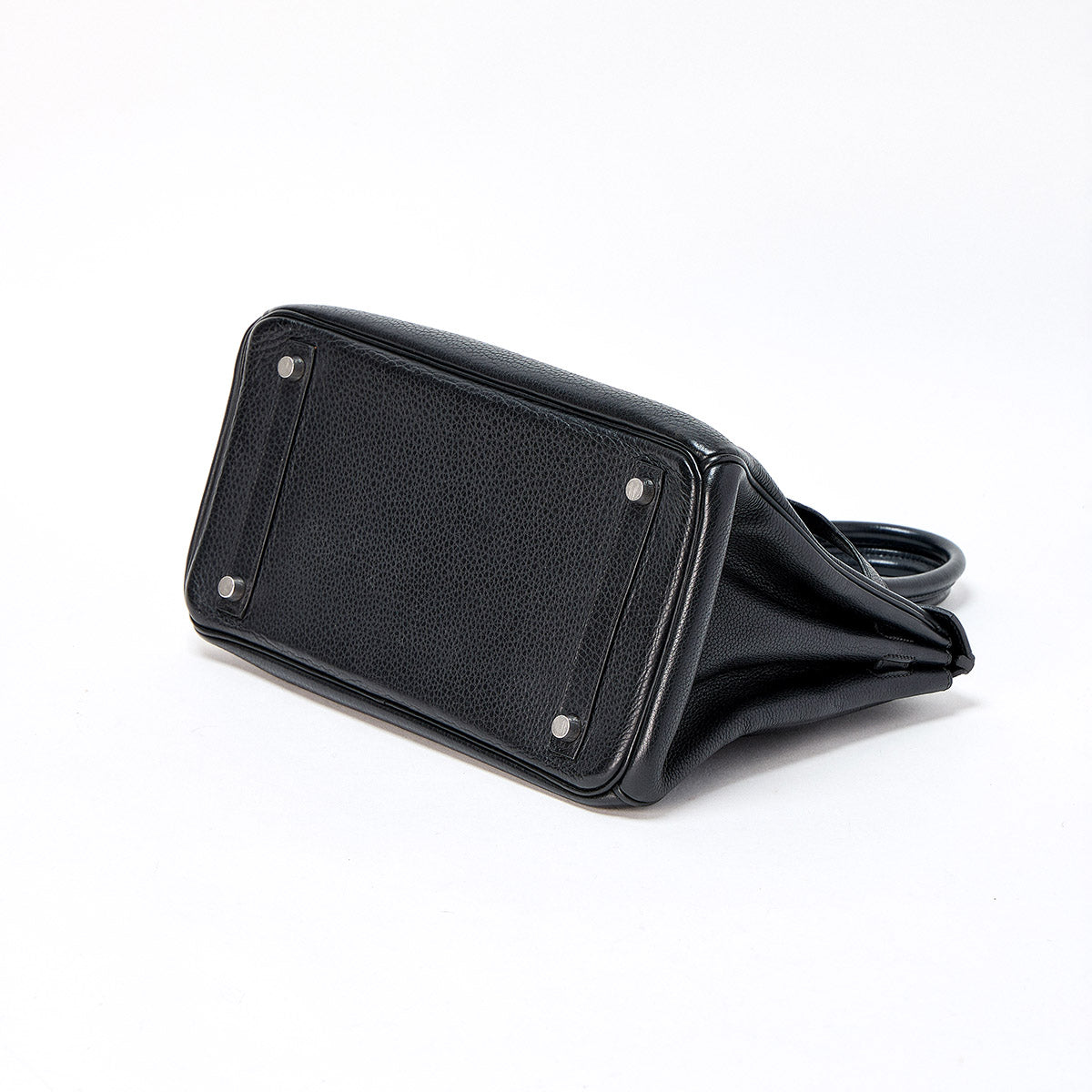 HERMES Birkin 30 2007 □K Hand Bag Noir Silver Taurillon Clemence Auth