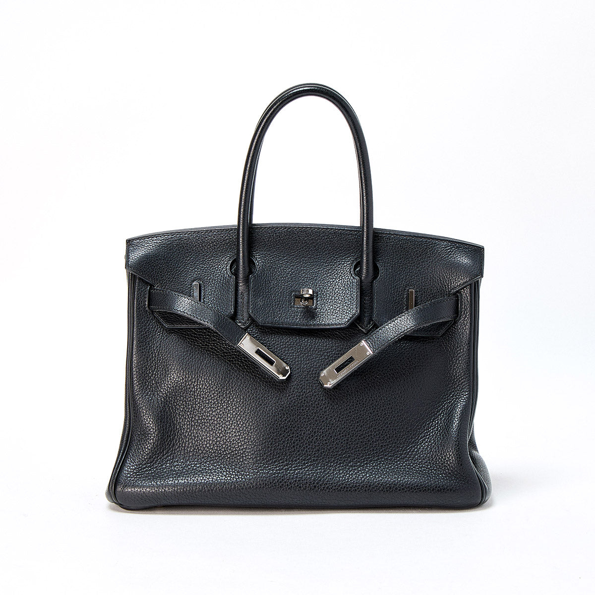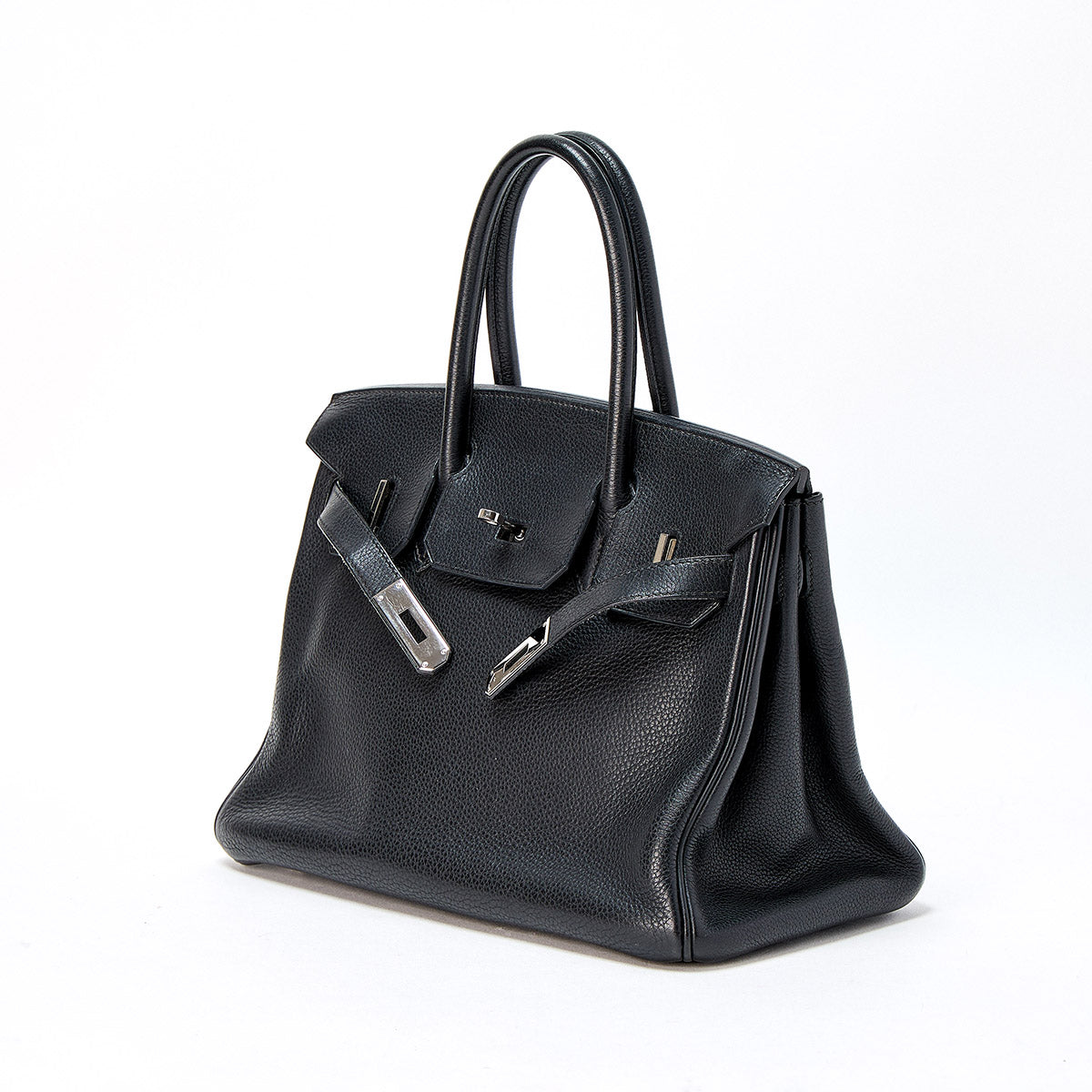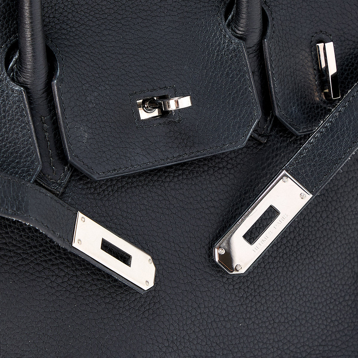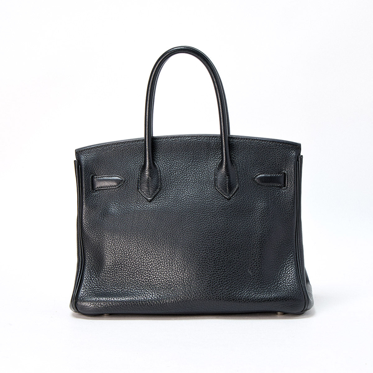 HERMES Birkin 30 2007 □K Hand Bag Noir Silver Taurillon Clemence Auth