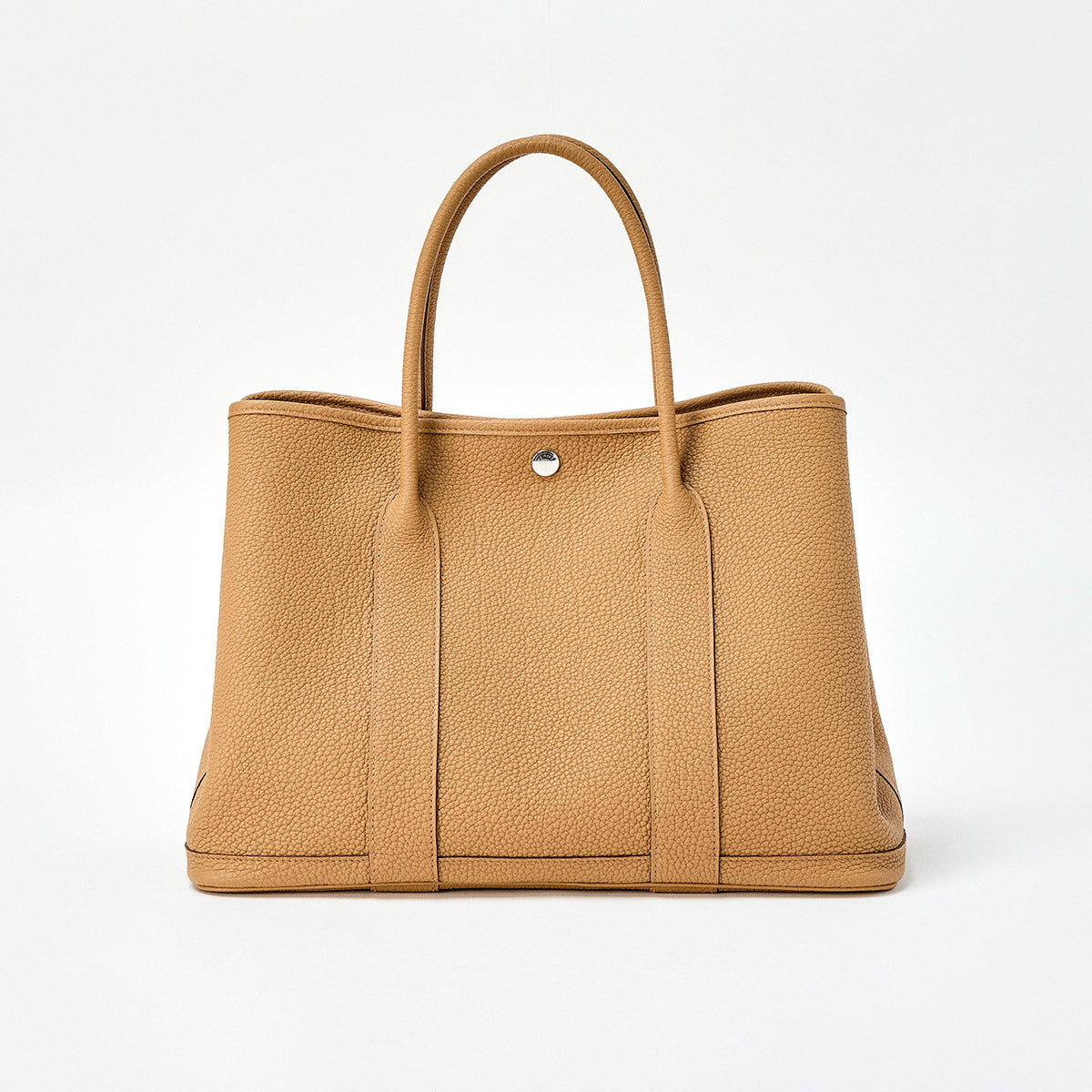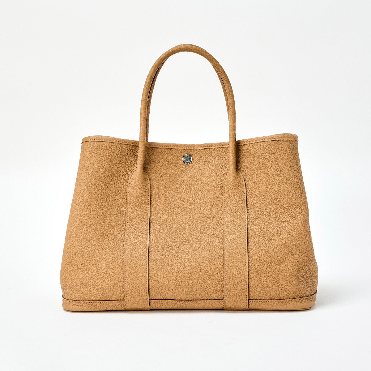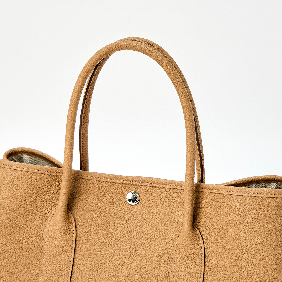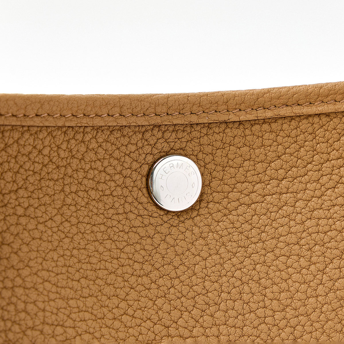 HERMES Garden Party PM 2022 U Tote Bag Biscuit Silver Negonda Auth