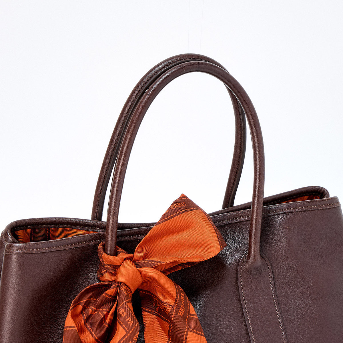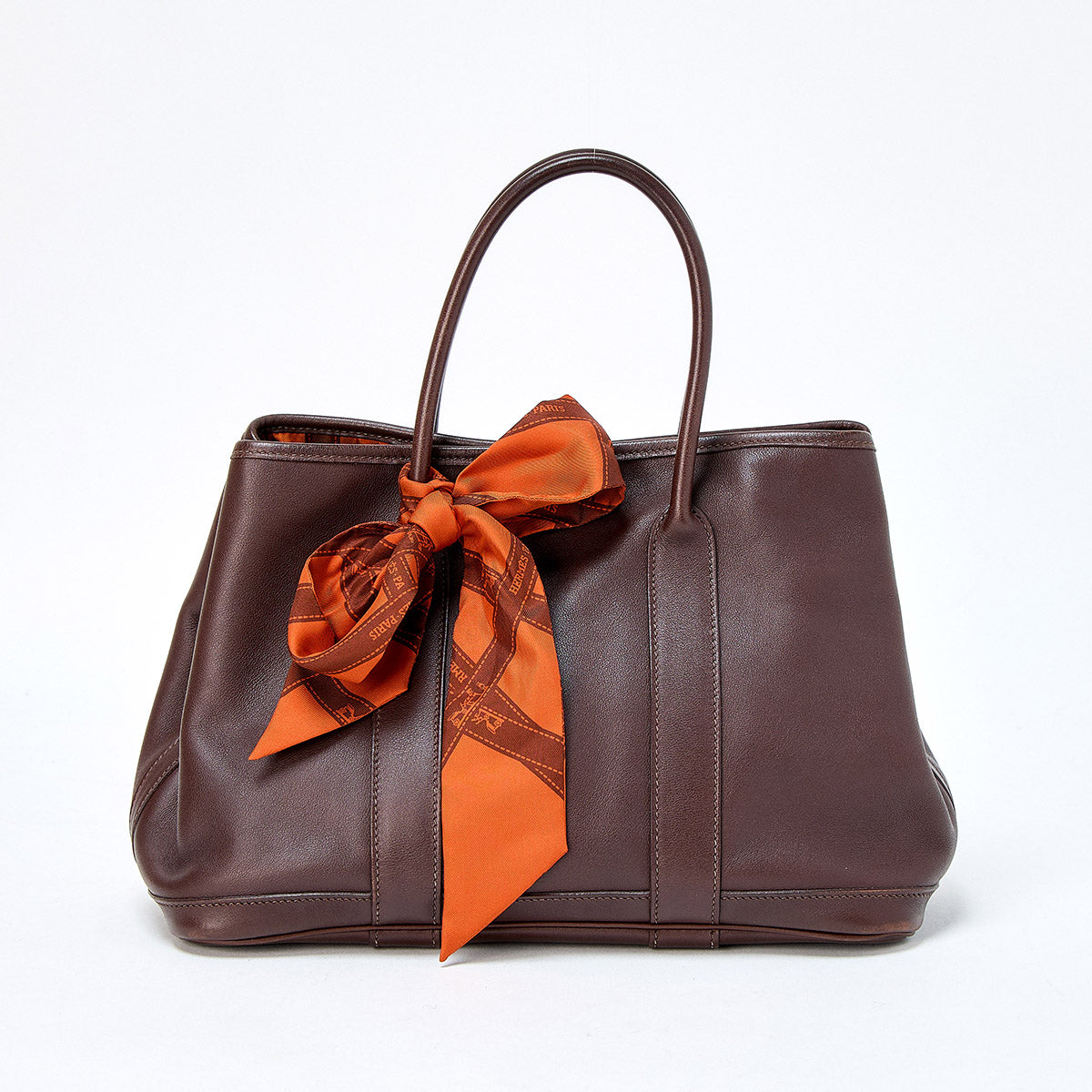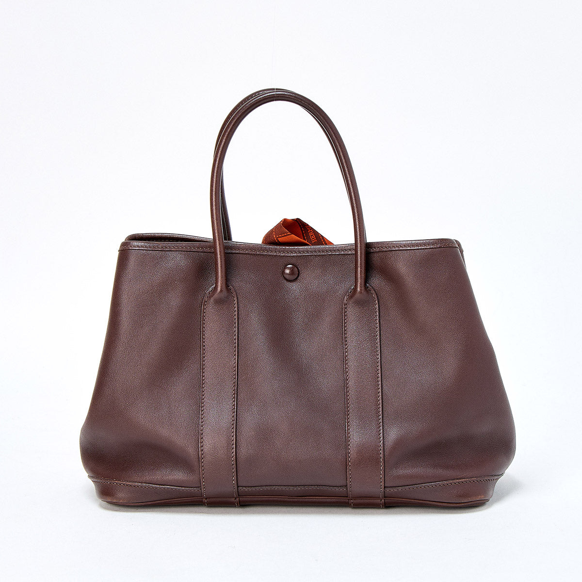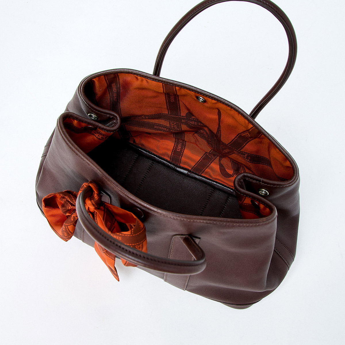 HERMES Garden Party TwillyTPM 2005 □I Hand Bag Havana Silver Swift Leather Auth