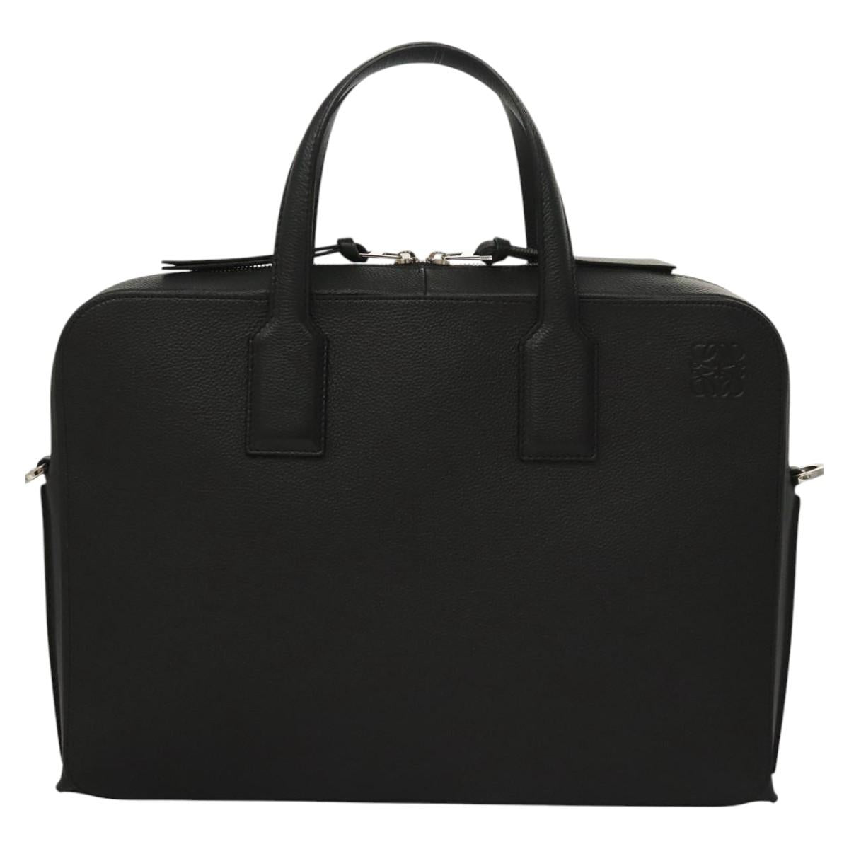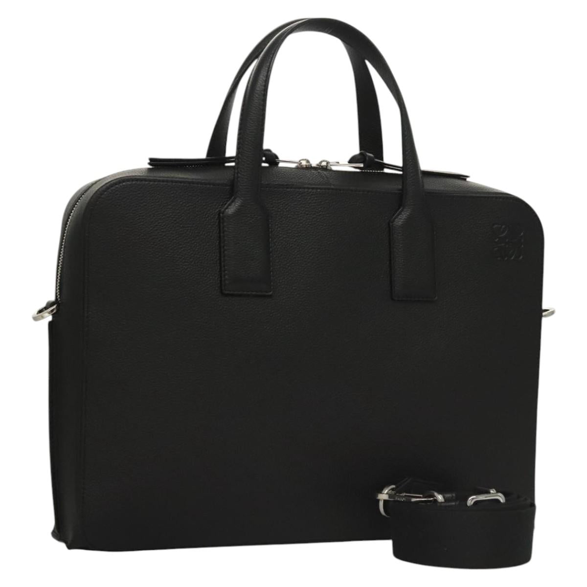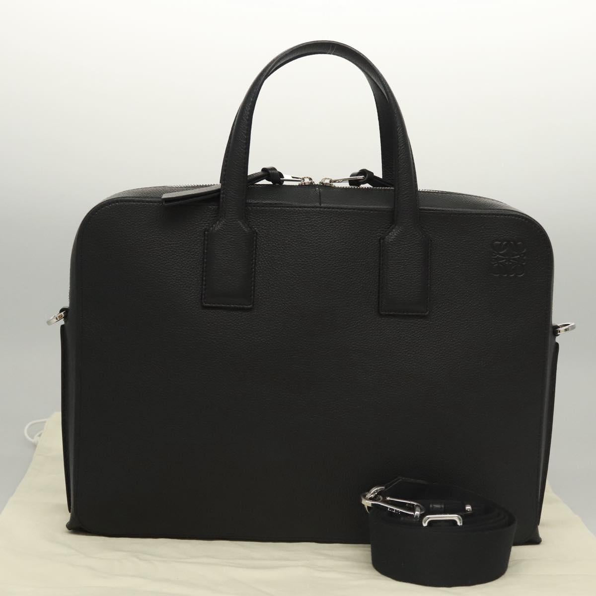 LOEWE Anagram Business Bag Leather 2way Black Silver Auth nb409AM