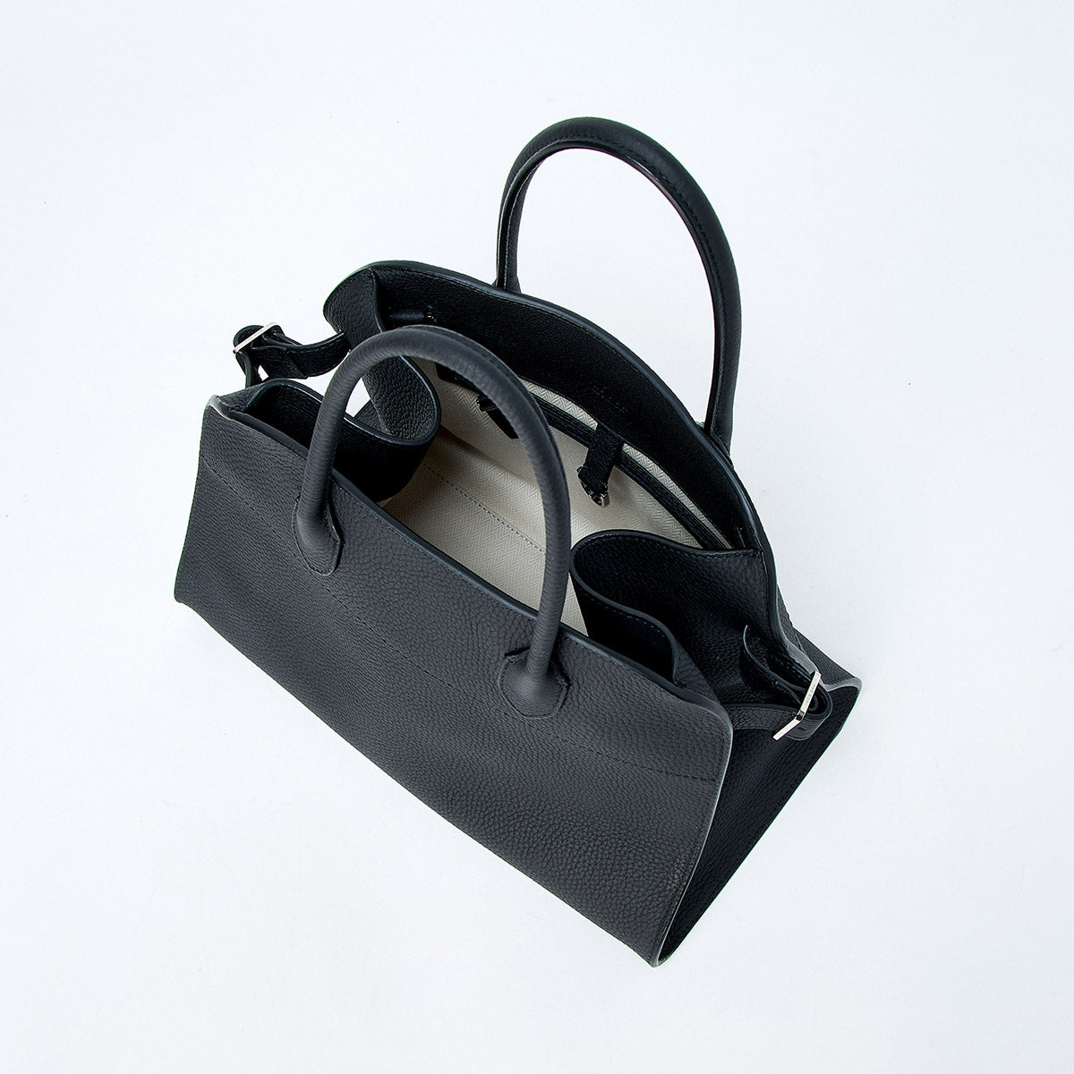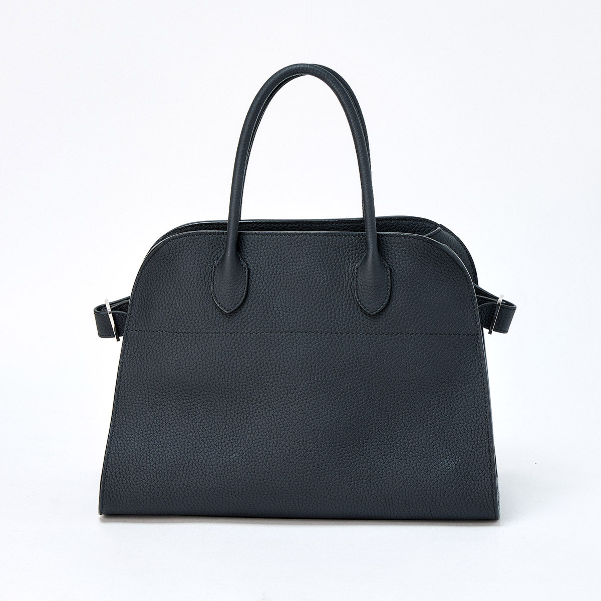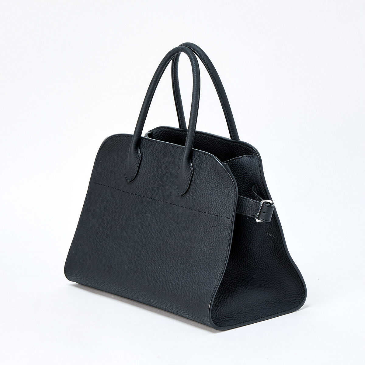 THE ROW Margaux 12 Hand Bag Black Silver Calf Skin Auth