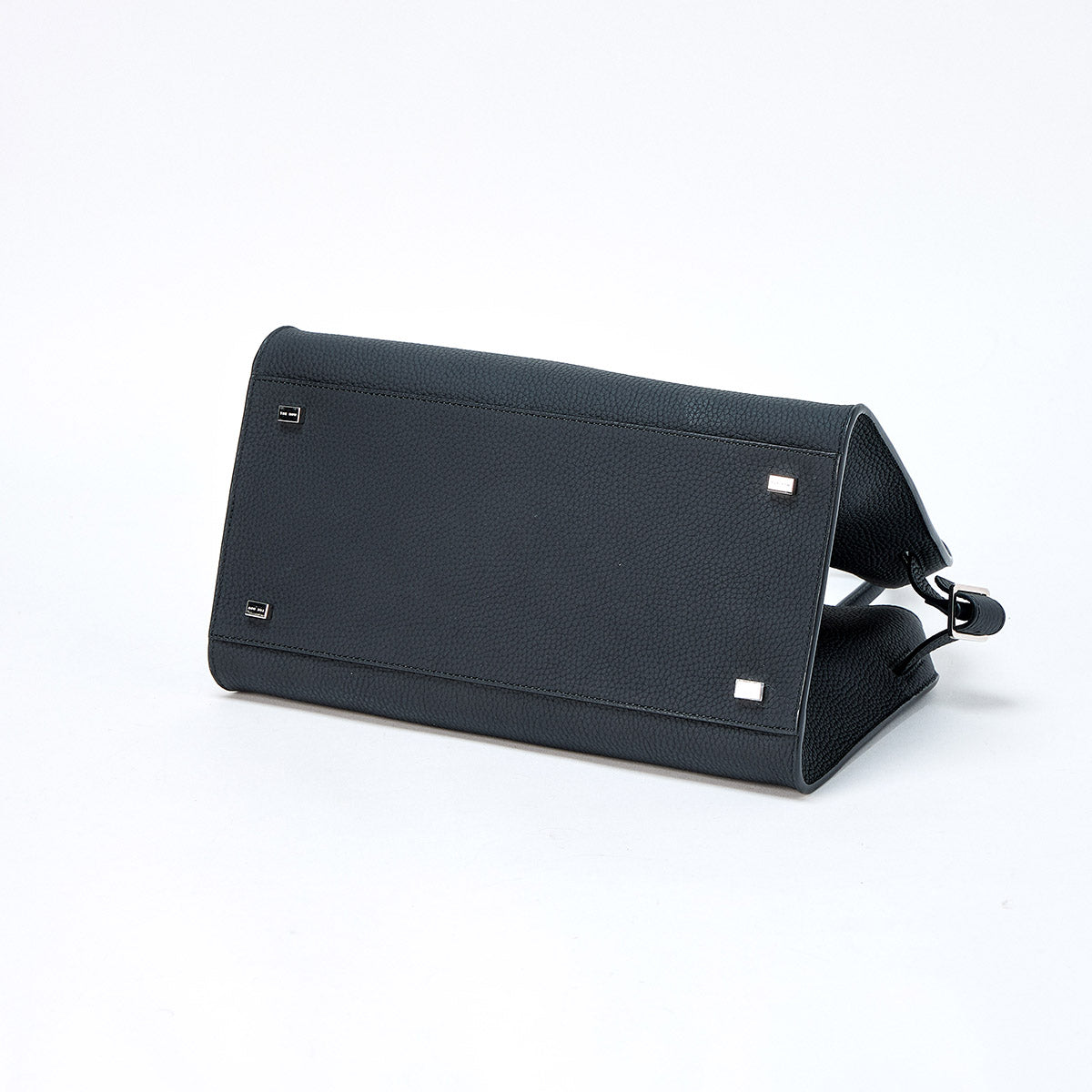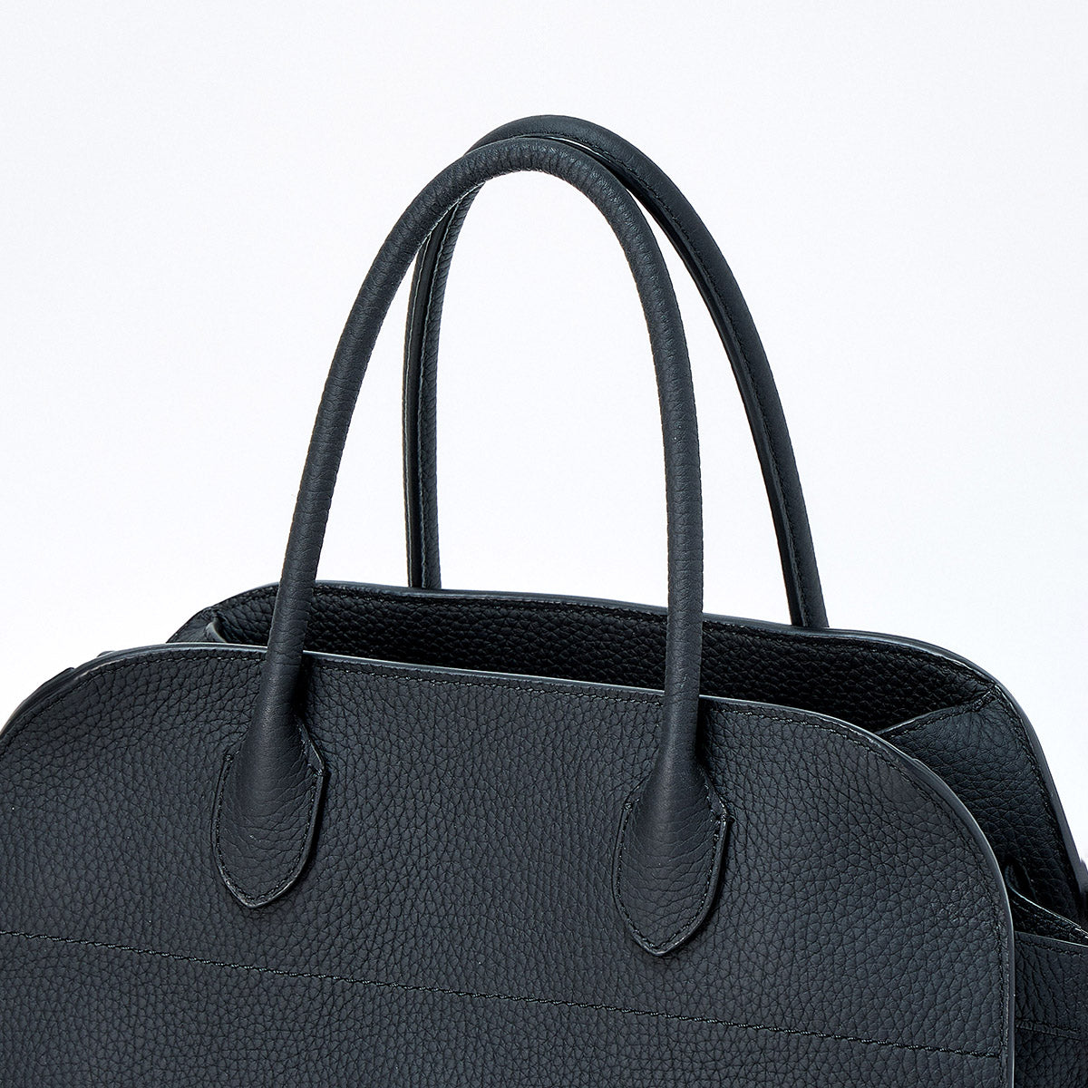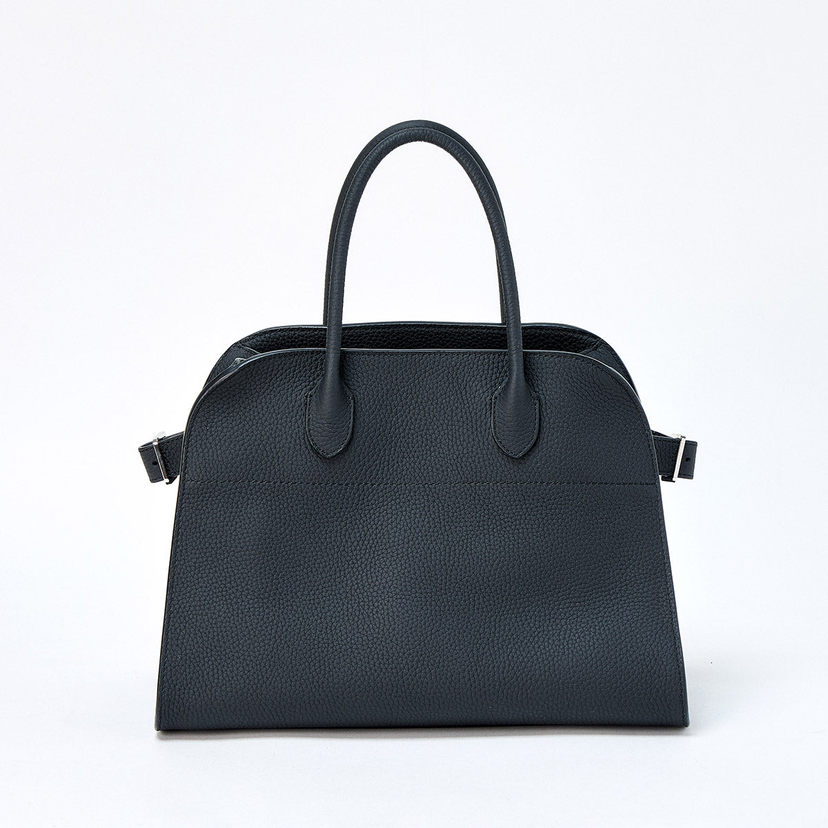 THE ROW Margaux 12 Hand Bag Black Silver Calf Skin Auth