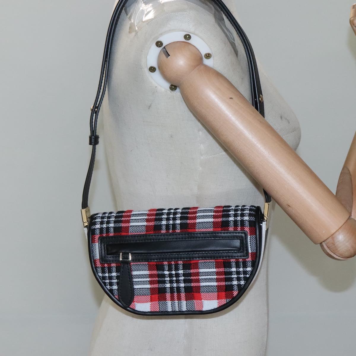 BURBERRY Nova Check Olympia Shoulder Bag Canvas Gold Red Auth BD1449AM