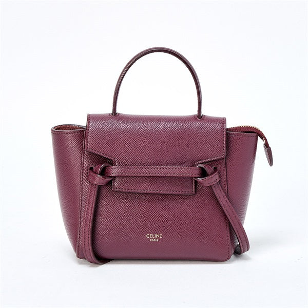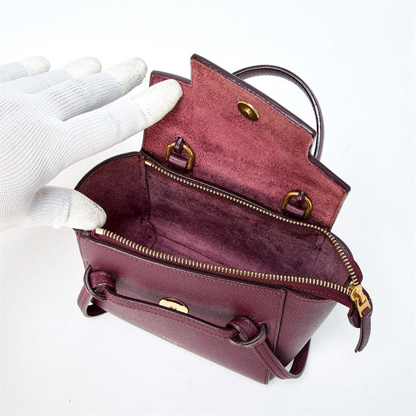 CELINE Belt Bag Pico Shoulder Bag Red Gold Leather Auth
