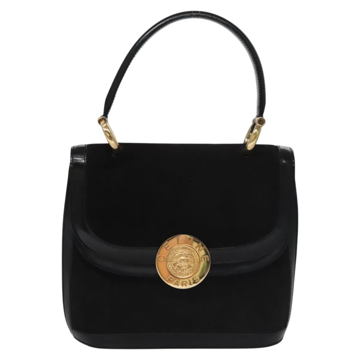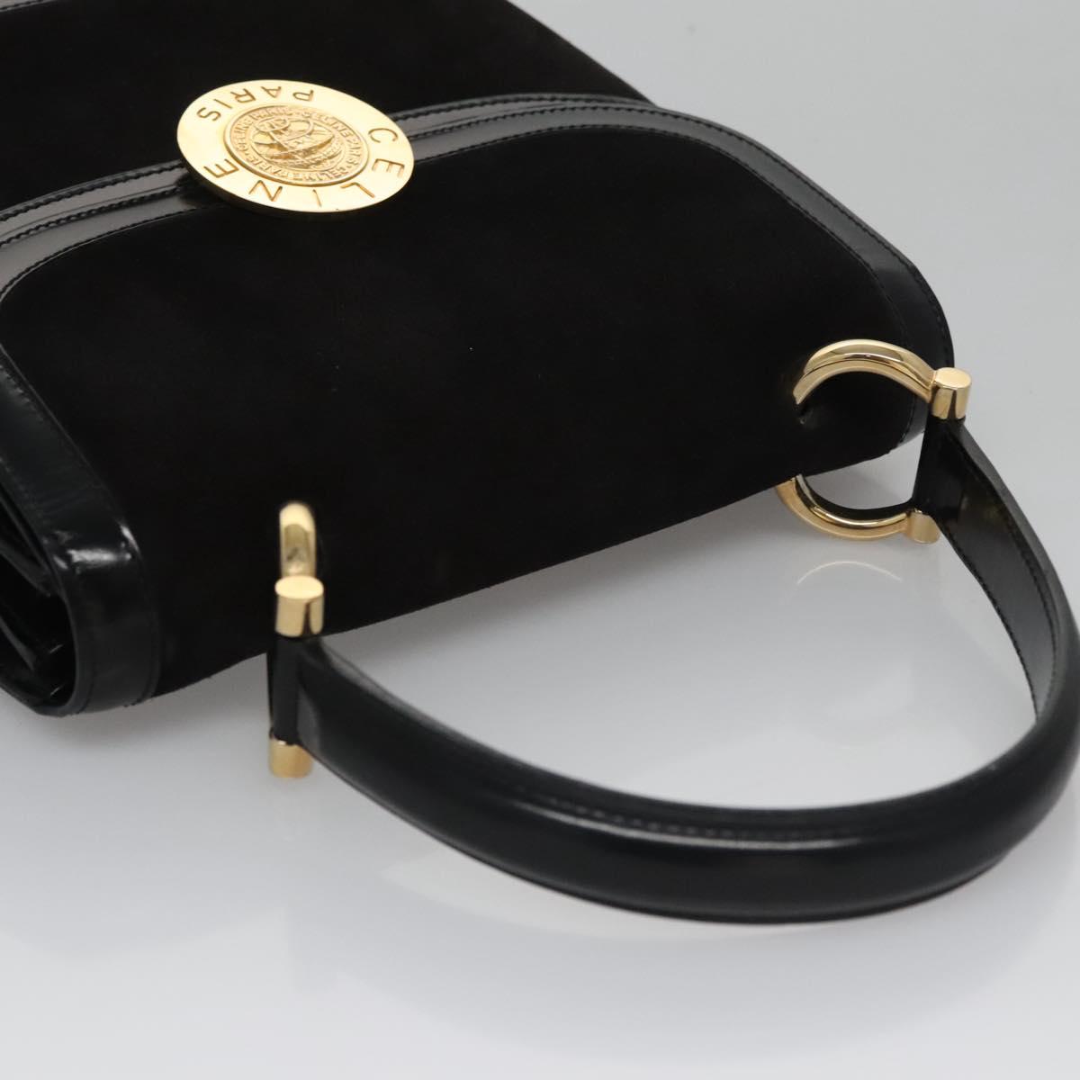 CELINE Hand Bag Suede Black Gold Auth BD112V
