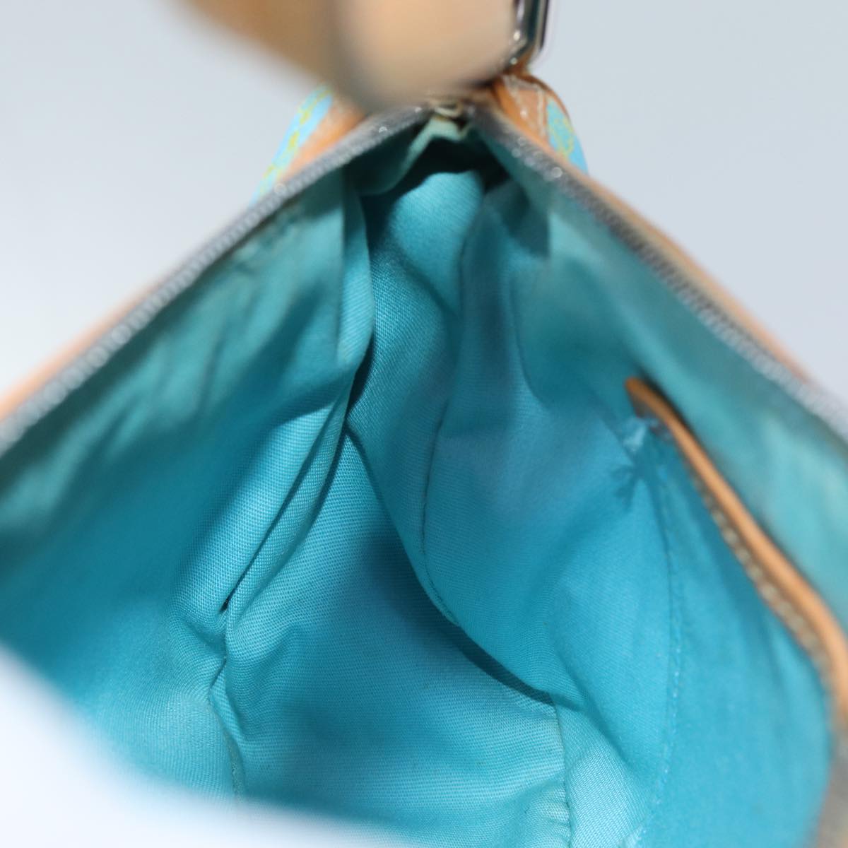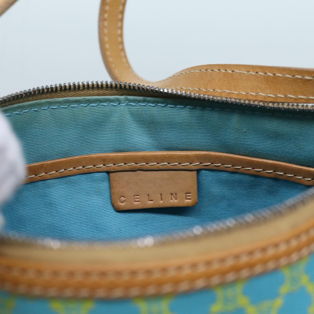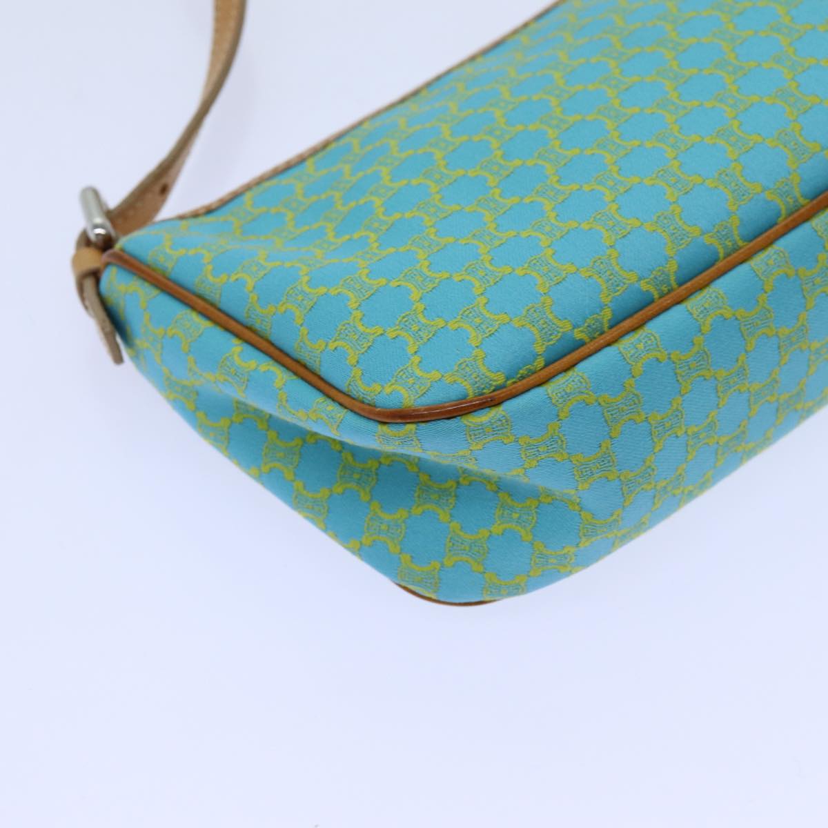 CELINE Macadam Canvas Accessory Pouch Light Blue Yellow Brown Auth 72320V