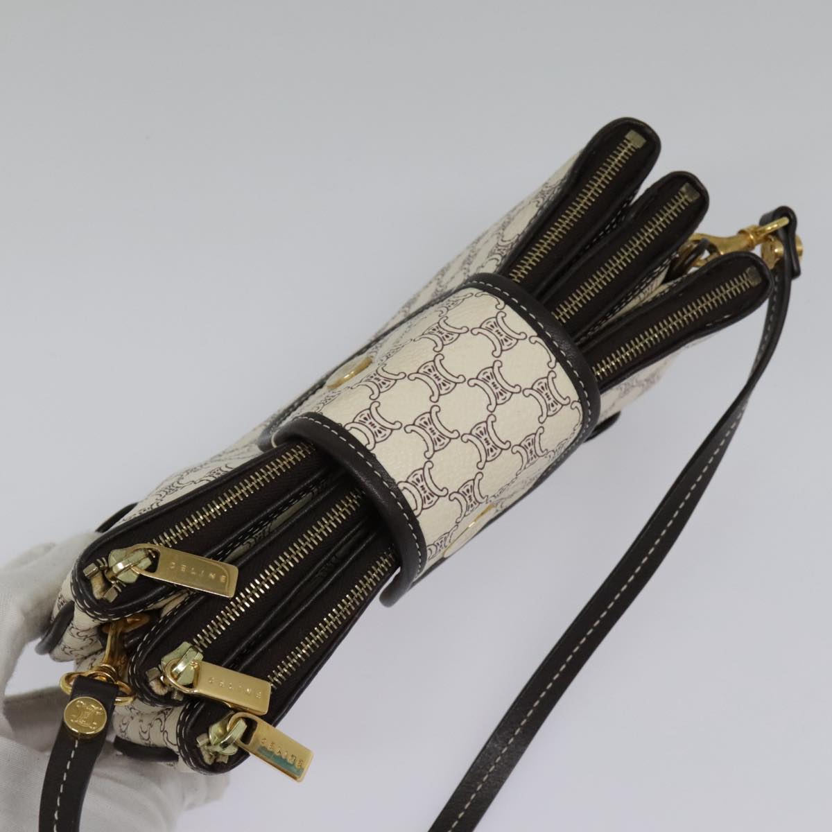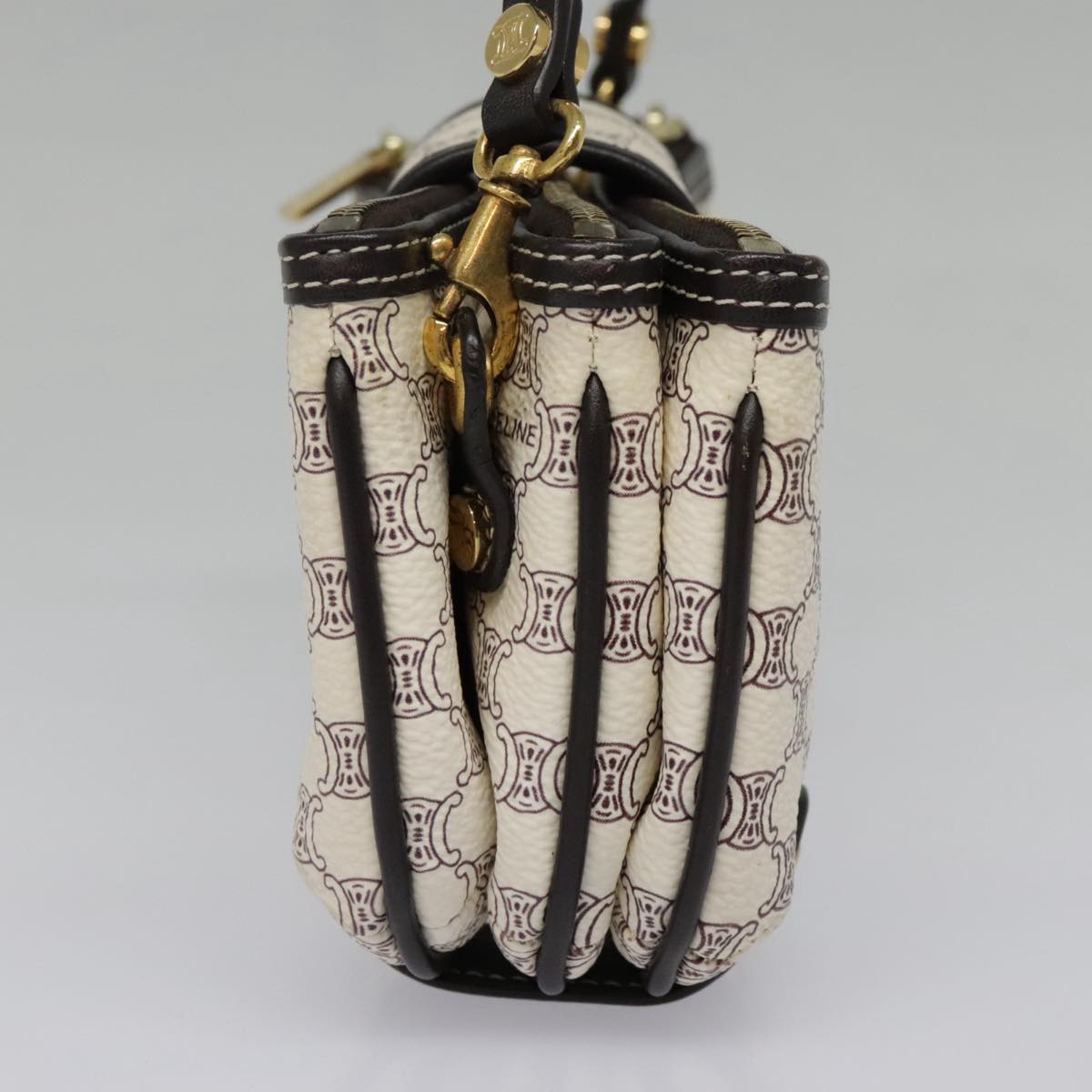 CELINE Macadam Canvas Accessory Pouch PVC Leather White Gold Auth 93826AV
