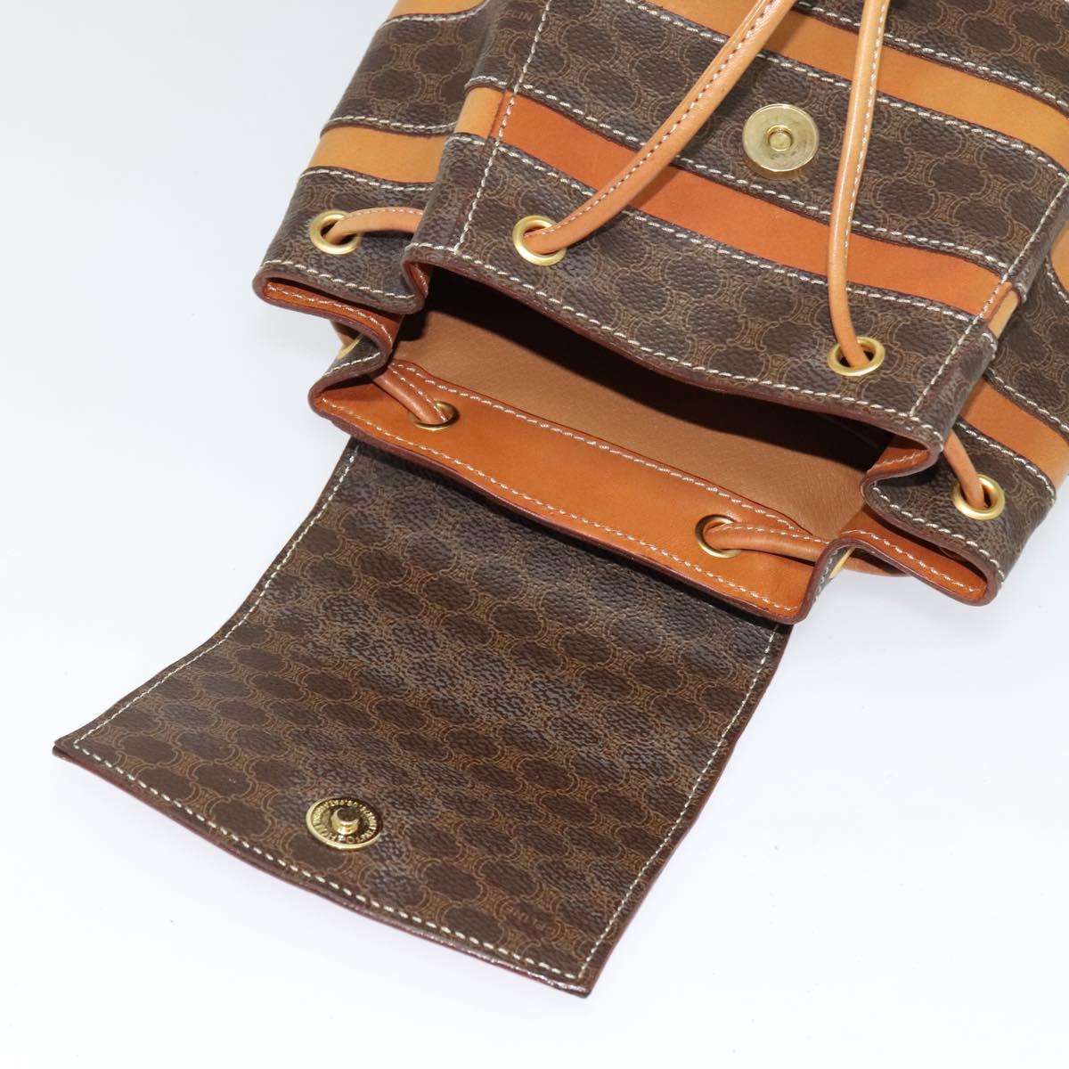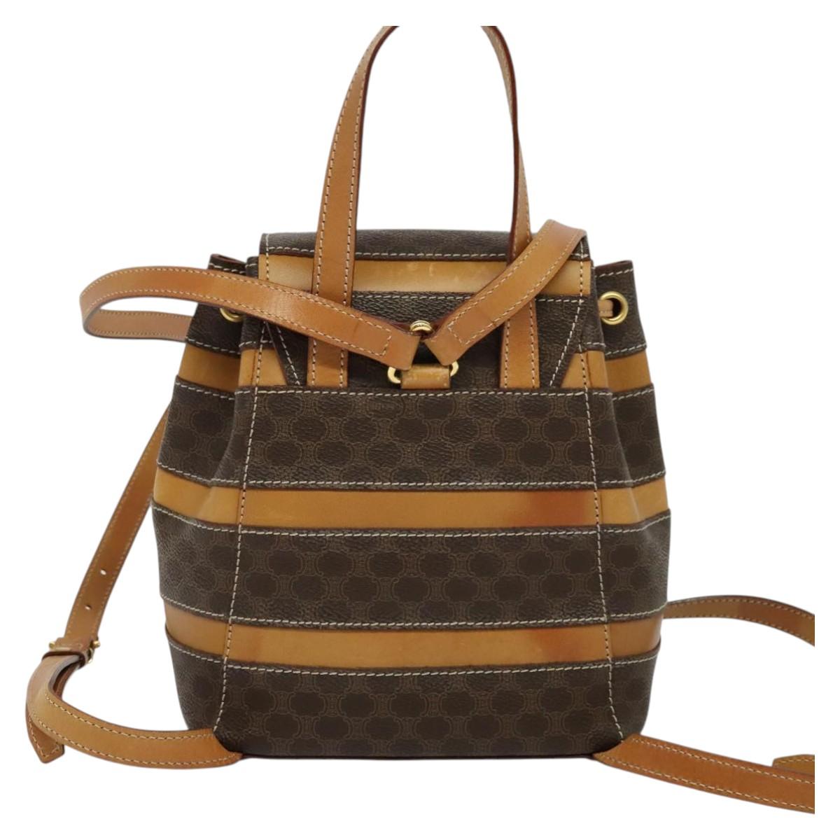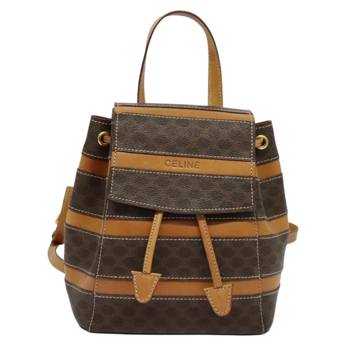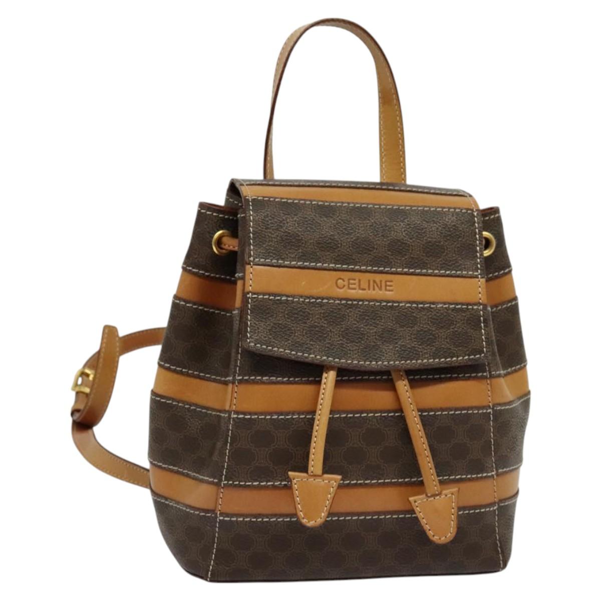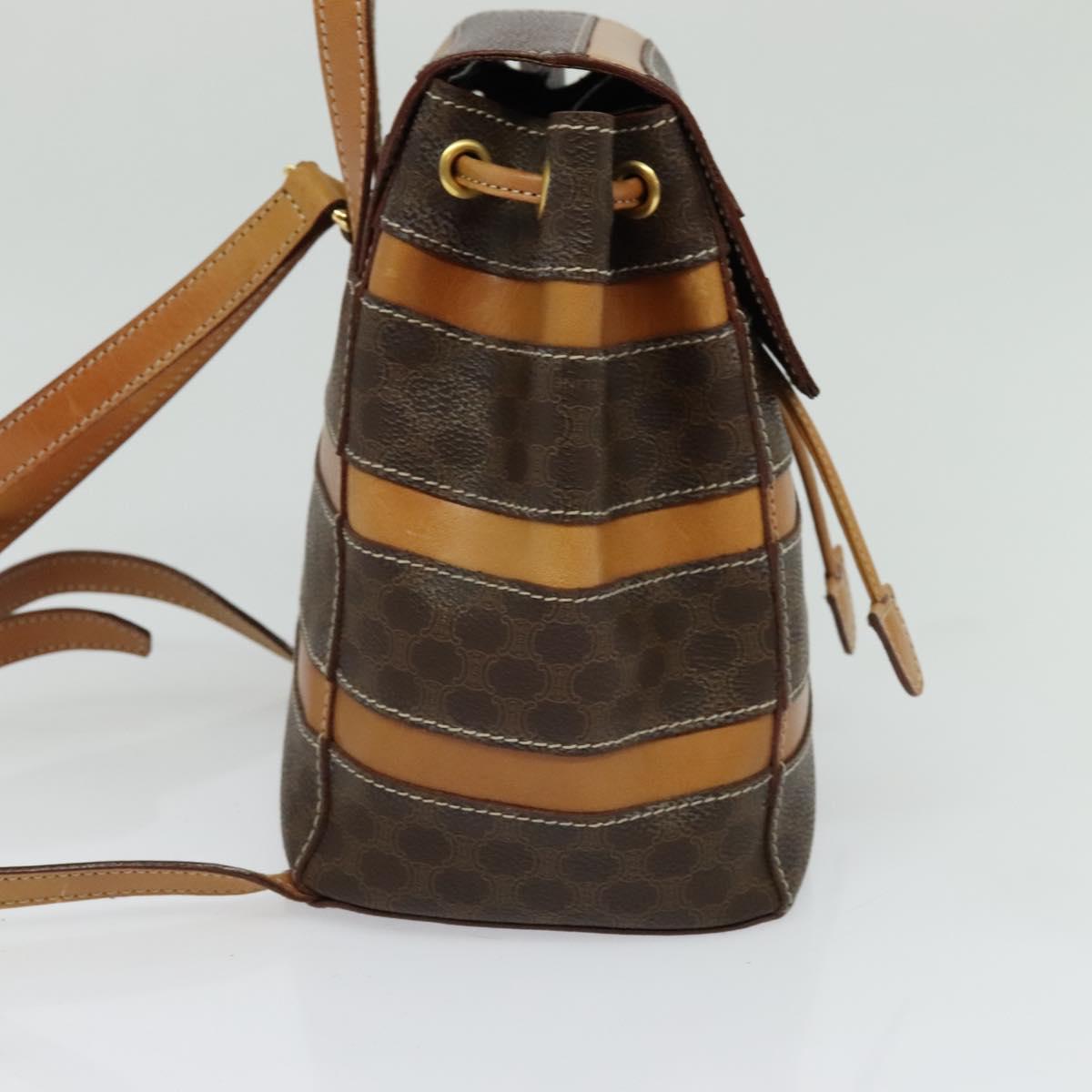 CELINE Macadam Canvas Backpack PVC Leather Brown Gold Auth ep8975