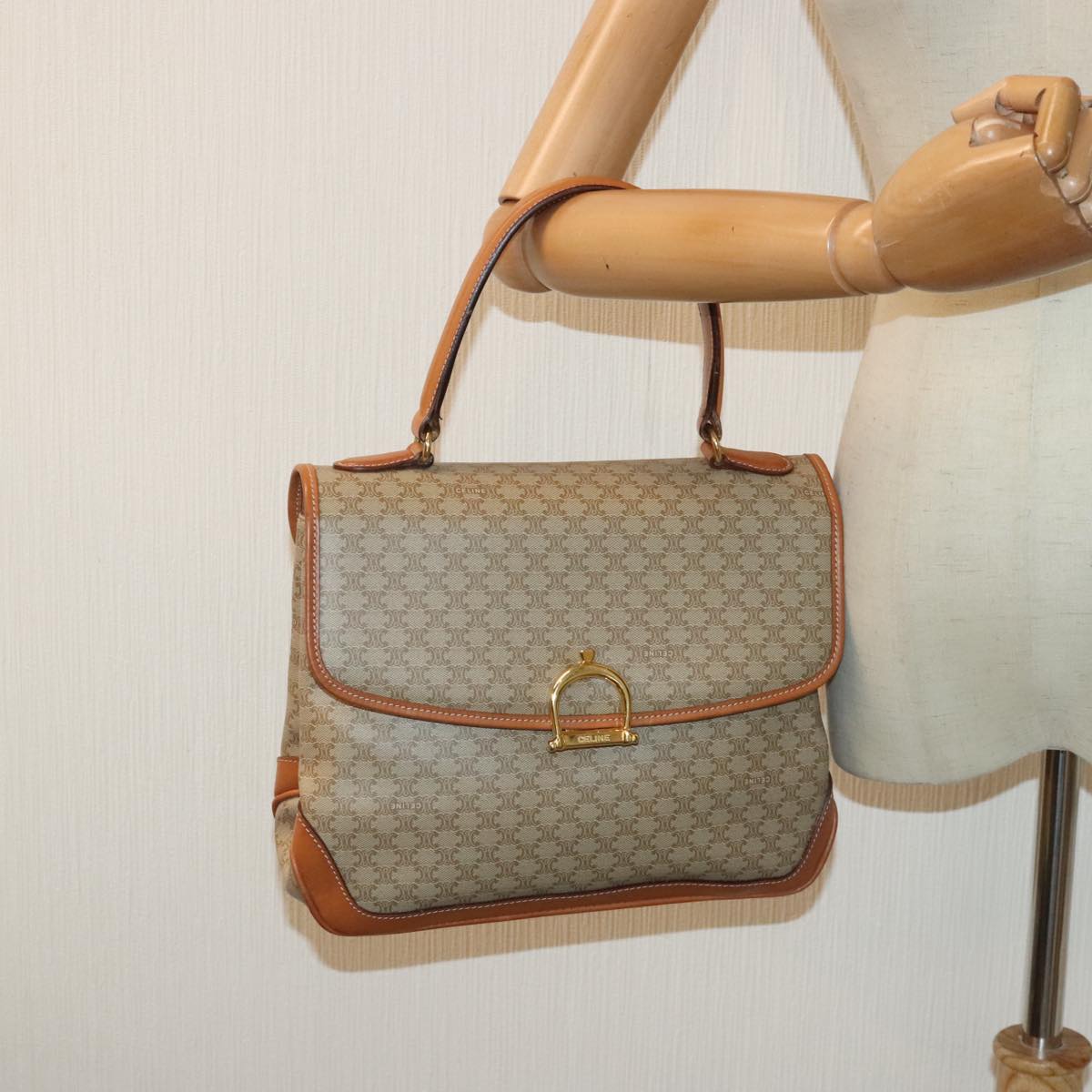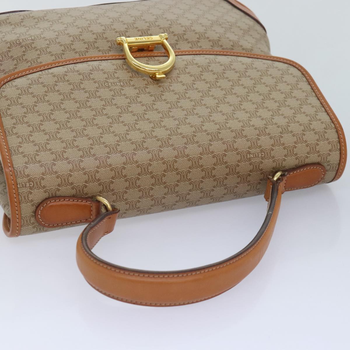 CELINE Macadam Canvas Hand Bag PVC Beige Auth 90842V