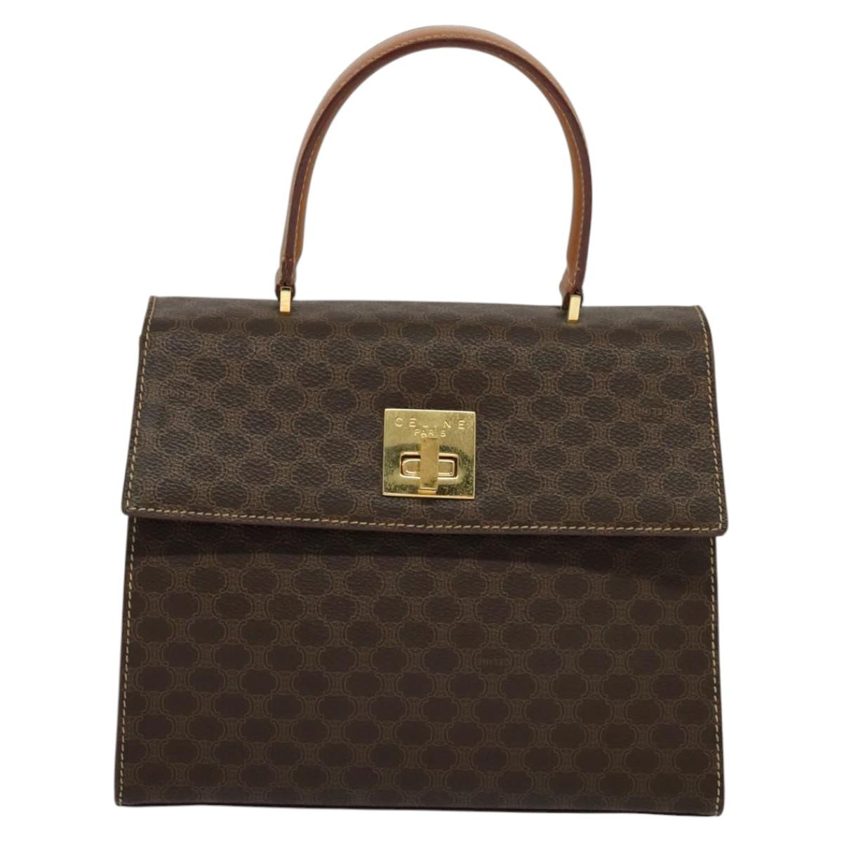 CELINE Macadam Canvas Hand Bag PVC Leather 2way Brown Auth 115688V