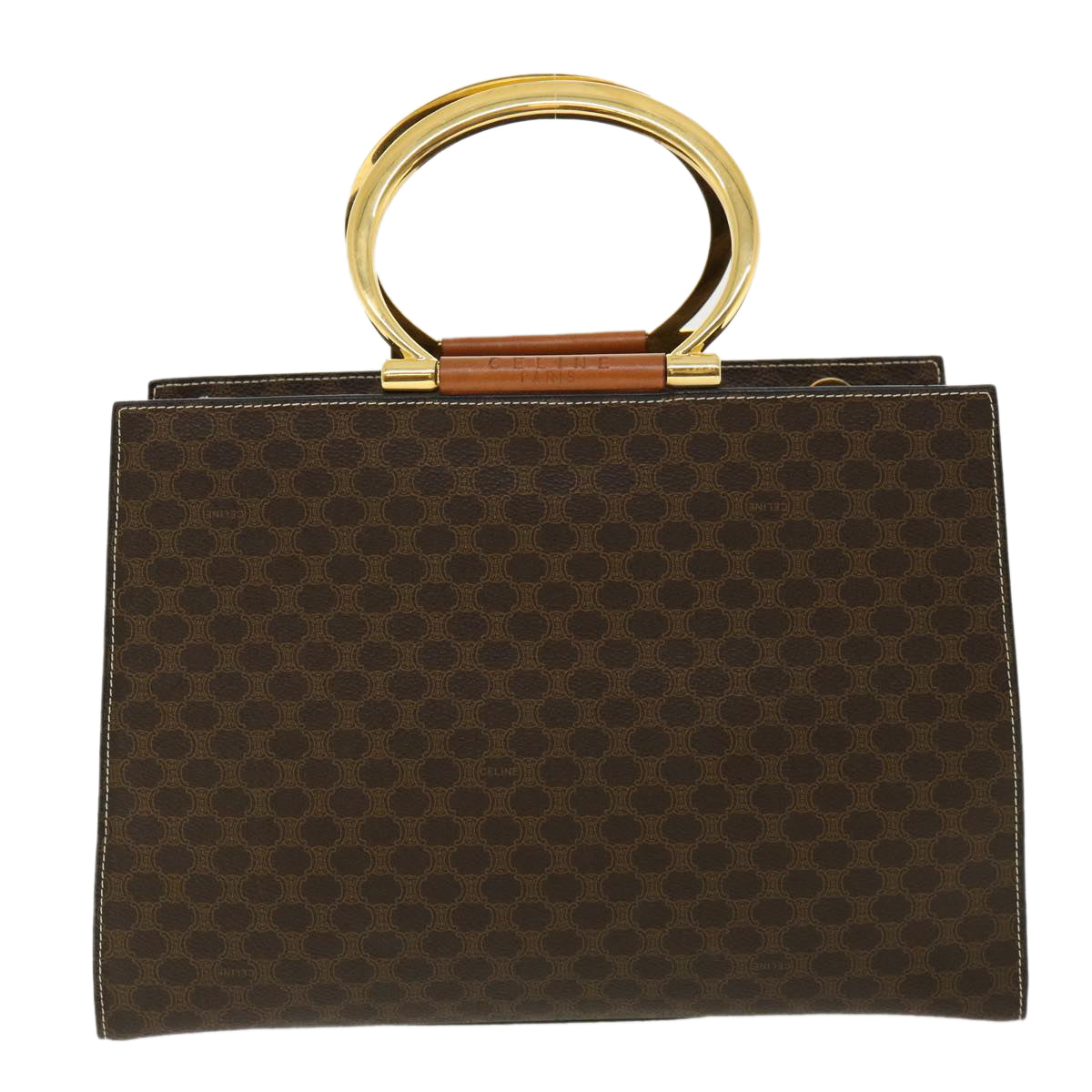 CELINE Macadam Canvas Hand Bag PVC Leather Brown Auth am3558V