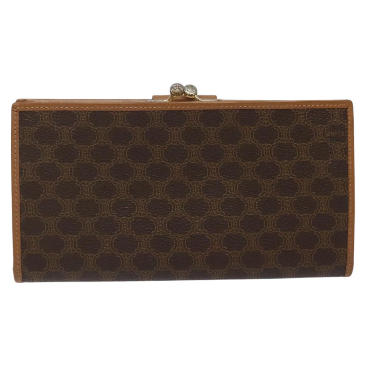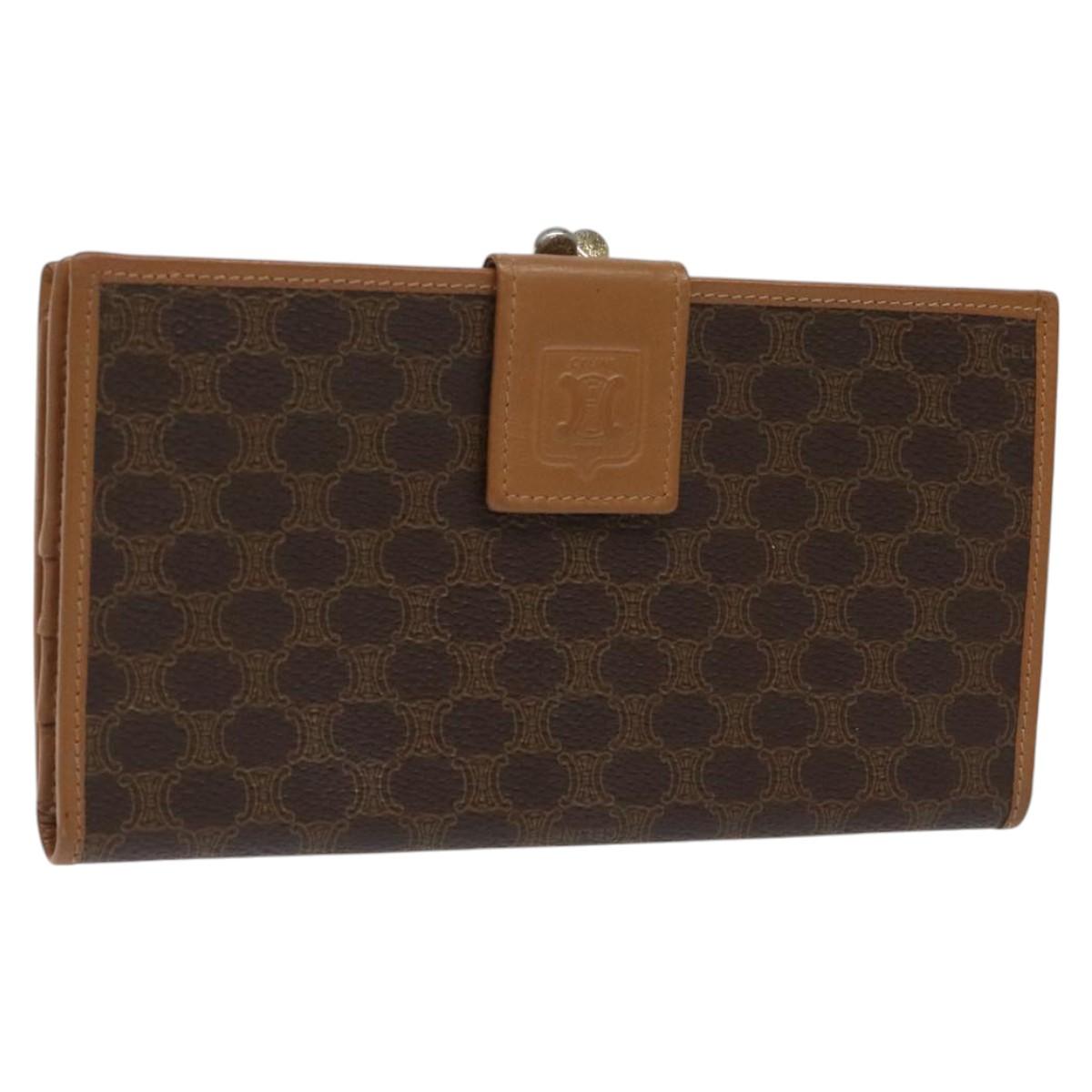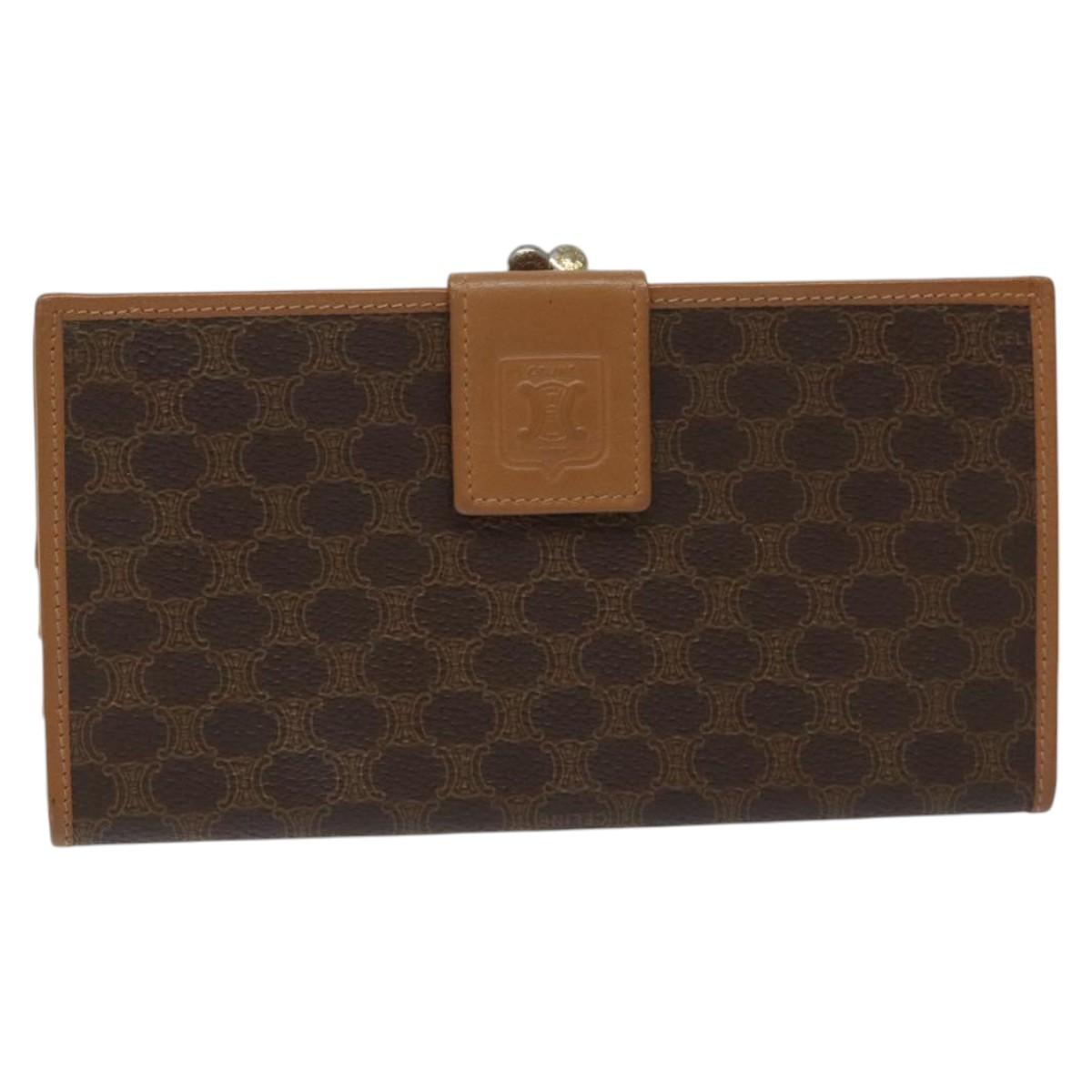 CELINE Macadam Canvas Long Wallet PVC Leather Brown Auth MY475V