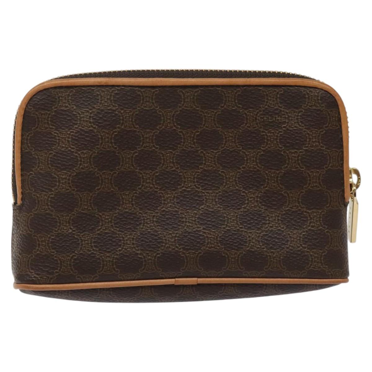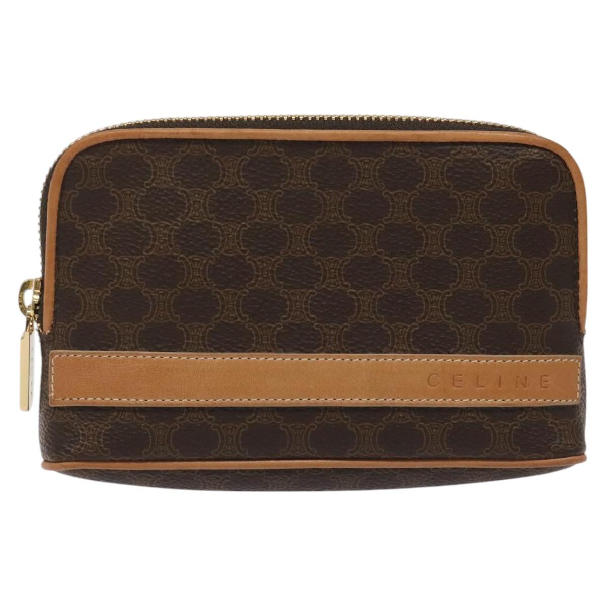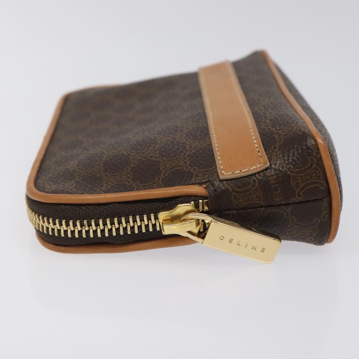 CELINE Macadam Canvas Pouch PVC Leather Brown Gold Auth yk17701V