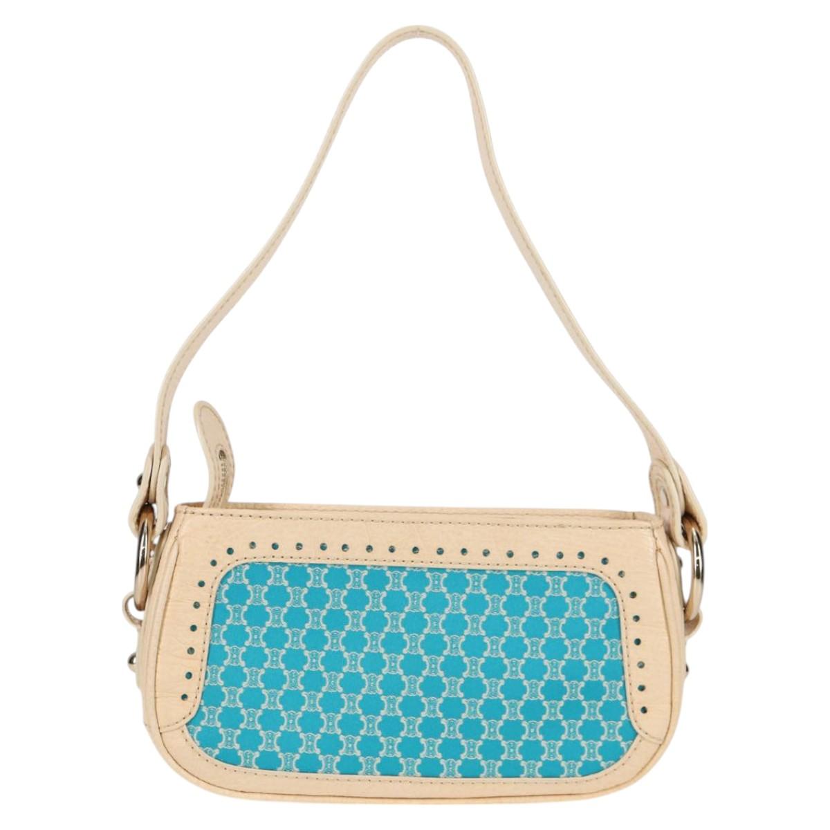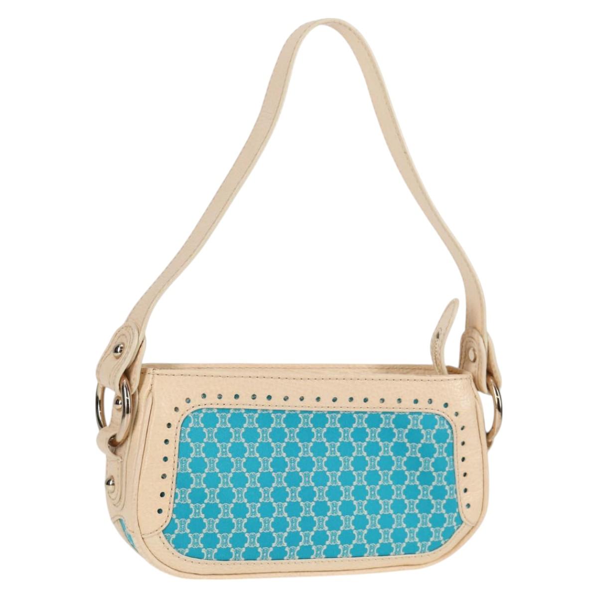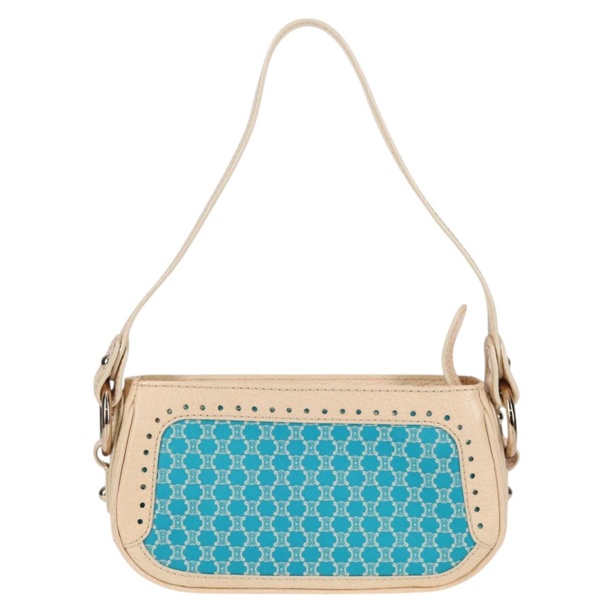 CELINE Macadam Canvas Shoulder Bag Blue Gold Auth 126161V