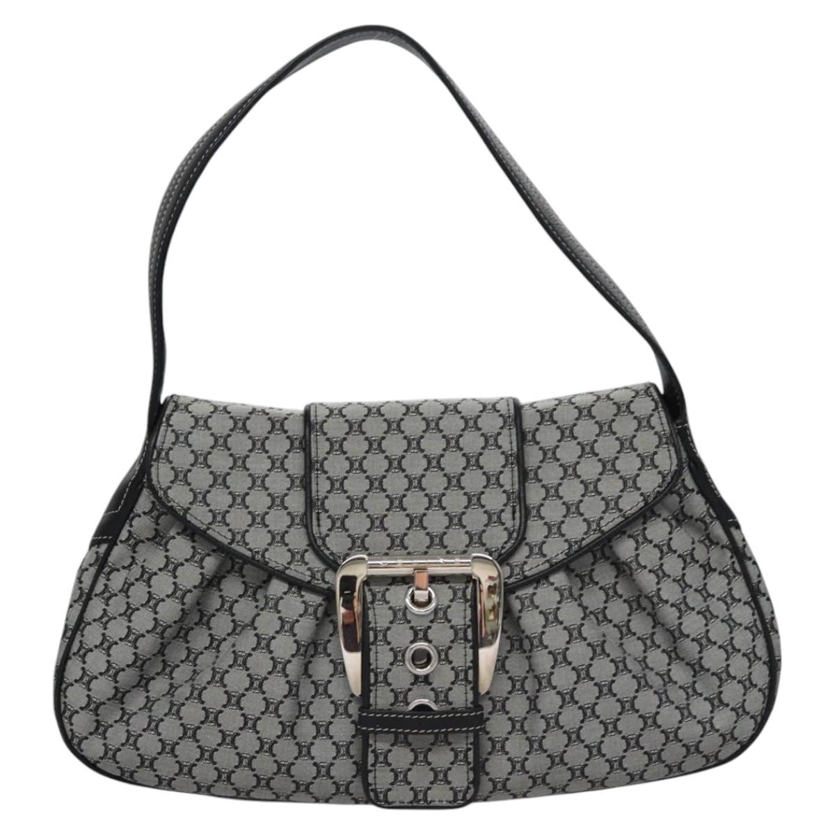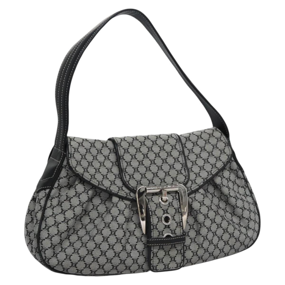 CELINE Macadam Canvas Shoulder Bag Gray Silver Auth ep7777V