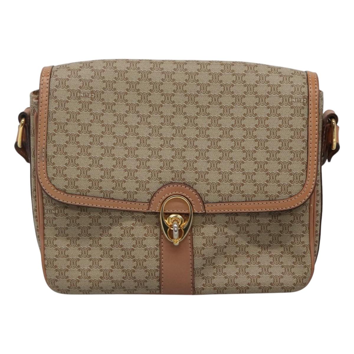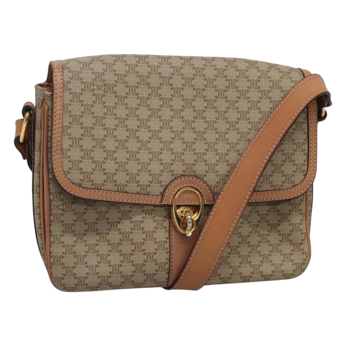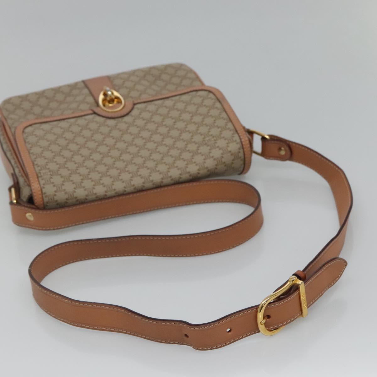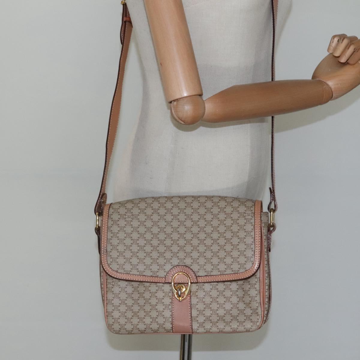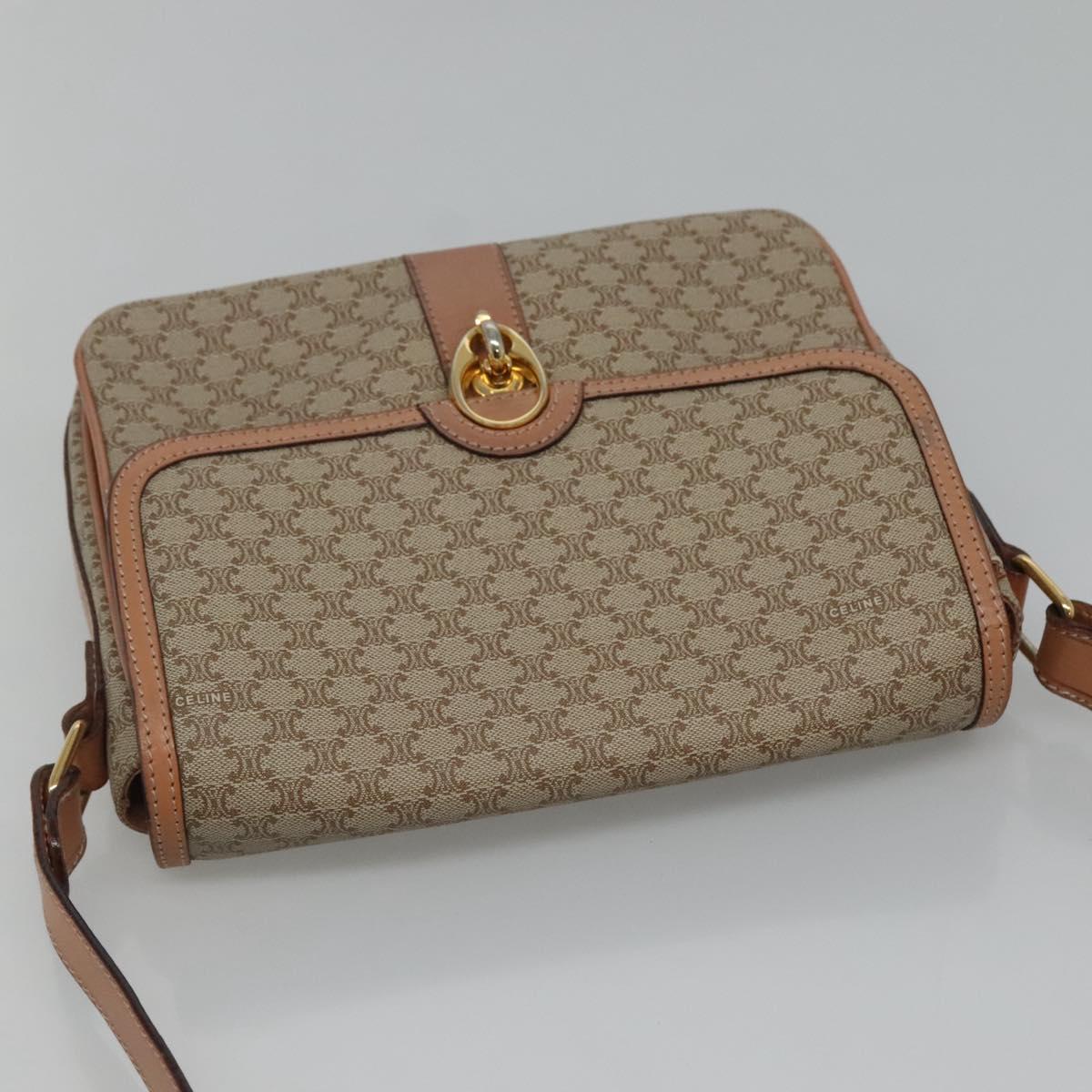 CELINE Macadam Canvas Shoulder Bag PVC Beige Gold Auth ki5580V