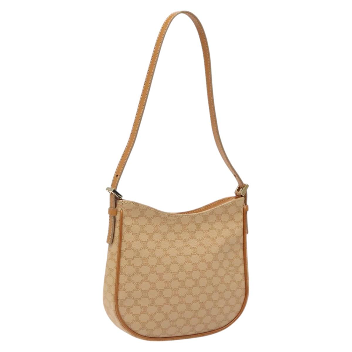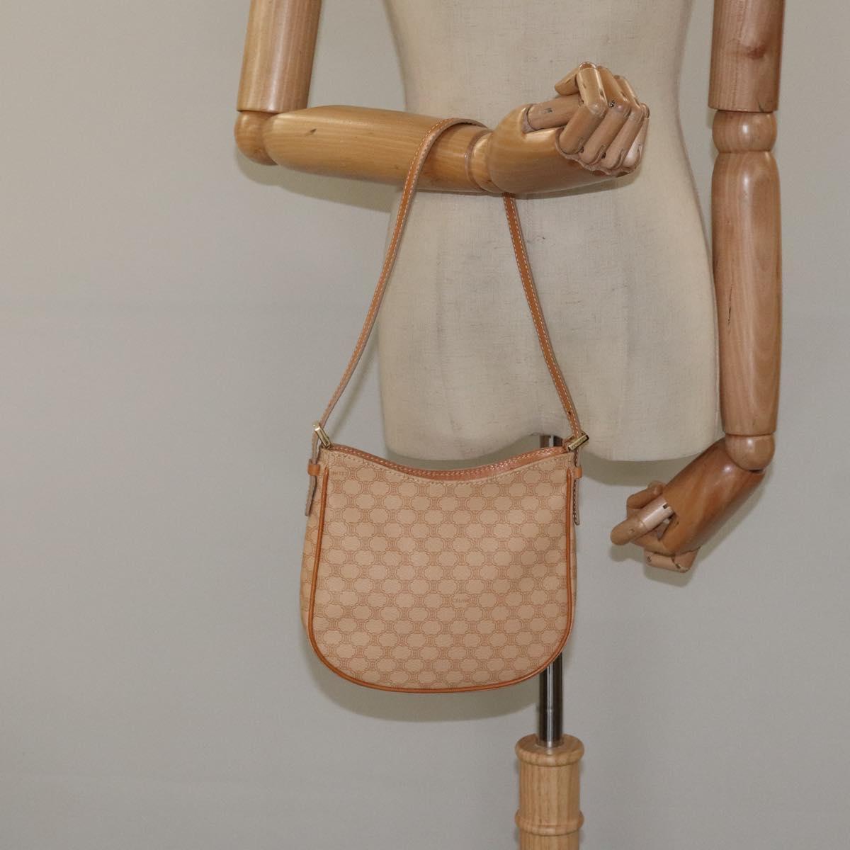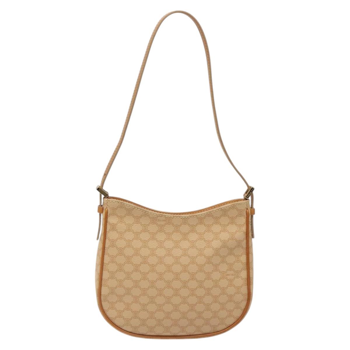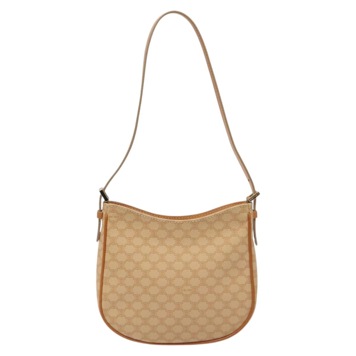 CELINE Macadam Canvas Shoulder Bag PVC Beige Gold Auth yk17723AV