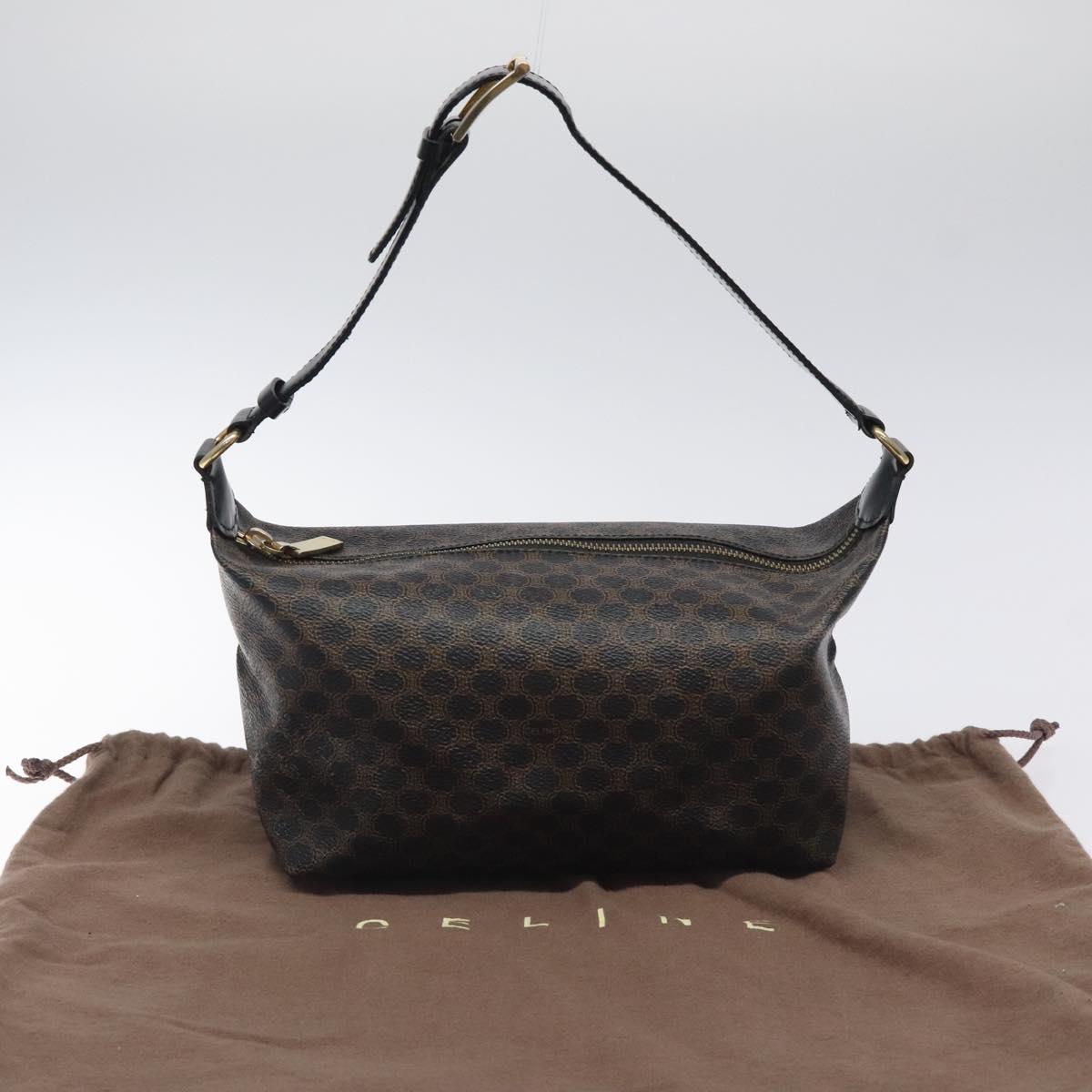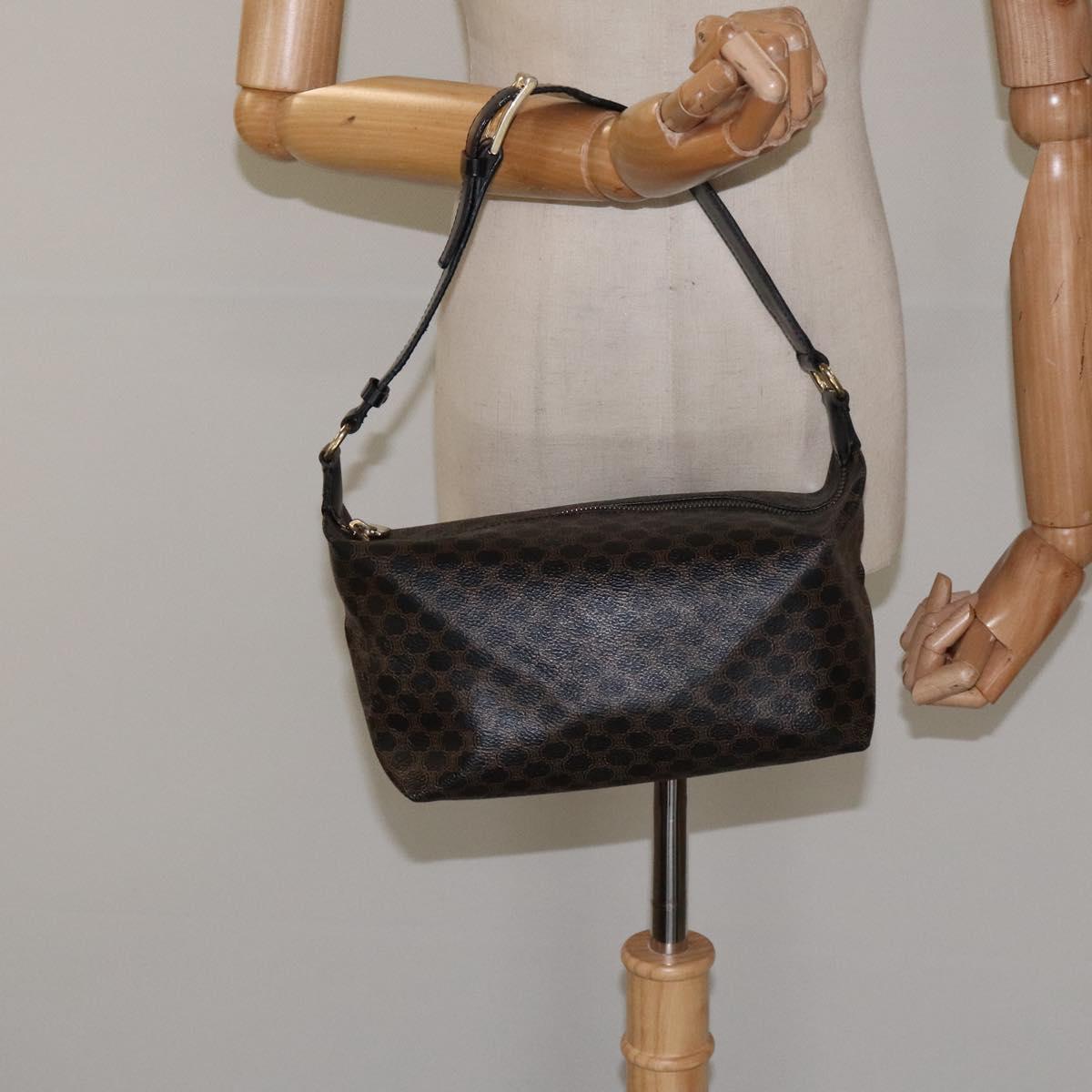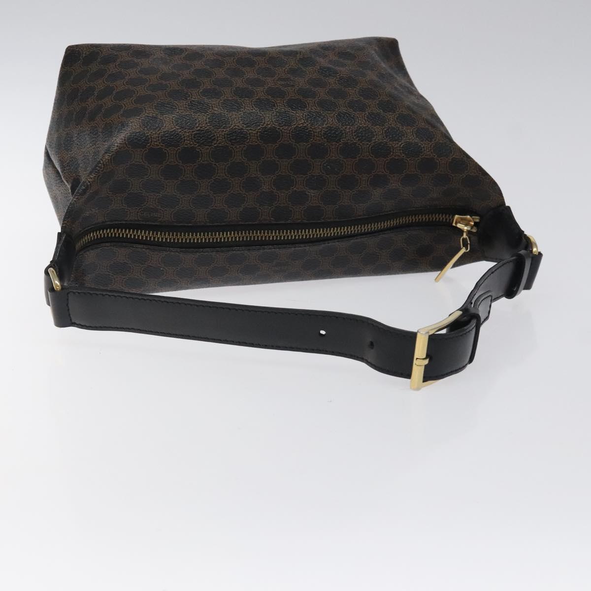 CELINE Macadam Canvas Shoulder Bag PVC Leather Brown Gold Auth 117584M