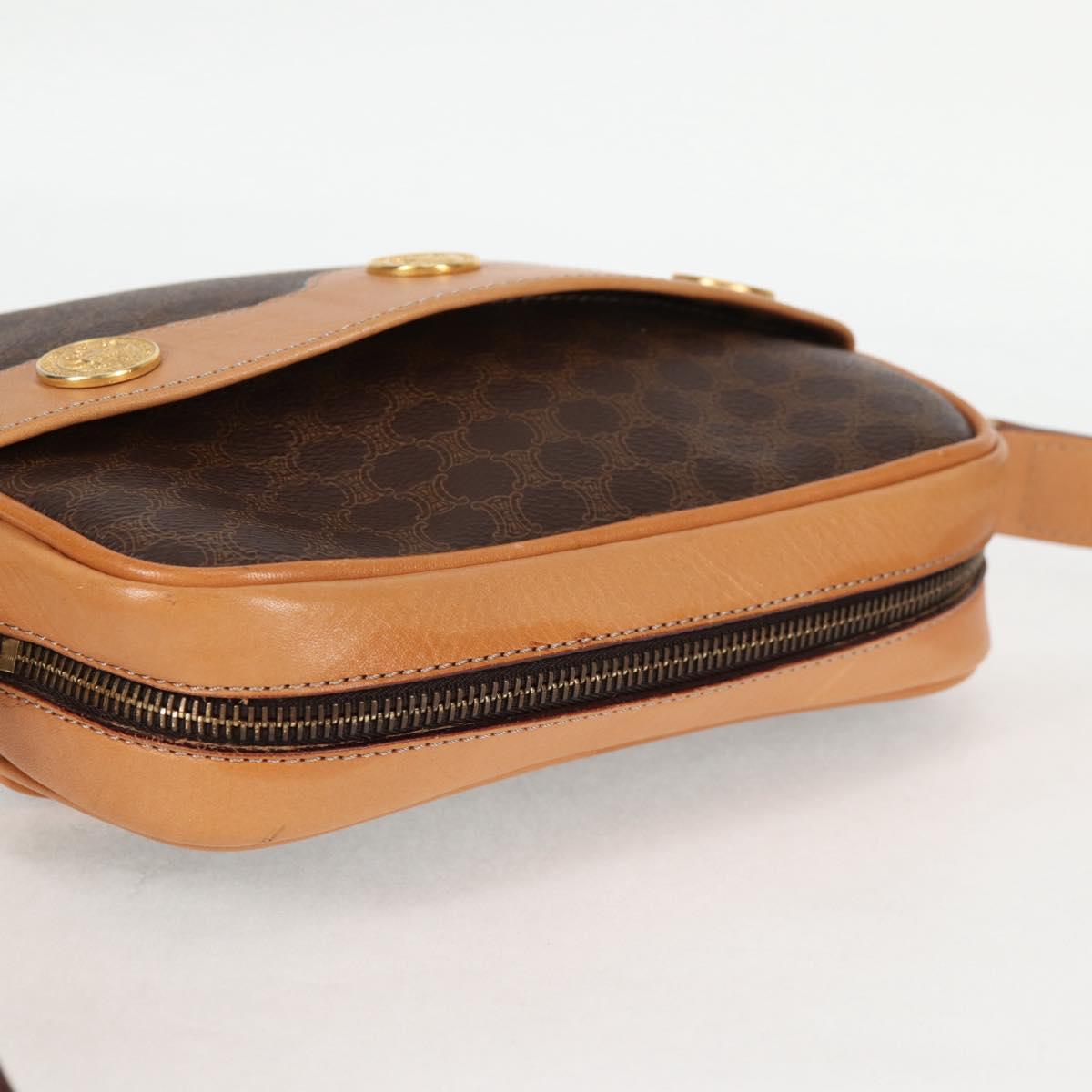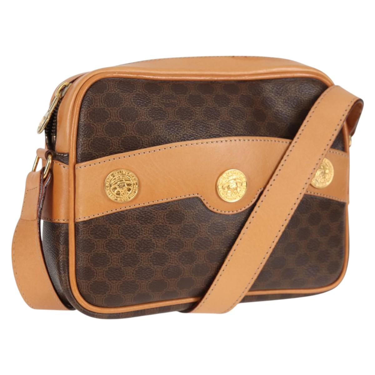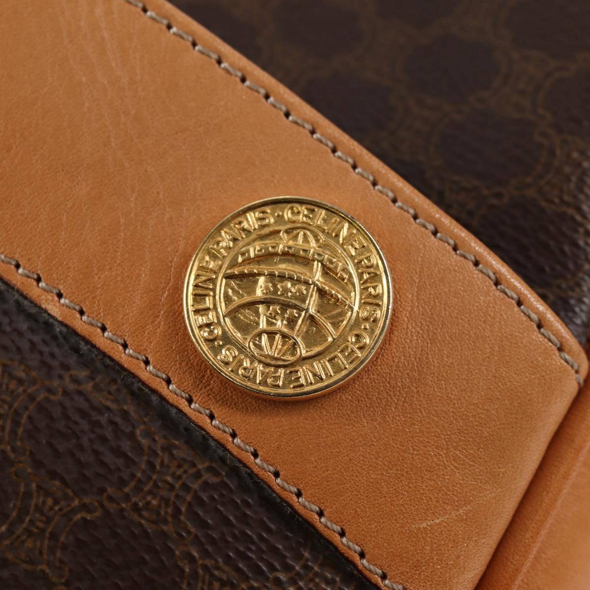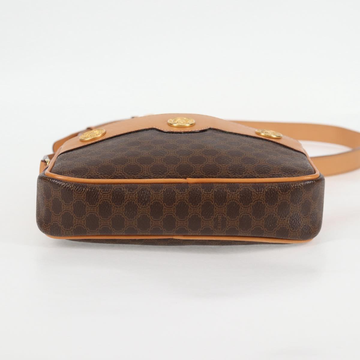 CELINE Macadam Canvas Shoulder Bag PVC Leather Brown Gold Auth BD2080M