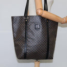CELINE Macadam Canvas Tote Bag PVC Leather Black Gold Auth 106873V