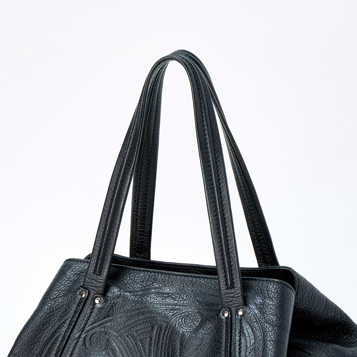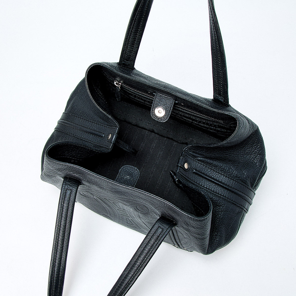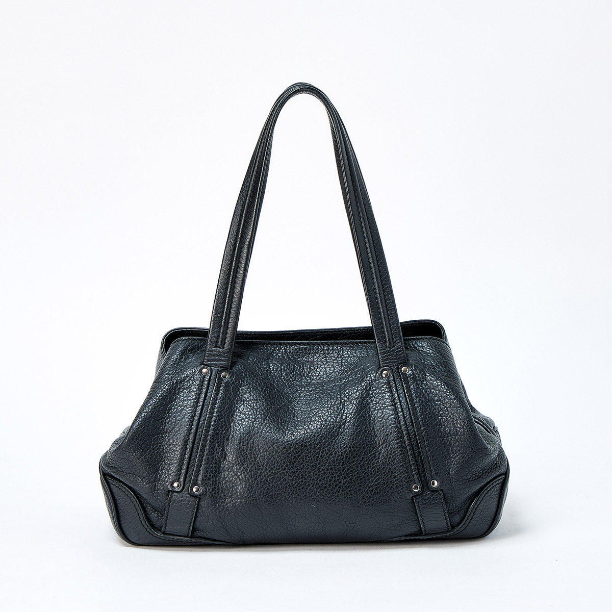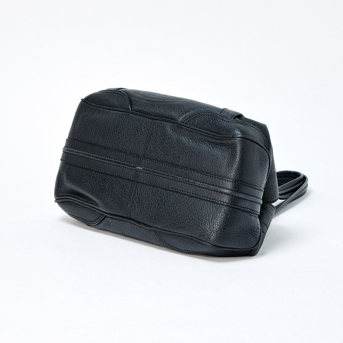 CELINE Macadam Shoulder Bag Black Gold Leather Auth