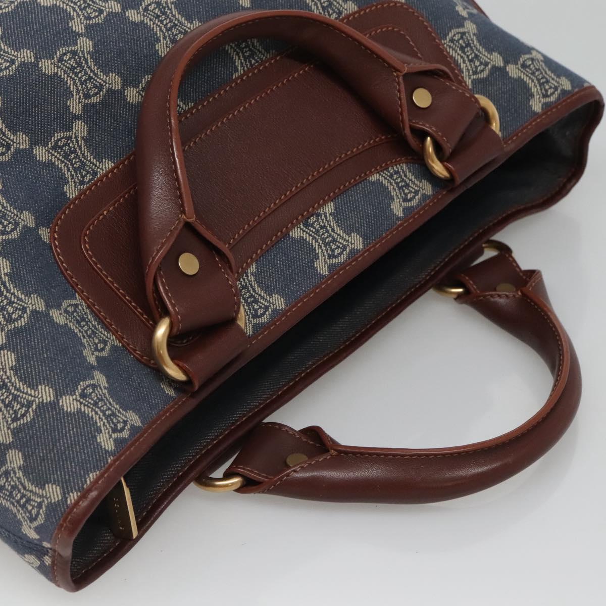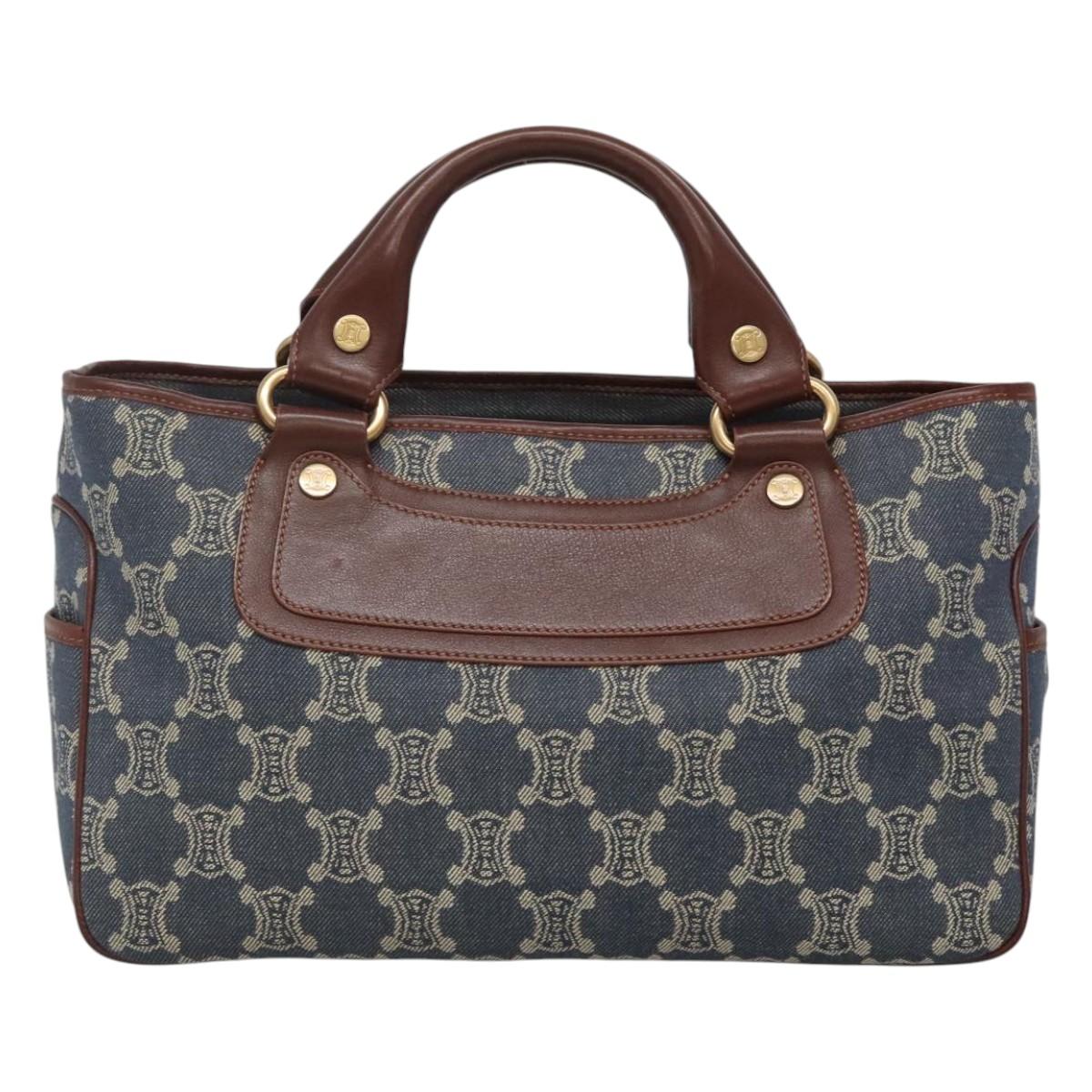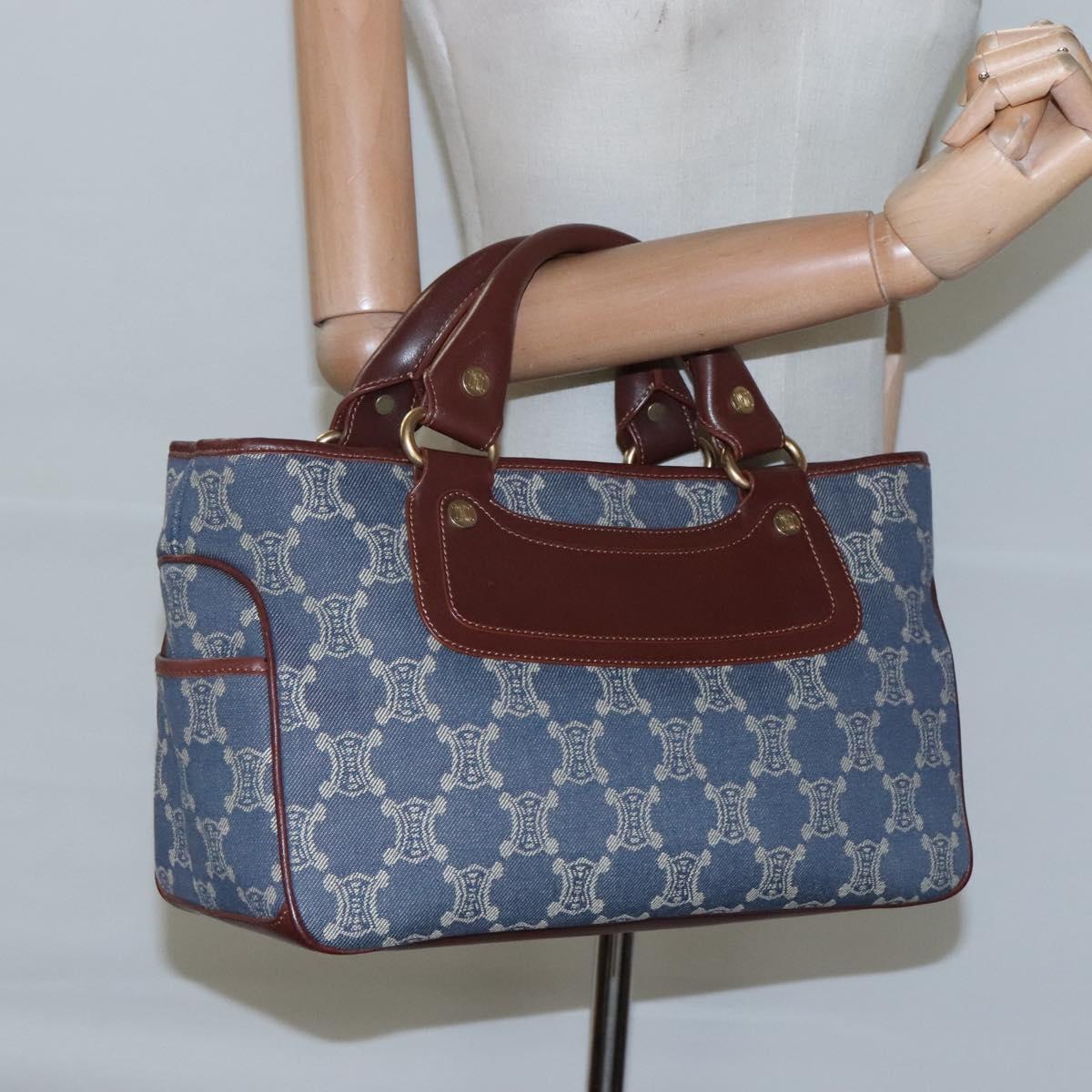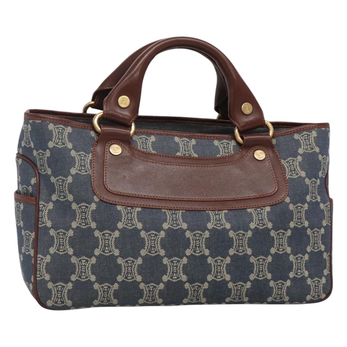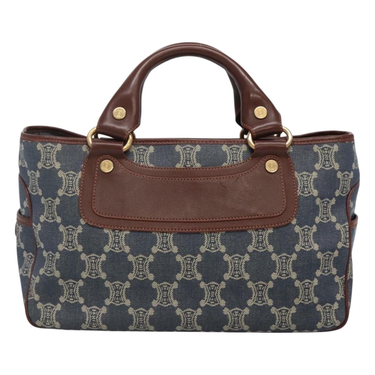 CELINE Paris Macadam Canvas boogie Hand Bag Denim Blue Gold Auth BD1220M