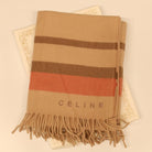 CELINE Scarf Wool Beige Red FIT6003813 Auth 43803