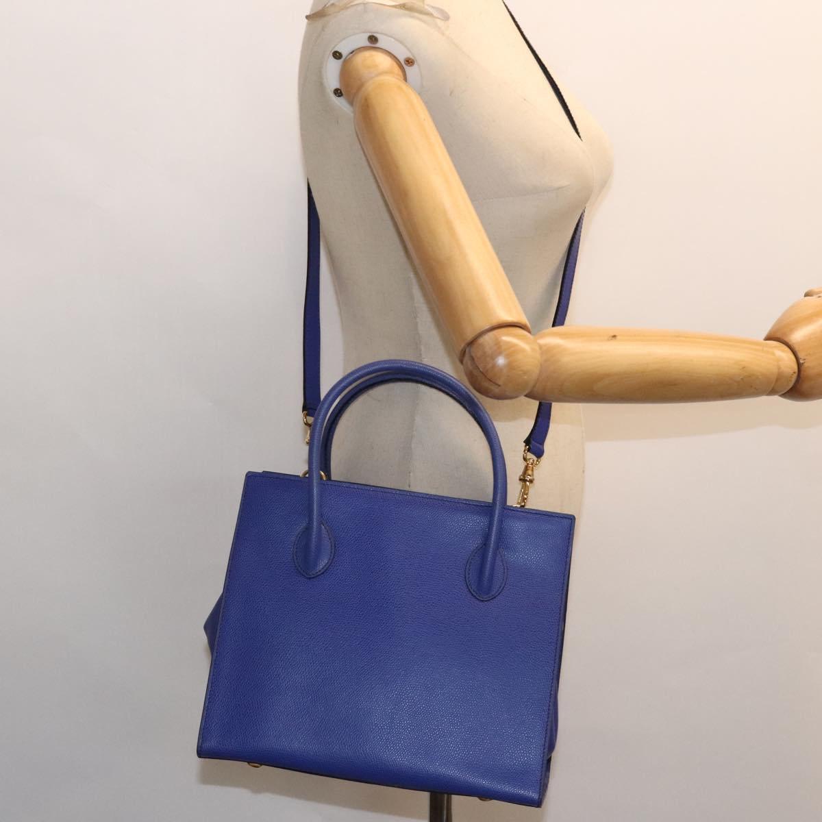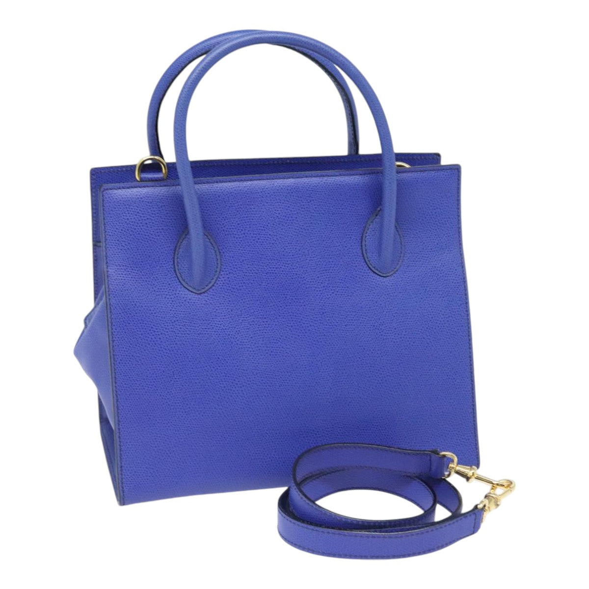 CELINE Shoulder Bag Leather 2way Blue Gold Auth 91831V