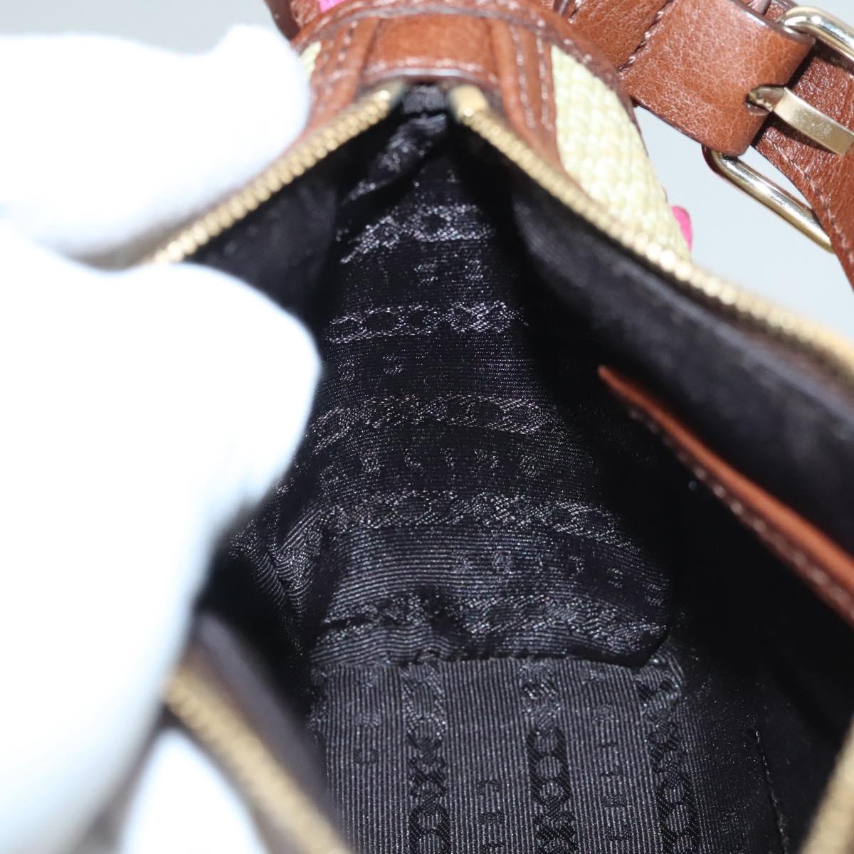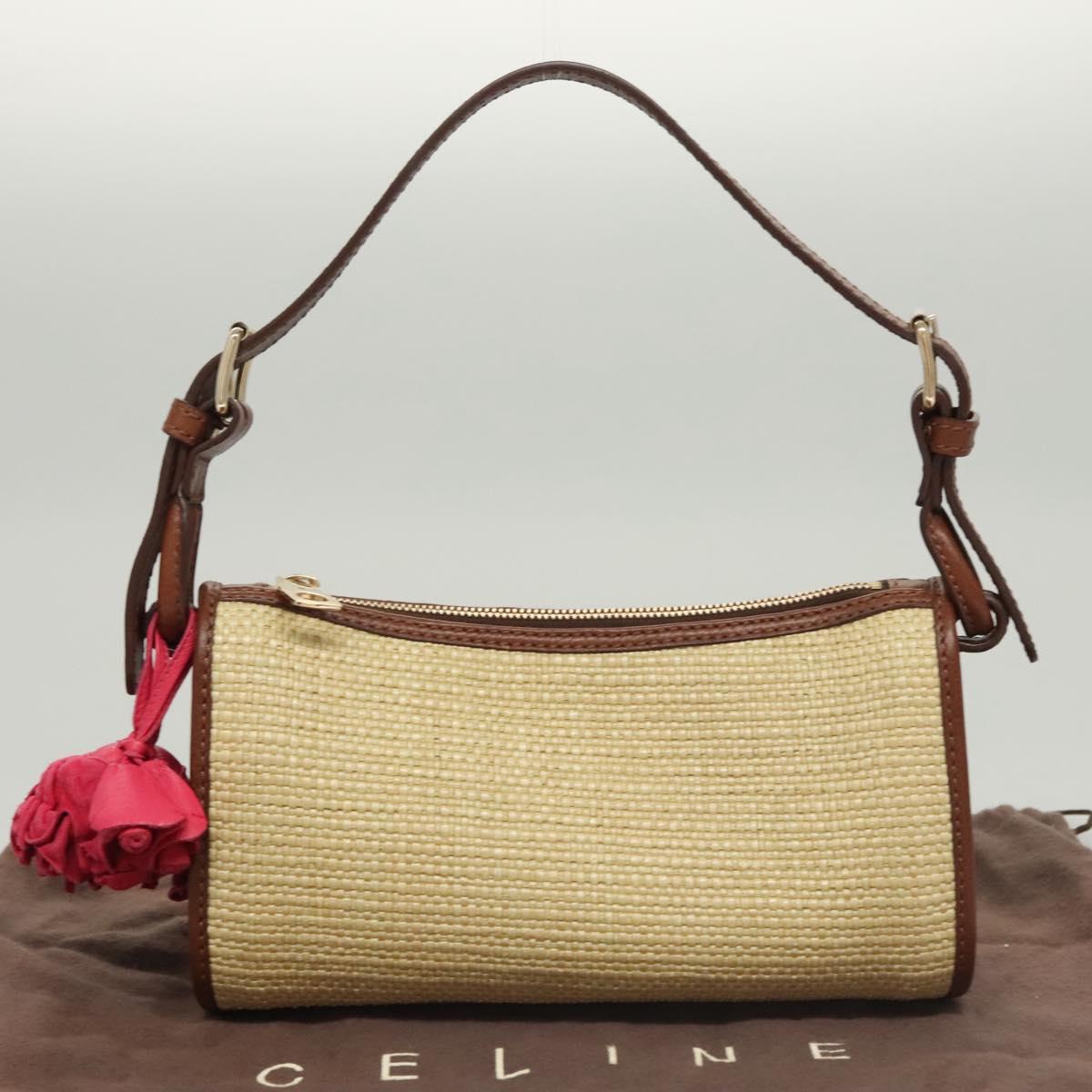 CELINE Shoulder Bag Straw Leather Beige Gold Auth 124629V