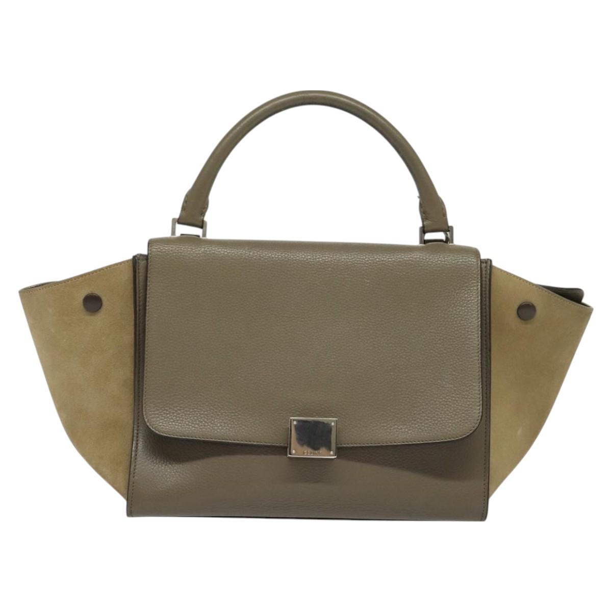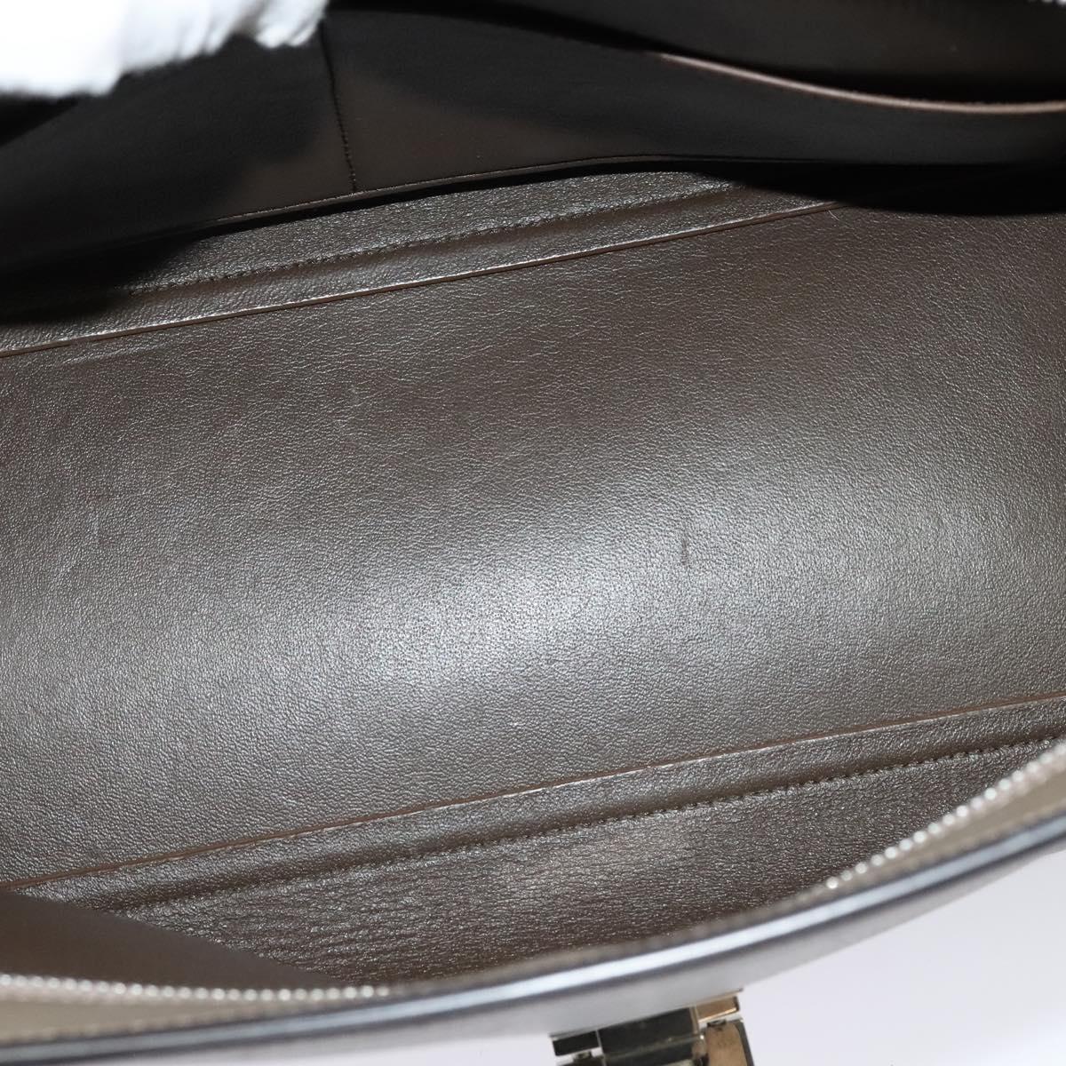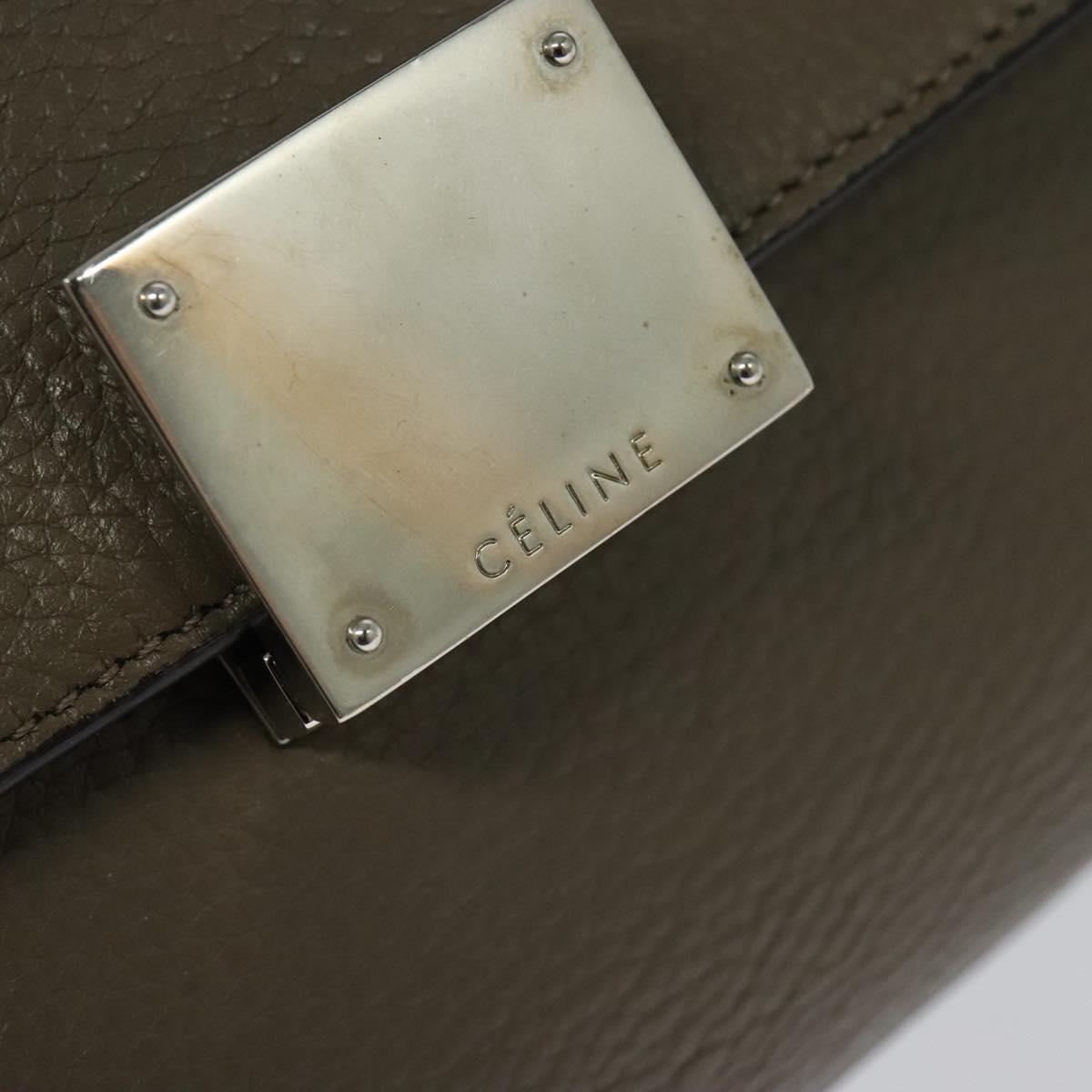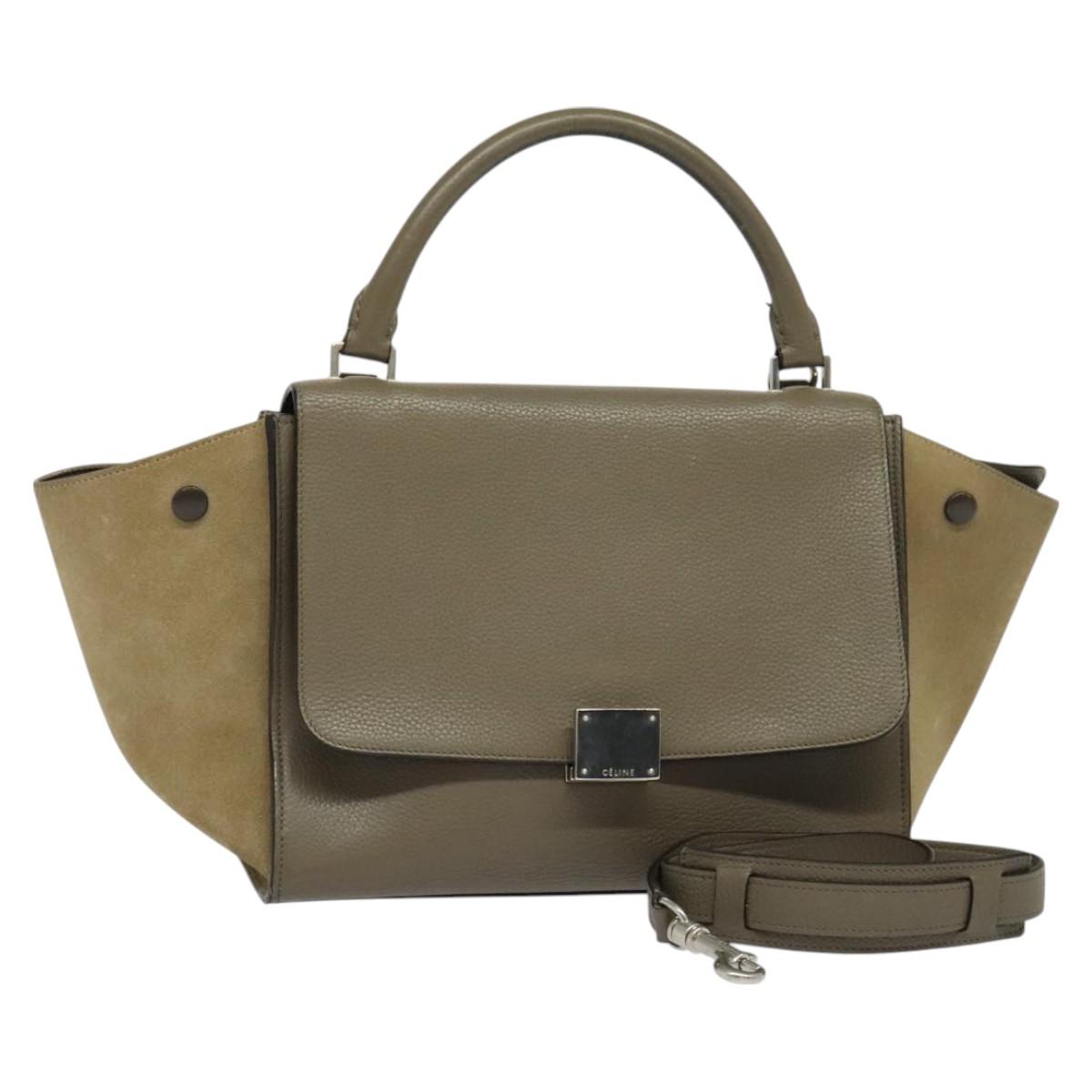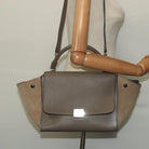 CELINE Trapeze Hand Bag Leather 2way Brown Silver Auth BA3558
