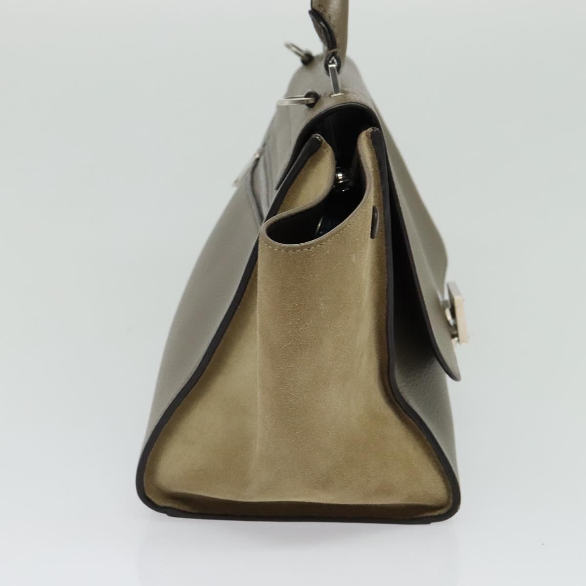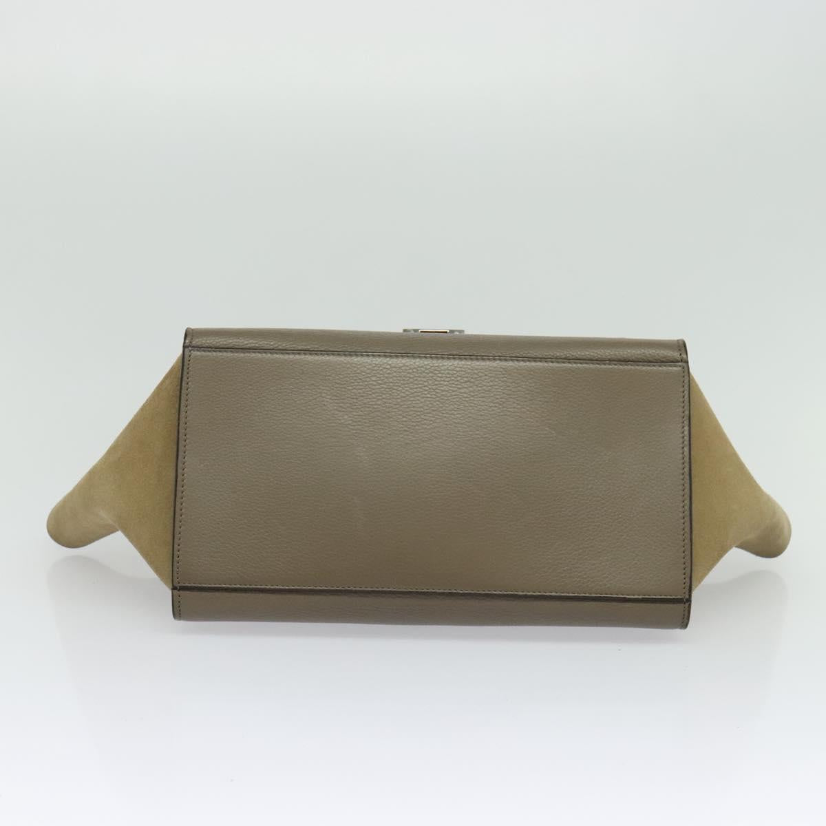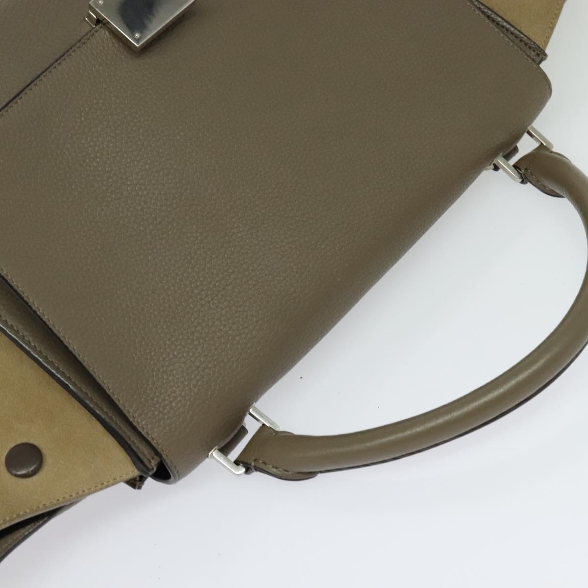 CELINE Trapeze Hand Bag Leather 2way Brown Silver Auth BA3558