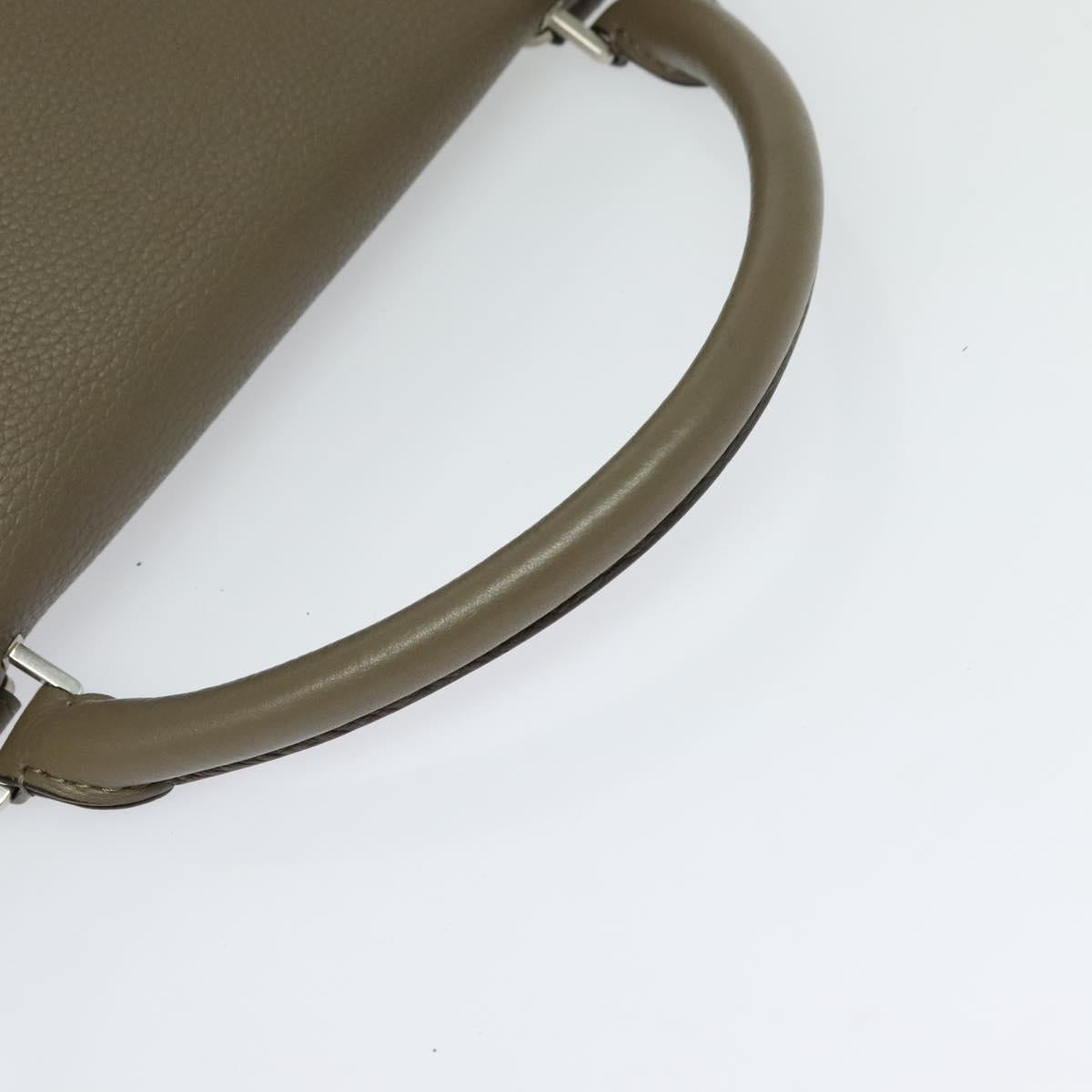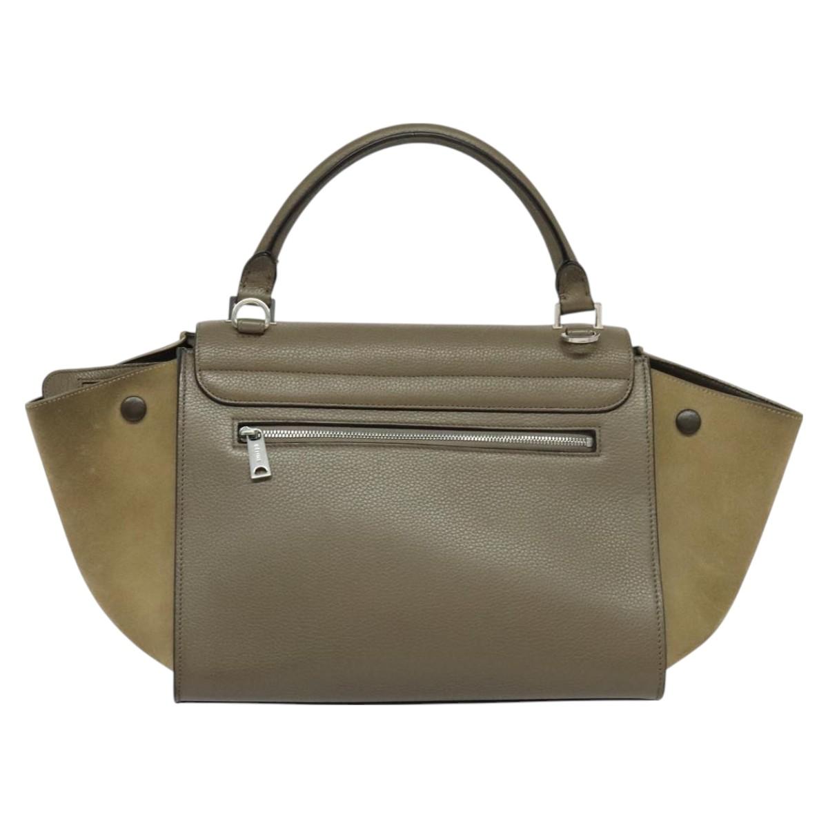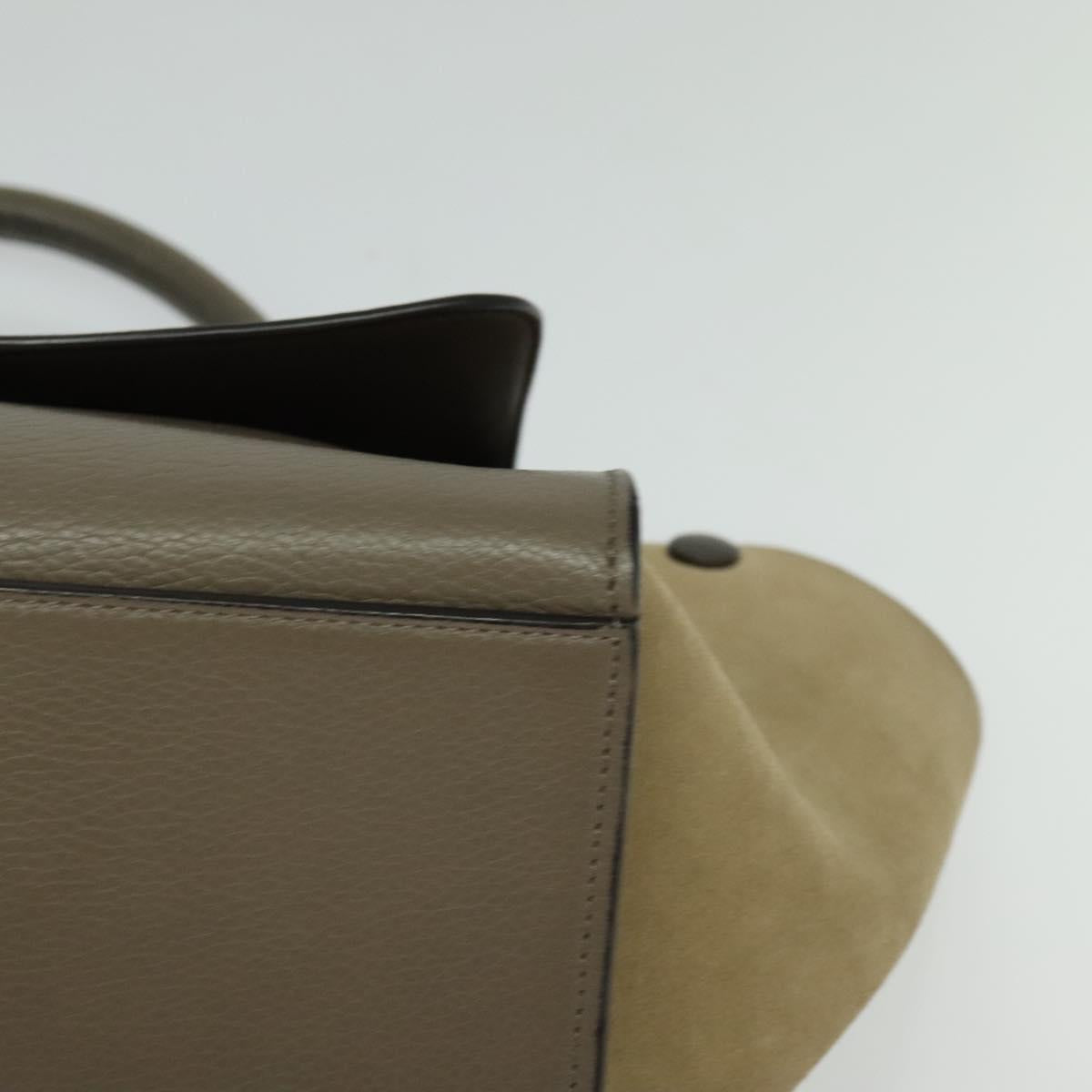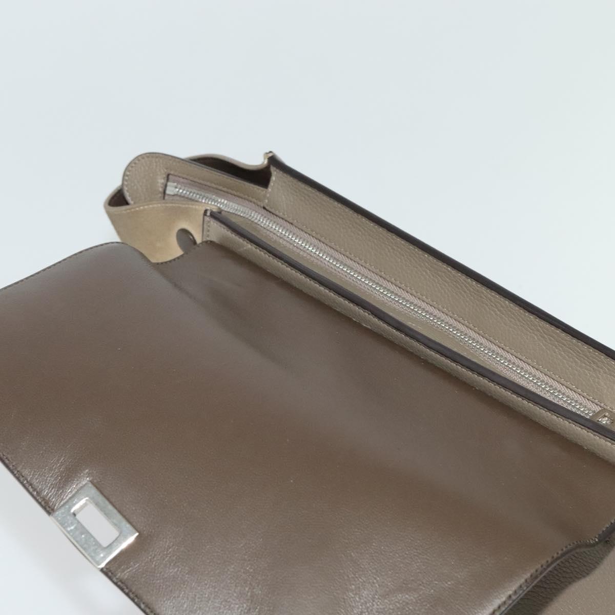 CELINE Trapeze Hand Bag Leather 2way Brown Silver Auth BA3558