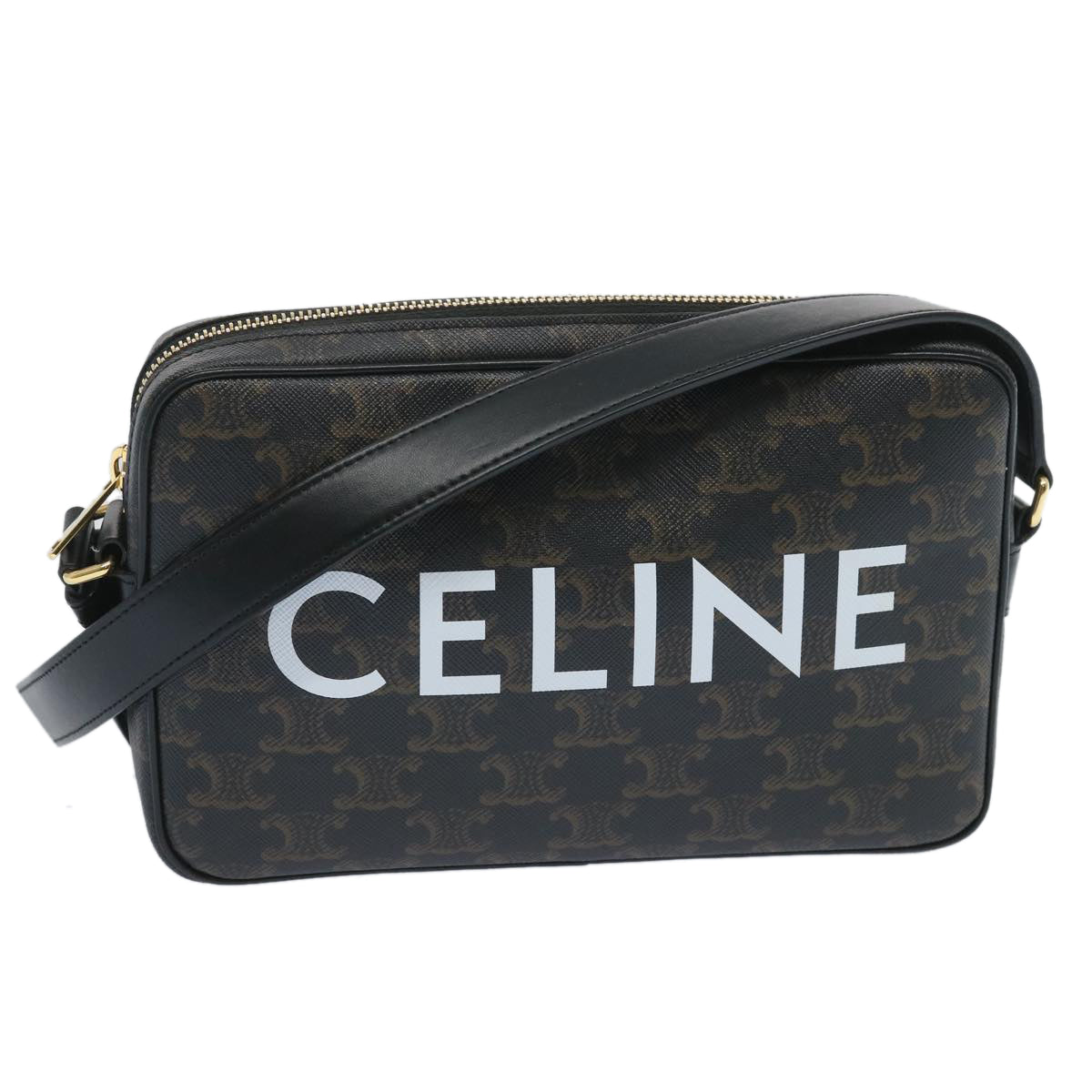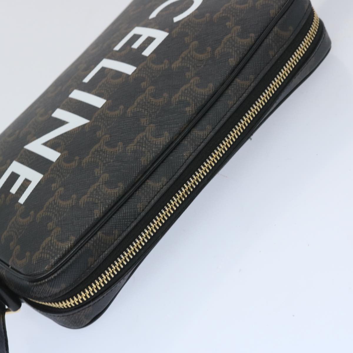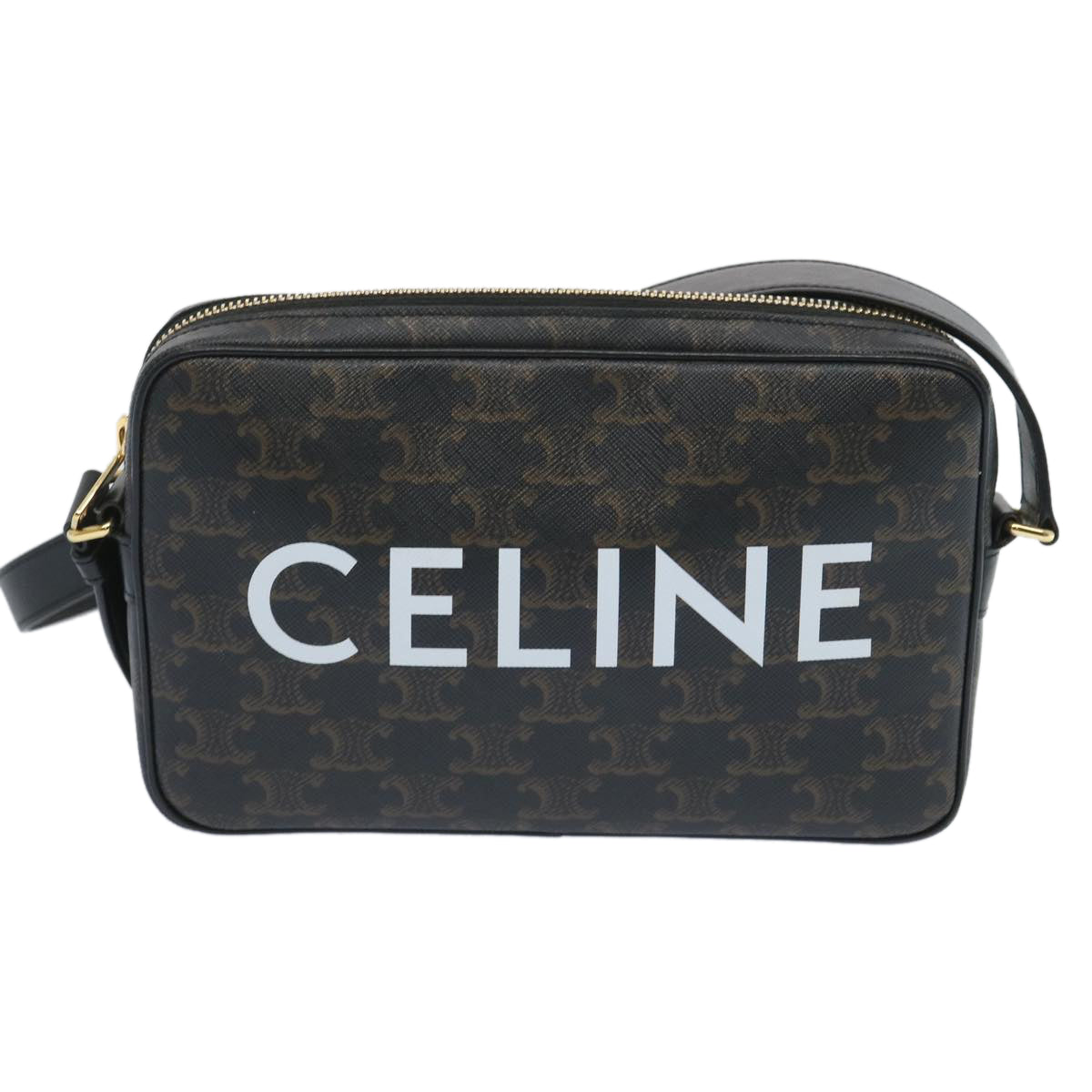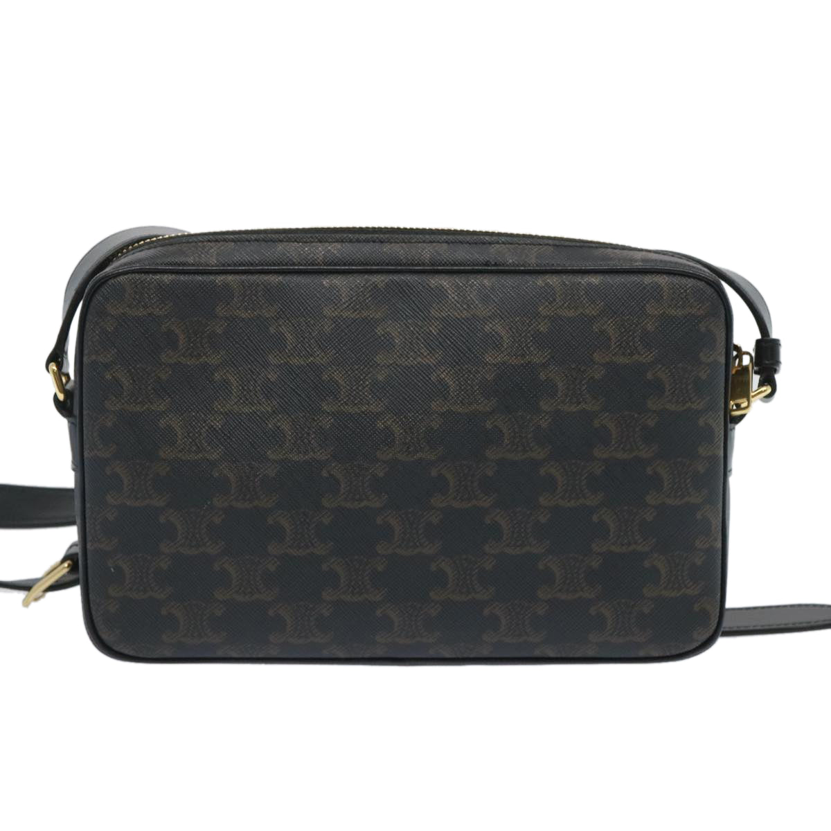 CELINE Triomphe Canvas Shoulder Bag PVC Leather Black 194502EJG Auth 66837AM