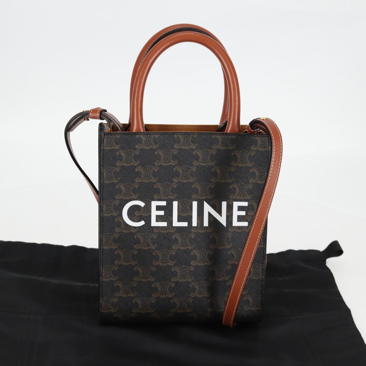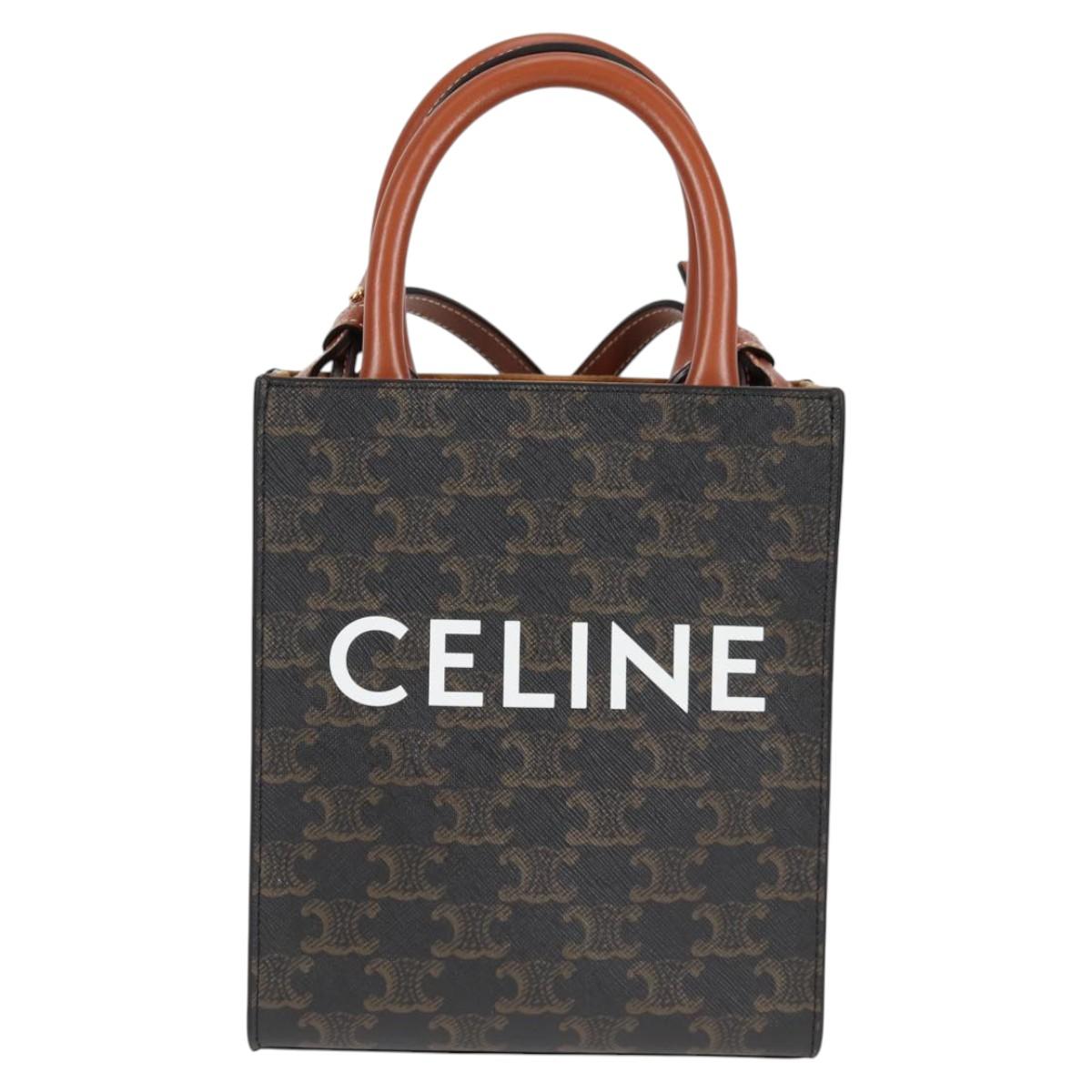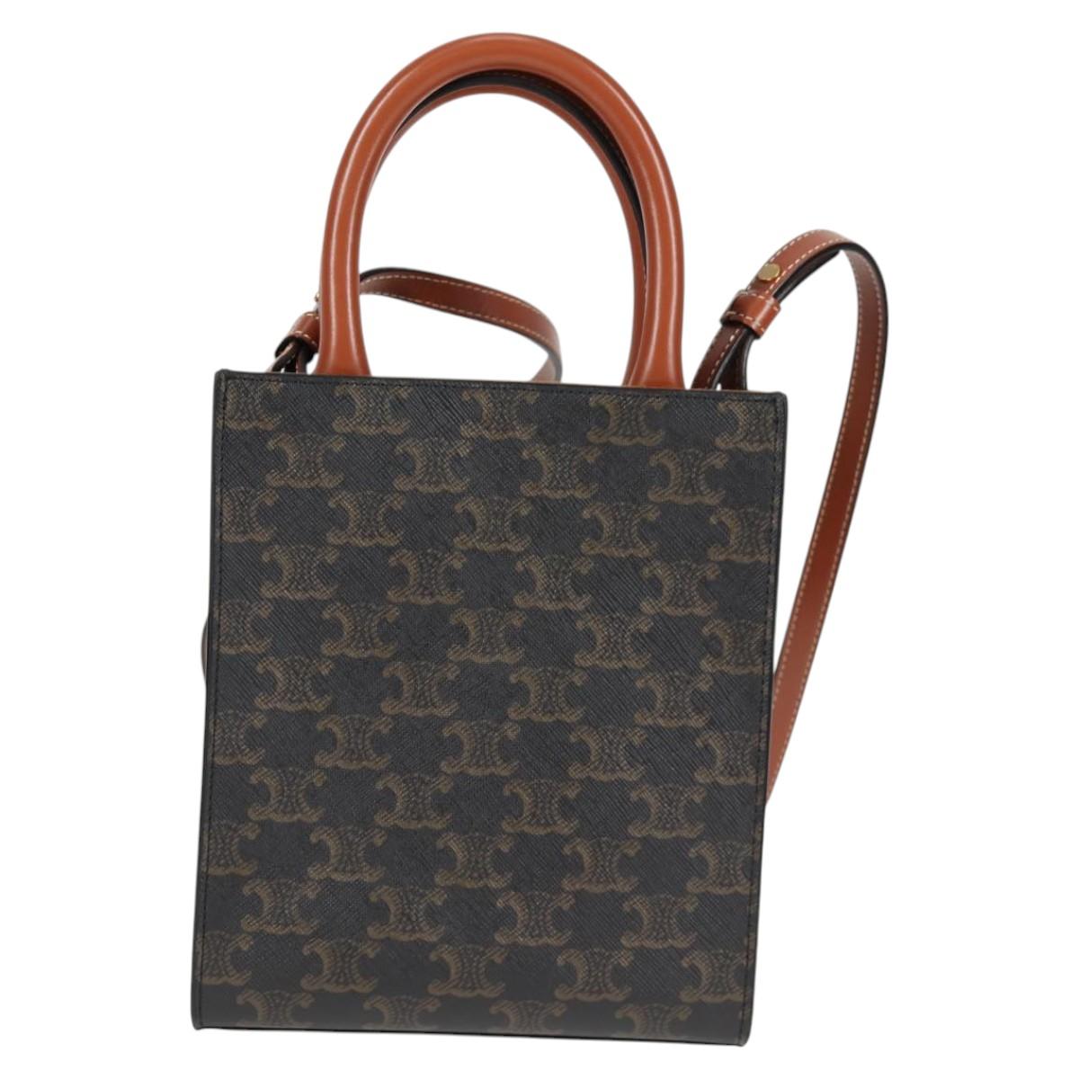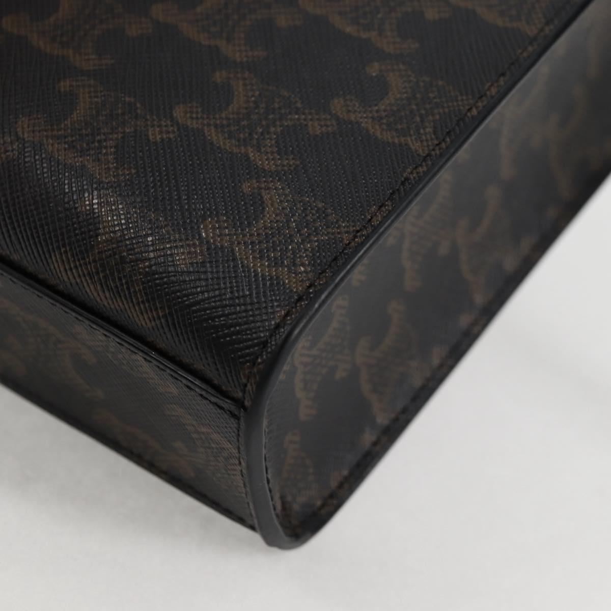 CELINE Triomphe Shoulder Bag PVC Leather Black Gold Auth nb462M