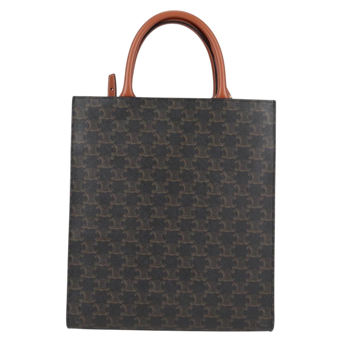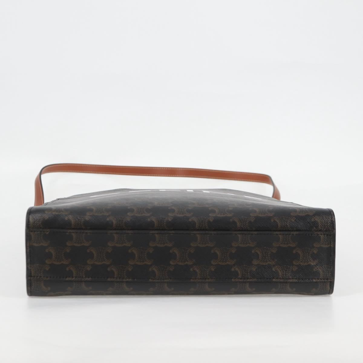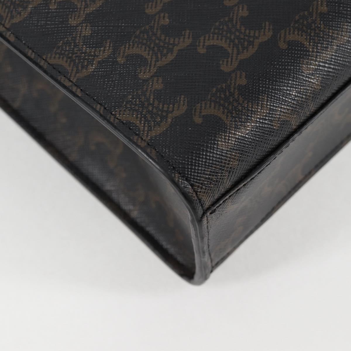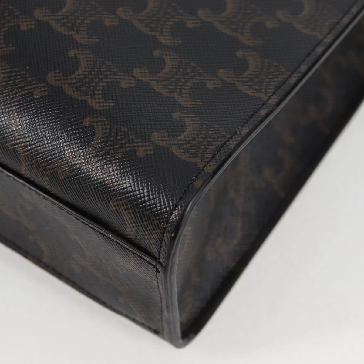 CELINE Triomphe Vertical Cabas Shoulder Bag PVC Leather Black Gold Auth nb491M