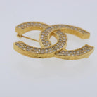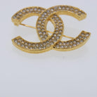 CHANEL COCO Mark Rhinestone Brooch metal Gold Tone CC Auth ar12671V